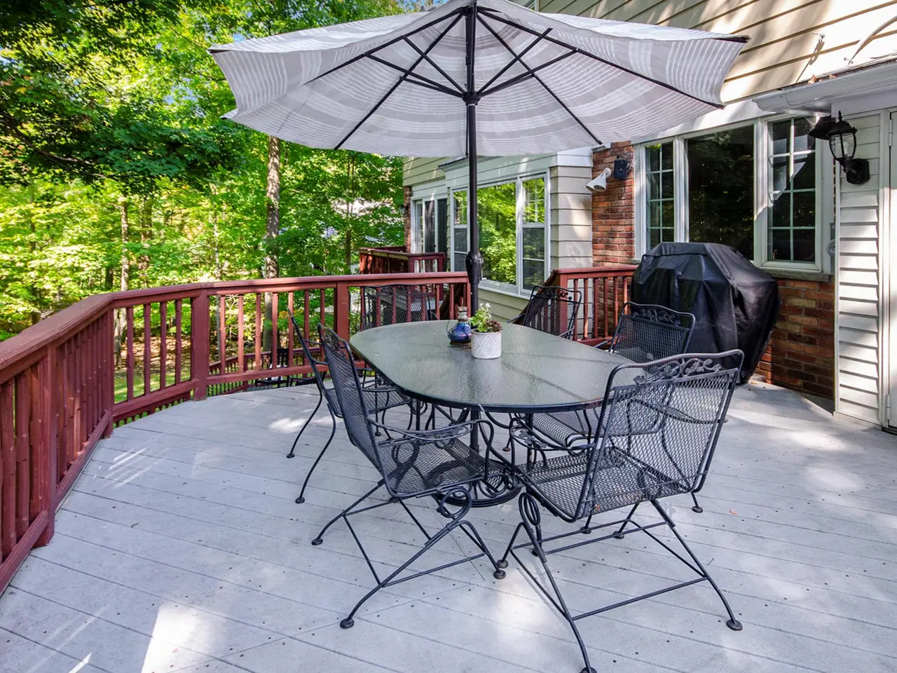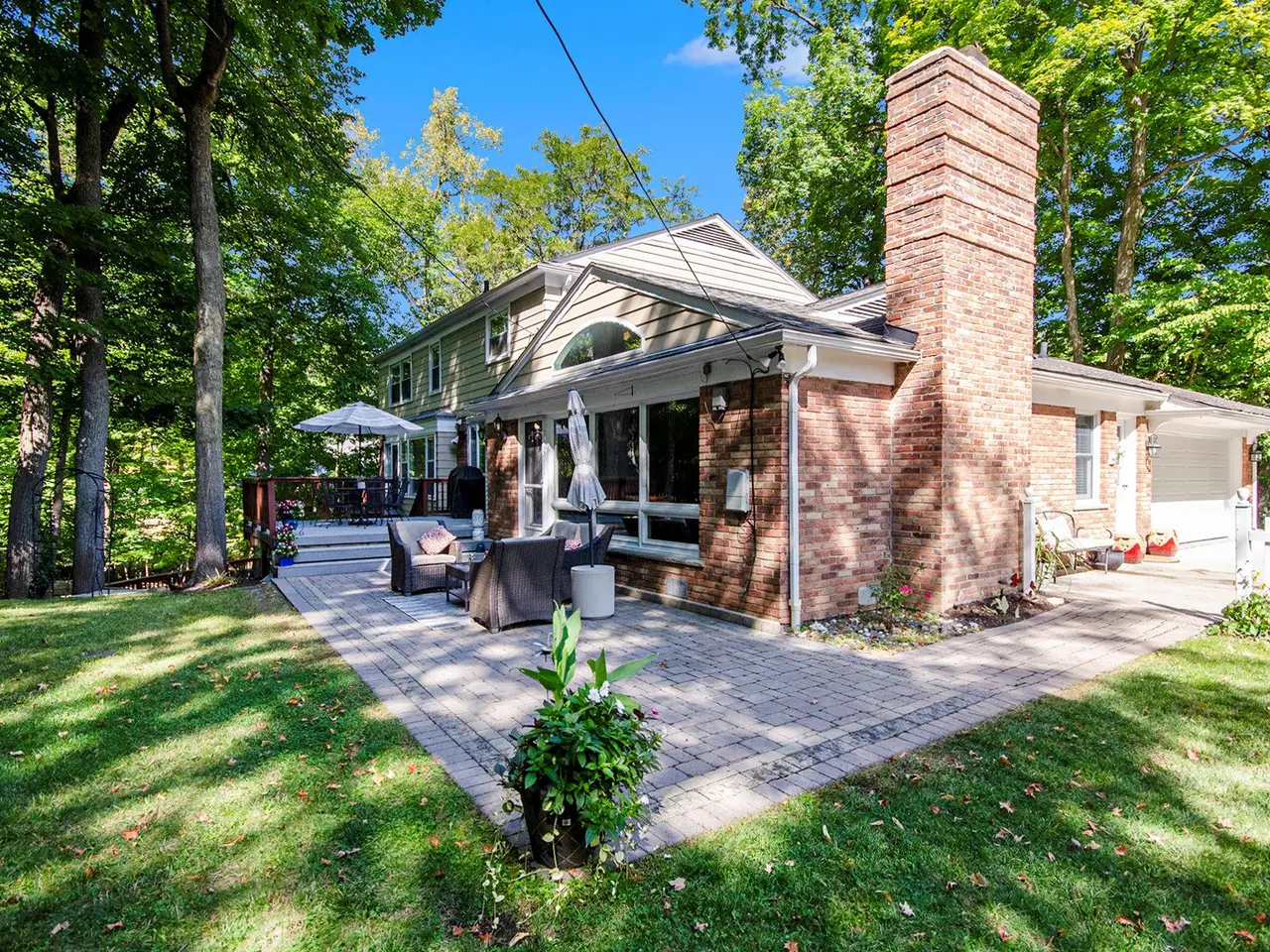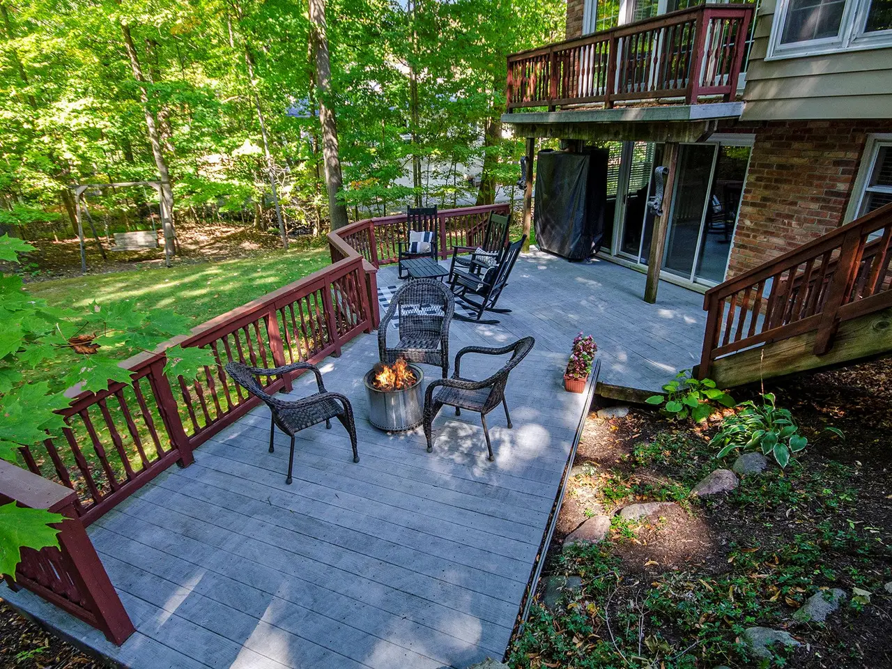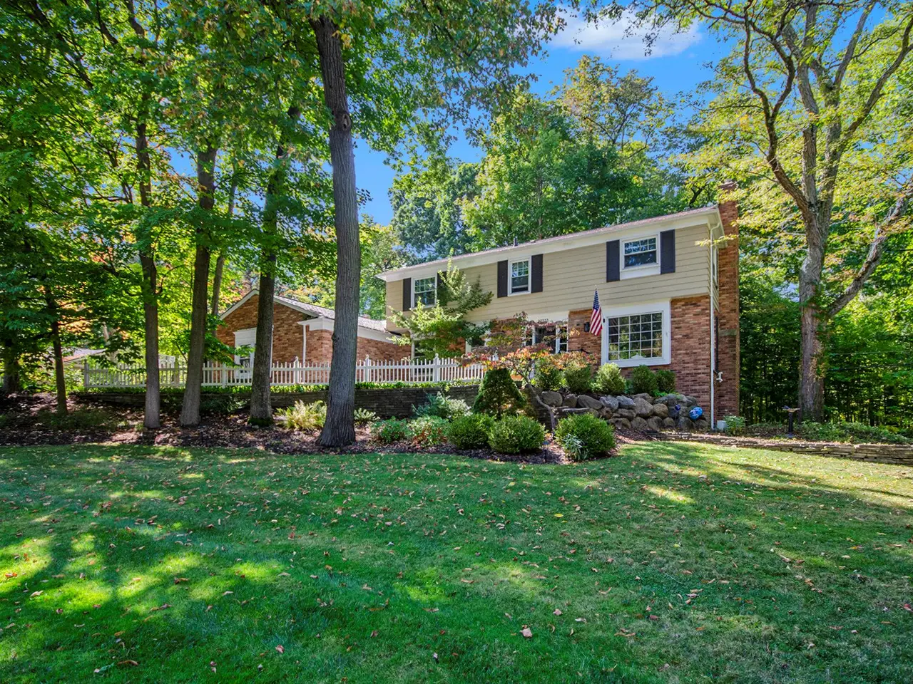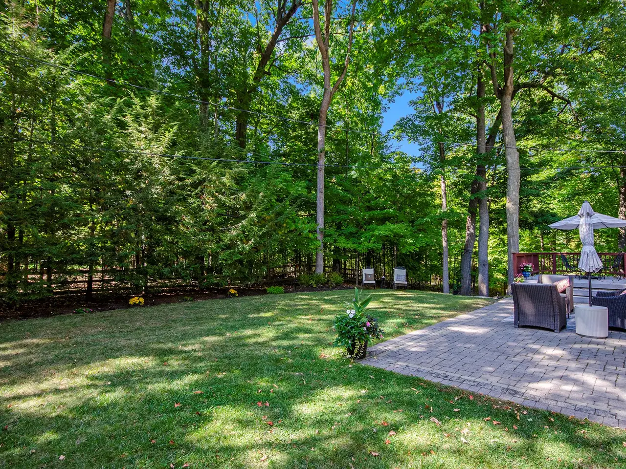 Welcome to One of Nottingham Forest’s Most Desirable Lots! Experience an “up north” feel right at home, surrounded by stunning wooded views and large open spaces. This exceptional property combines natural beauty w/ spacious, comfortable living. The inviting family room features vaulted ceilings w/ beautiful wood beams, large windows that frame the serene scenery, recessed lighting, & a natural fireplace. The space flows seamlessly into a large kitchen complete w/gorgeous wood cabinetry, an island w/ seating, & double doors that open to a wonderful backyard. Enjoy multiple outdoor areas, including a large patio and decks on two levels, w/ walkouts from the kitchen, family room, & lower level. The first floor offers generous living spaces filled w/ natural light, including a large living room w/ its own private deck/balcony. Upstairs, hardwood floors extend throughout the entire level, which includes 4 spacious bedrooms, two featuring built-in bookcases & shelving. A first-floor office provides a flexible space perfect for working from home, homework, reading, or TV relaxation, & could easily serve as a fifth bedroom if desired. The home features 2 beautifully updated full baths & 3 updated half baths, providing both comfort & convenience for family and guests. Additional highlights include a formal dining room & a large first-floor laundry. The lower level is a showstopper—featuring another fireplace, a craft area, a workout room, a half bath, & plenty of storage. Step outside to yet another deck and a truly exceptional backyard, perfect for entertaining, playing, and enjoying the outdoors. A gentle sledding hill along w/ a scenic ravine which flow along the side yard, while the property backs up to a wooded area filled w/ mature, beautiful trees that provide privacy and year-round natural beauty. With its warm character, and one-of-a-kind setting, this home offers the perfect balance of comfort, nature, & space to make memories for years to come.
