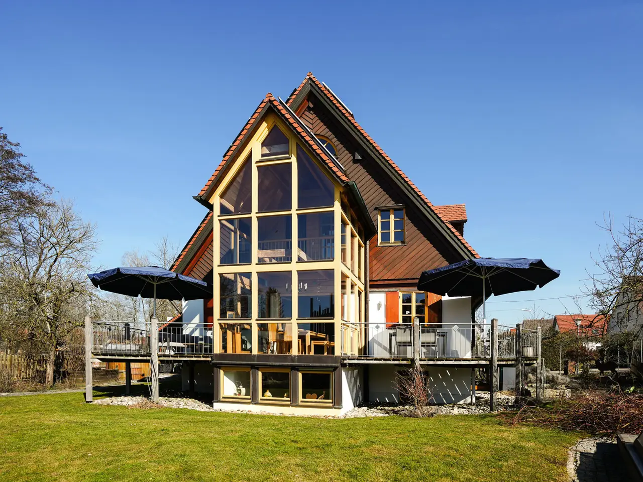 This exceptional property combines modern living comfort, sustainable technology and exclusive living at the highest level. Situated on a spacious plot, this property offers a perfect balance of elegance, functionality and an incomparable living experience - ideal for discerning buyers who value quality and individuality. In a sought-after residential area of Biberbach, the house impresses with its spacious, well thought-out room layout. The spacious living area creates an open and inviting ambience. The area with a full basement considerably expands the available space and, in addition to versatile areas, also includes a separate guest room with its own bathroom - an ideal solution for visitors or as a private retreat. The light-flooded living area forms the heart of the house and impresses with a characterful wood-burning stove that creates a cozy atmosphere. High-quality floorboards and wooden floors underline the stylish charm and ensure a pleasant living experience. Directly adjacent, the impressive conservatory with gallery and generous glazing opens up a unique view of the natural surroundings and enables a living experience close to nature at any time of year. This property also sets standards in terms of sustainability: a state-of-the-art heat pump in combination with a photovoltaic and solar system ensures a future-oriented, energy-efficient heating solution and reduces operating costs to a minimum. The exclusive outdoor area transforms the property into a private oasis of well-being. A refreshing pool, a Finnish sauna, a stylish party hut and a fully equipped outdoor kitchen offer perfect conditions for relaxing and socializing in your own home. This property combines upscale living comfort with state-of-the-art technology and unique amenities - a rare opportunity for those looking for something special.