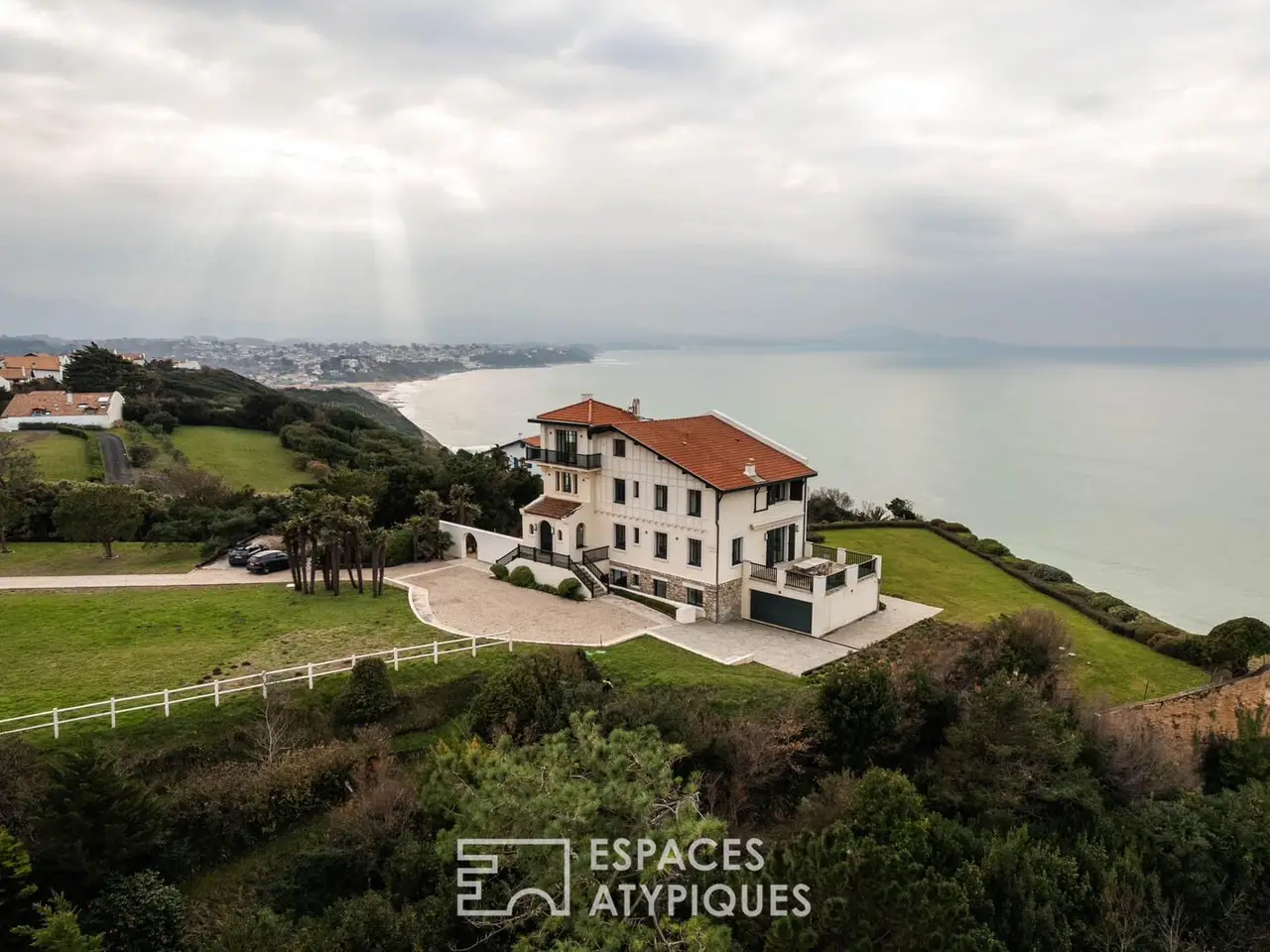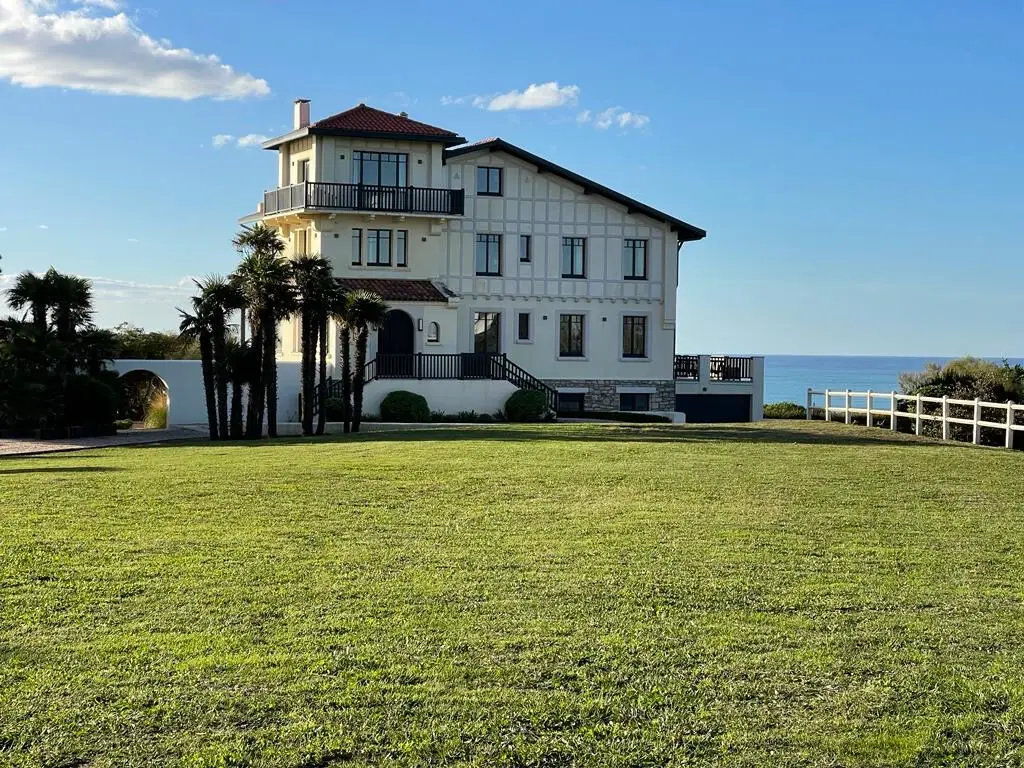 This iconic property, Itxas Gaïna ('Above the Ocean'), built in the early 1920s, overlooks the Erretegia beach, as its name suggests. The main house, with its neo-Basque style and approximately 380 m2 of living space, has been fully renovated by a renowned architect from Toulouse and decorated by Galerie Saint Jacques in a bold Art Deco style. Perched on four levels and enjoying a frontline position, the house offers breathtaking 180-degree views of the coastline, adding a poetic dimension to every room. On the ground floor, a vast living area opens onto a double reception space and an open-plan kitchen, enhanced by sumptuous materials and top-of-the-line equipment. Large openings give direct access to the terraces, offering an ideal setting to contemplate the scenery. The four suites, each with its own dressing room and private bathroom or shower room, are spread across the different floors. The garden level includes a double garage and additional annexes such as a cold room, a spacious laundry room, and a technical room. The attic space offers further potential for conversion. The property also includes a concrete-clad guest house with two bedrooms, as well as a caretaker's house. The swimming pool, located on the lower terrace, completes the exceptional landscaped garden with its stunning views. This outstanding property, distinguished by its architecture, its renovation, and its location, stands out as one of the most remarkable residences on the Basque Coast. ENERGY CLASS: A / CLIMATE CLASS: A Estimated average annual energy expenses for standard use based on 2021 energy prices: between €2,170 and €3,000. Additional information * 10 rooms * 7 bedrooms * 6 bathrooms * 2 floors in the building * Outdoor space : 50000 SQM * Property tax : 4 315 € Energy Performance Certificate Primary energy consumption a : 64 kWh/m2.year High performance housing