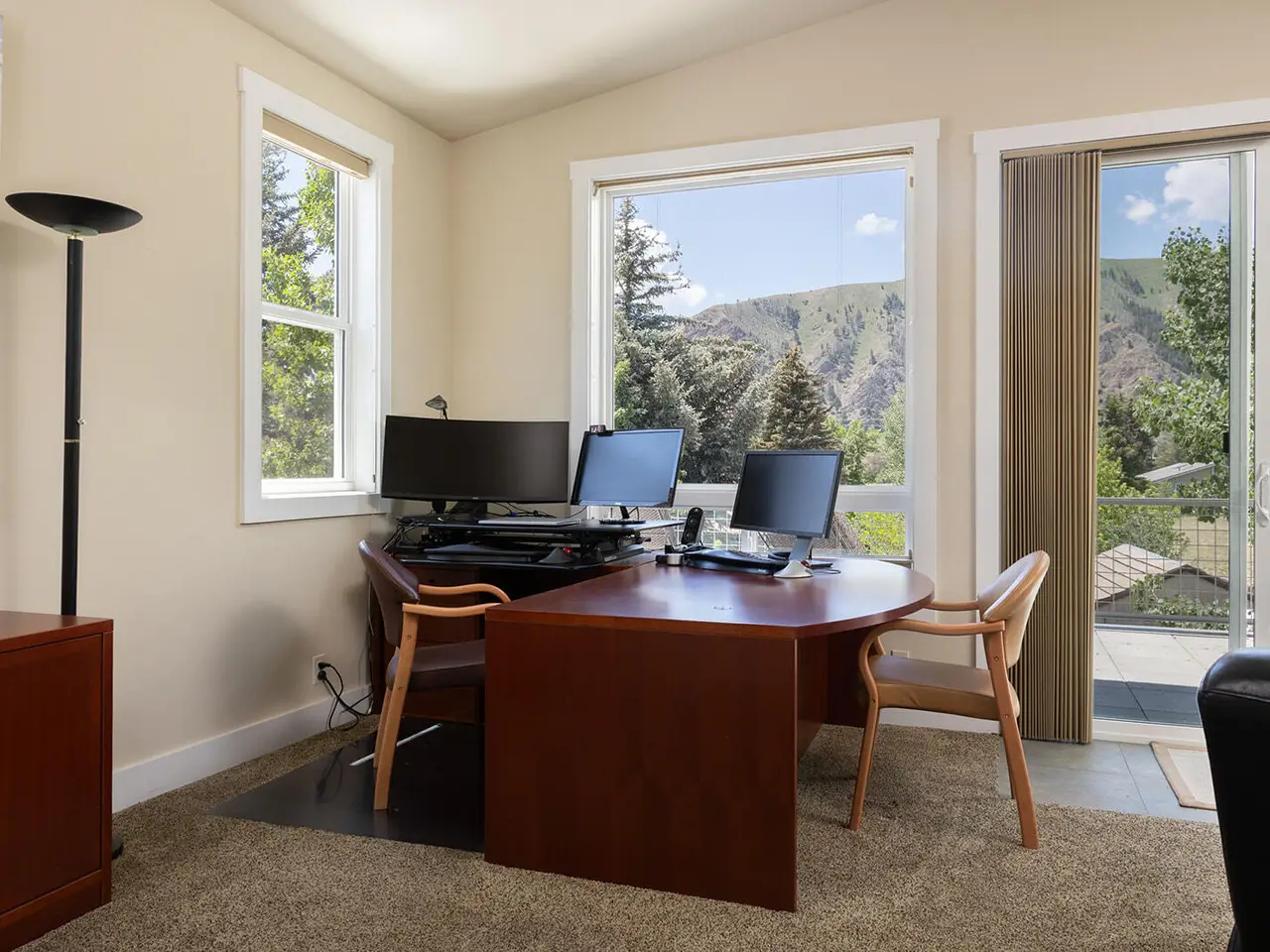 Discover the perfect blend of functionality & outdoor charm in this gem, located on one of Hailey's quietest streets. The main residence offers 3 bedrooms, 3 bathrooms, and a large finished basement ideal for a media room or versatile flex space. A standout feature is the impressive 1,153 sq ft 4-car garage with a dedicated workshop, plus a 500 sq ft upstairs office with its own half bath.