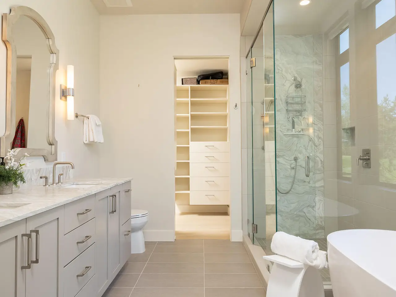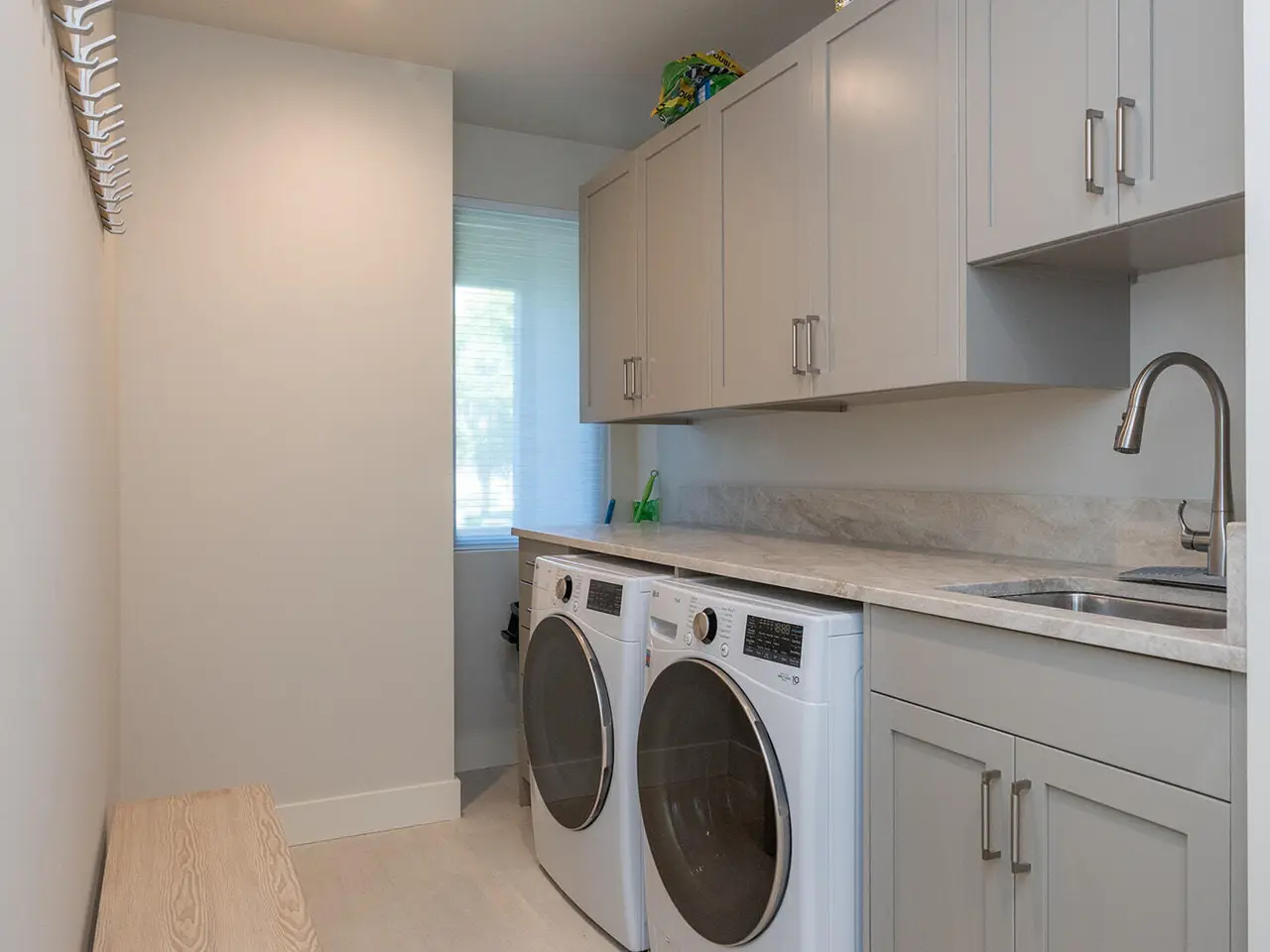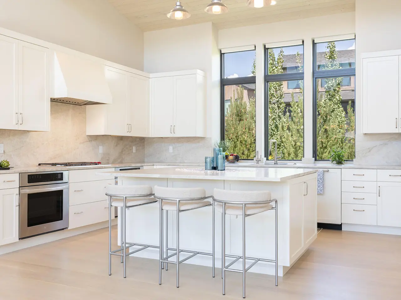 Stunning contemporary home. Sunlit single-level sanctuary with open floor plan, vaulted ceilings, and premium upgrades. White oak floors, Taj Mahal quartz counters, and Wolf cooktop create a chef's dream kitchen. Luxury Features: Wine cooler, custom closets, heated bathroom floors, heated two-car garage, plus heated driveway and walkways. Luxury contemporary design meets everyday comfort.