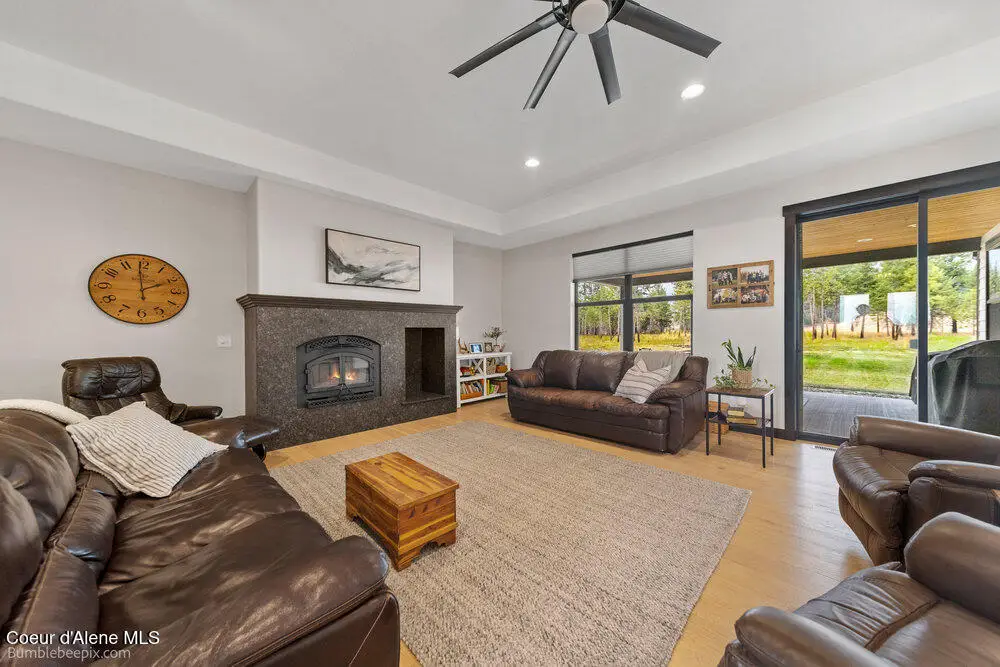Welcome to this exceptional 10 acre property featuring a meticulously maintained 4 bdrm, 2.5 bth main house and a separate 1 bdrm, 1 bth ADU. The main residence boasts a grand entry, open-concept great room with 9-foot ceilings, a high-efficiency wood-burning stove with granite facing, and a elegant tray ceiling. The gourmet kitchen is equipped with Huntwood cabinets, quartz countertops, two refrigerators, a built-in oven/microwave combo, and a 36-inch gas stovetop with a matching hood vent. All 4 bedrooms include walk-in closets, and the primary suite offers a custom oversized tile walk-in shower, a separate soaker, tub, dual sinks, and ample storage. Additional features include an oversized laundry room, covered entry, covered patio with a cedar tongue-and groove ceiling, and an oversized attached 3 car garage. Beyond the main house, discover a spacious 40'x60' shop that is fully insulated and heated. Property backs up to specialty land and features breathtaking 360-degree views.