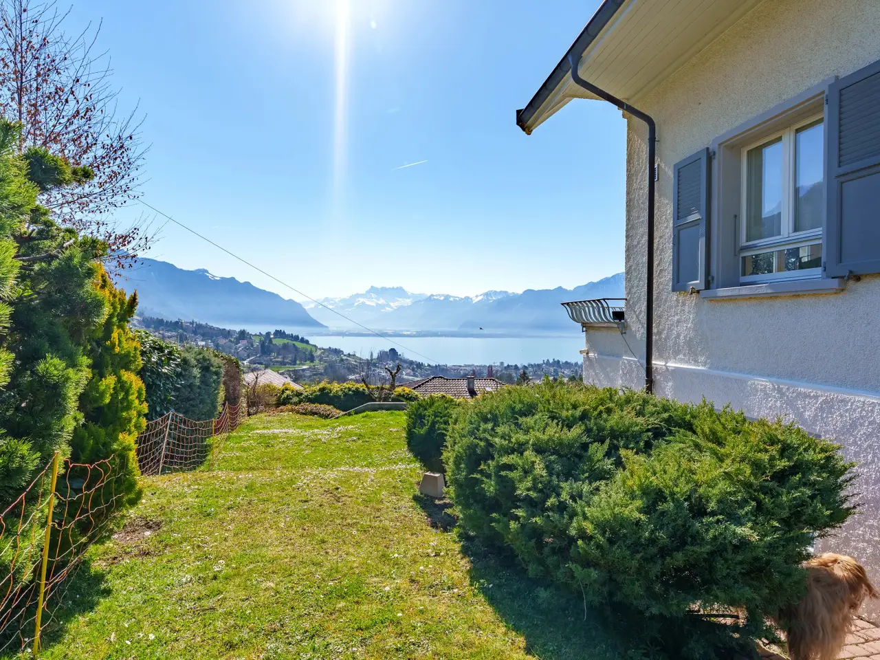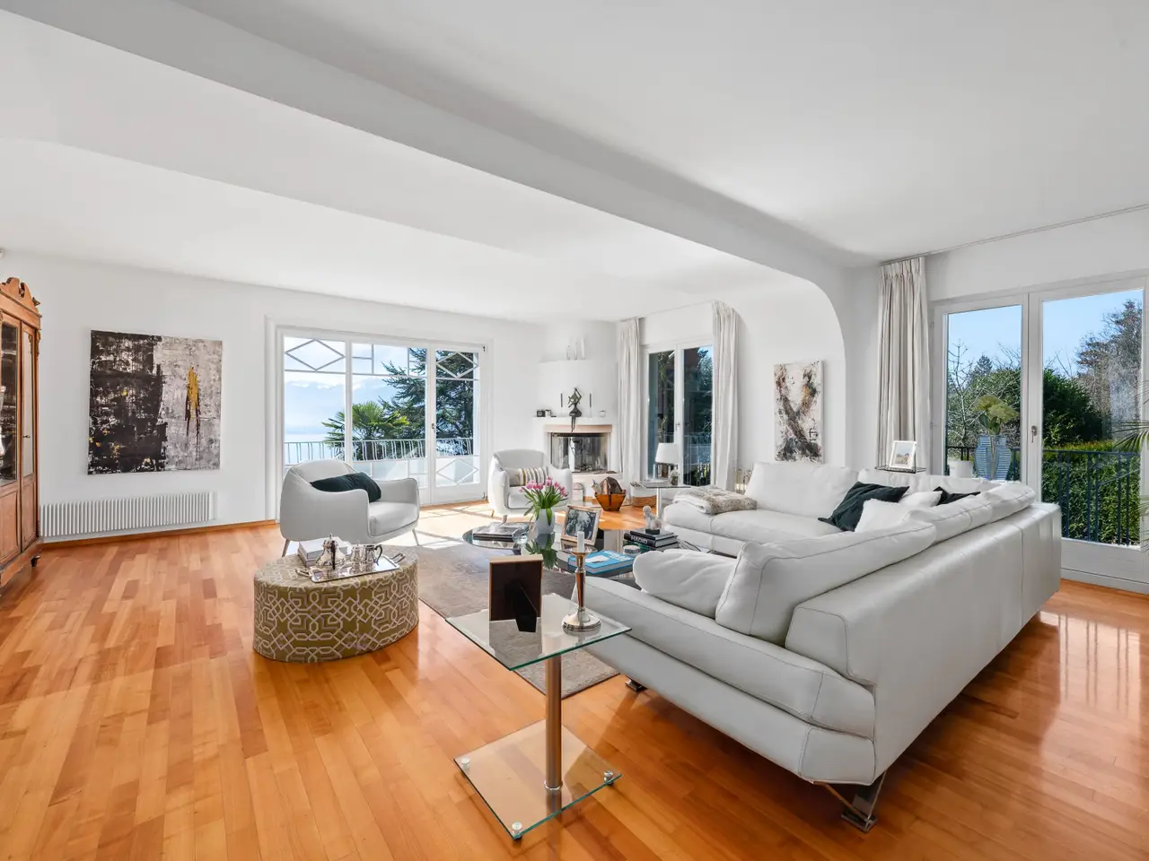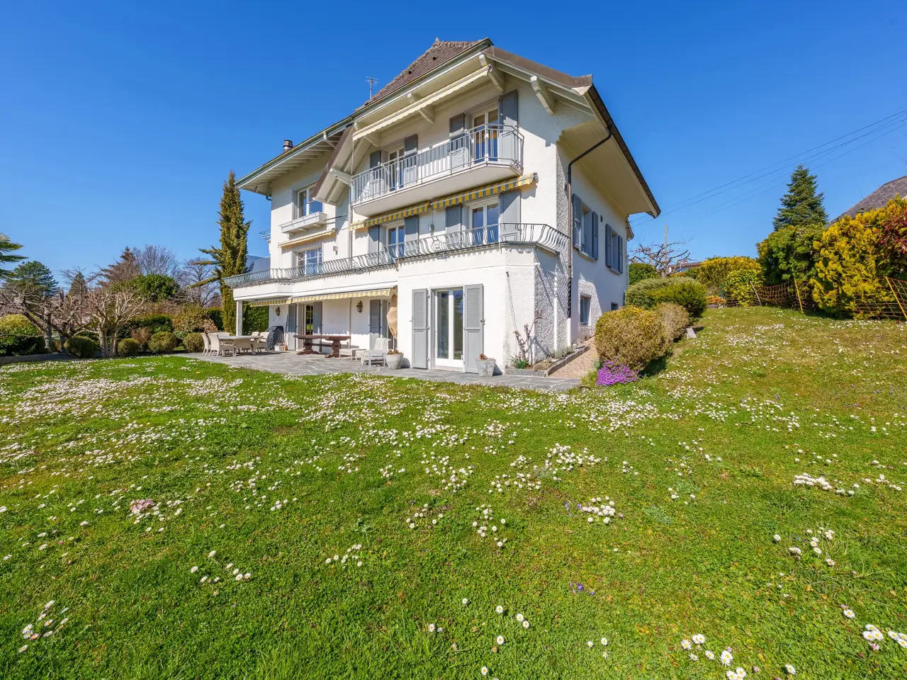Located in a peaceful and green residential area, just a few steps from the heart of the village, this stunning 1930s property will captivate you with its exceptional panoramic view of the lake and mountains. Set on a beautifully landscaped plot of 1,578 m², fully enclosed, it offers privacy and tranquility. Regularly maintained and renovated over the years, the house features spacious rooms, fine finishes, and high-end materials. On the upper floor, you'll find a bright living room with a fireplace, a dining room, and a fully equipped kitchen. All these spaces open onto a large balcony, perfect for enjoying the breathtaking view of the Lake Geneva Basin. A small lounge and a guest WC complete this level. On the second floor, the spacious master suite includes two walk-in closets, a bathroom with a bathtub and shower, and a private balcony. Two additional bedrooms, sharing a balcony with an exceptional view of the lake, are also located here, along with a shared bathroom. The lower level features a wine cellar, a carnotzet with kitchen, and direct access to the terrace and garden, ideal for summer evenings. Two additional bedrooms, a shower room, a laundry room, and a BA shelter complete this floor, offering a perfect space for entertaining guests. The main building, originally built in the 1930s, was extended in 1980, forming this magnificent property.