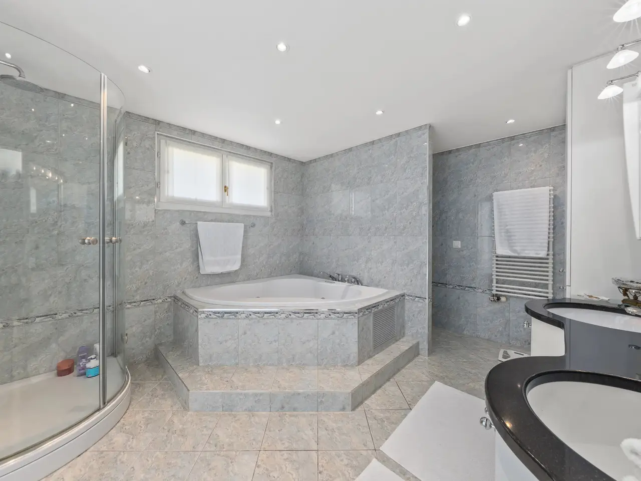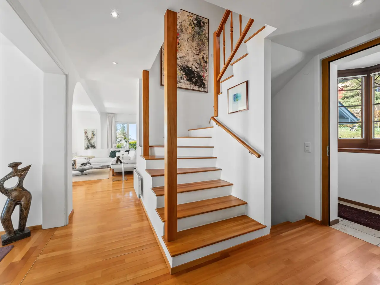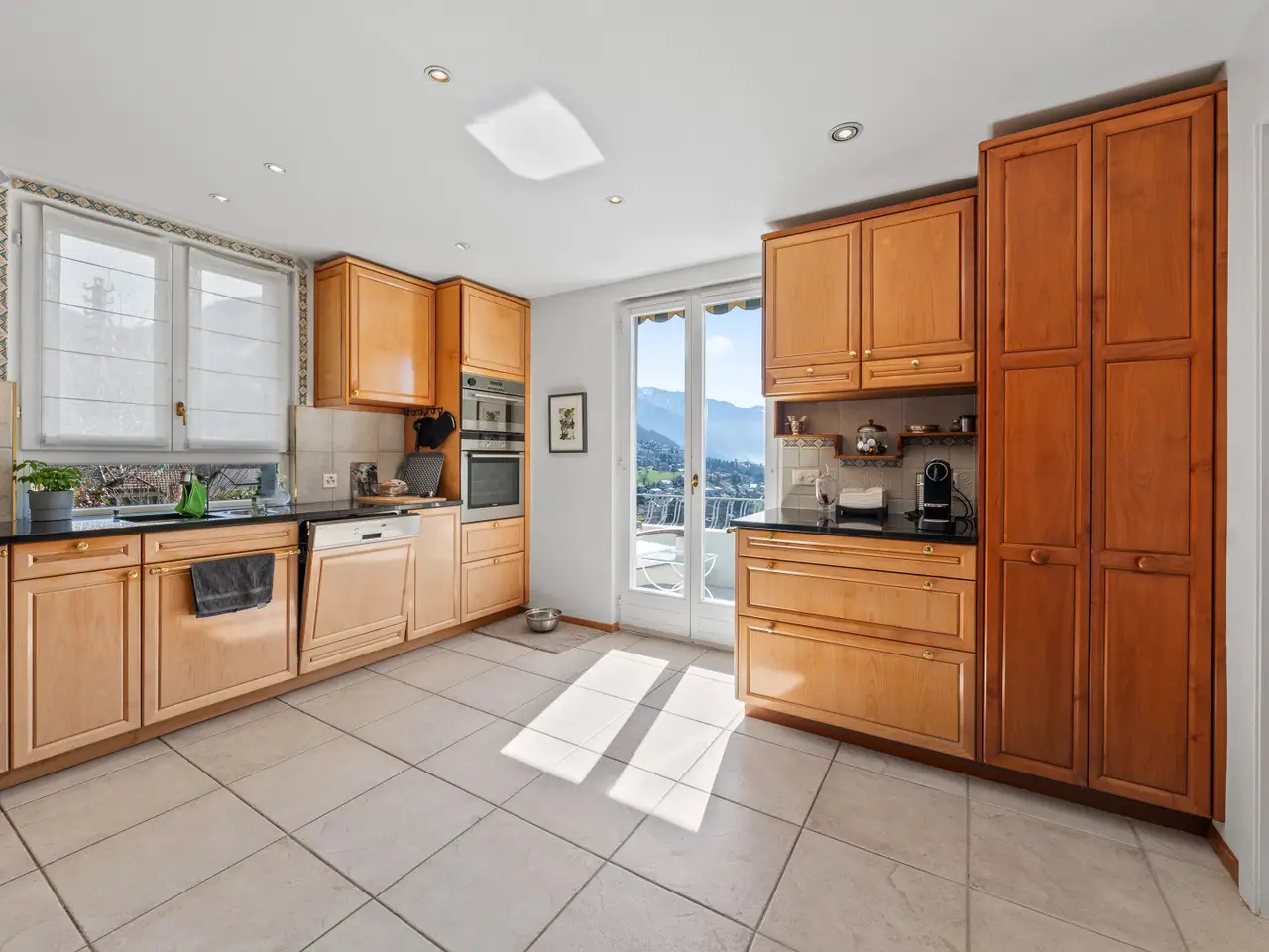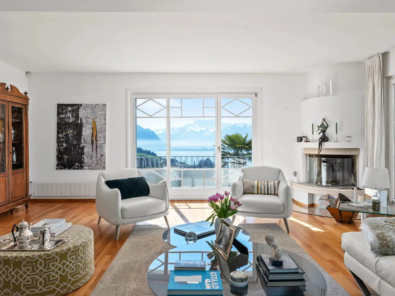 Located in a peaceful and green residential area, just a few steps from the heart of the village, this stunning 1930s property will captivate you with its exceptional panoramic view of the lake and mountains. Set on a beautifully landscaped plot of 1,578 m², fully enclosed, it offers privacy and tranquility. Regularly maintained and renovated over the years, the house features spacious rooms, fine finishes, and high-end materials. On the upper floor, you'll find a bright living room with a fireplace, a dining room, and a fully equipped kitchen. All these spaces open onto a large balcony, perfect for enjoying the breathtaking view of the Lake Geneva Basin. A small lounge and a guest WC complete this level. On the second floor, the spacious master suite includes two walk-in closets, a bathroom with a bathtub and shower, and a private balcony. Two additional bedrooms, sharing a balcony with an exceptional view of the lake, are also located here, along with a shared bathroom. The lower level features a wine cellar, a carnotzet with kitchen, and direct access to the terrace and garden, ideal for summer evenings. Two additional bedrooms, a shower room, a laundry room, and a BA shelter complete this floor, offering a perfect space for entertaining guests. The main building, originally built in the 1930s, was extended in 1980, forming this magnificent property.