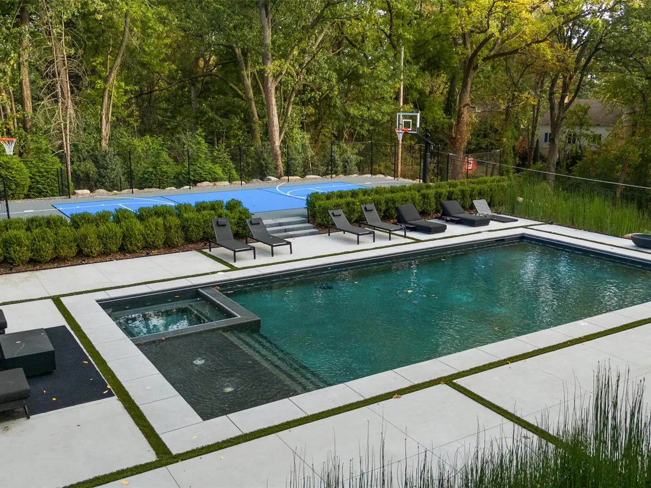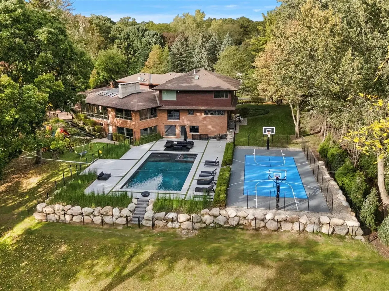 **Highest and Best Due Monday 10/20/25 @10:00PM** Redesigned in 2013 by architect Lou DesRosiers, this Bloomfield Hills residence sits on a premium 1.5-acre lot with an incredible new pool and full sports court, creating a true secluded retreat in the Birmingham school district. Located at the end of a quiet cul-de-sac, the home blends architectural distinction with modern livability across over 7,400 square feet of finished space. Inside, 5 bedrooms and 5.1 baths include a primary suite with dual bathrooms, a massive walk-in closet with a center island, and peaceful views of the wooded grounds. Expansive main living areas are framed by walls of glass, offering a seamless connection between interior and exterior spaces. The walkout lower level adds versatility with generously sized entertaining, living, and fitness areas, all opening directly to the resort-style backyard. Set among mature trees and manicured landscaping, the property also includes lake privileges on Walnut Lake, providing access to one of Oakland County’s premier all-sports lakes. Thoughtfully reimagined by Lou DesRosiers with enduring architectural integrity, this residence now awaits the next owner’s finishing touches, a rare opportunity to personalize a statement home in one of Bloomfield’s most desirable settings.
