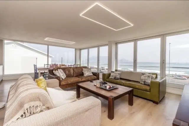 Ocean Opulence! This seaside home is a harmonious blend of serene coastal elements and sleek modern designs. The style epitomises the elegance of simplicity, offering a tranquil retreat that resonates with contemporary aesthetics. The seller has spared no expense and the property offers a grandeur lifestyle . The living area is fitted with floor-to-celing, double glazed FENSTER SHUCO windows, boasting panoramic views of the ocean and the unparalleled beauty of Table Mountain. A designer kitchen with sleek lines and a colour scheme that echoes opulence, is fitted with Siemens appliances and built in coffee machine. There is a separate laundry with plumbing for 3 appliances. This kitchen beckons a master chef. The spacious bedrooms oozes luxury and is fitted with mirror sliding doors. The bathrooms boasts Alls Geberit bathroom elements and includes heated towel rails and designer taps. An added bonus is the 2 lock up garages in the basement with lift access to the apartment floor. This home offers sensor lights, saving energy, a brand new DB board with built in Ticino components, a 5000W SINERGI inverter and 7 infrared heated panels recessed in the ceiling and powered automatically by thermostats. Call me today to secure a lifestyle of luxury and seaside serenity!