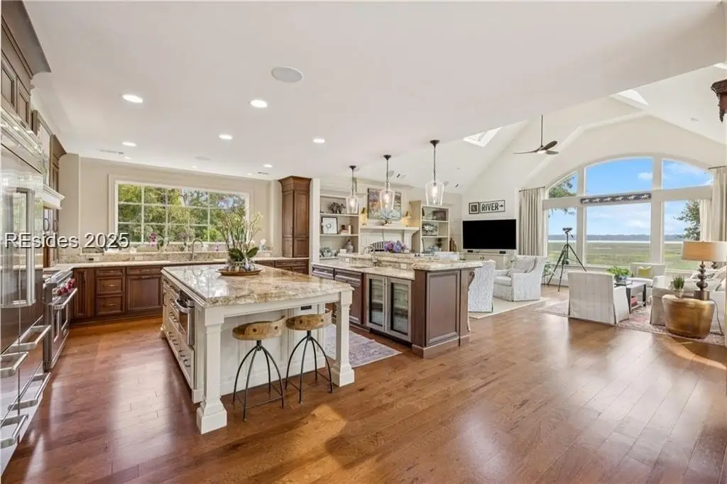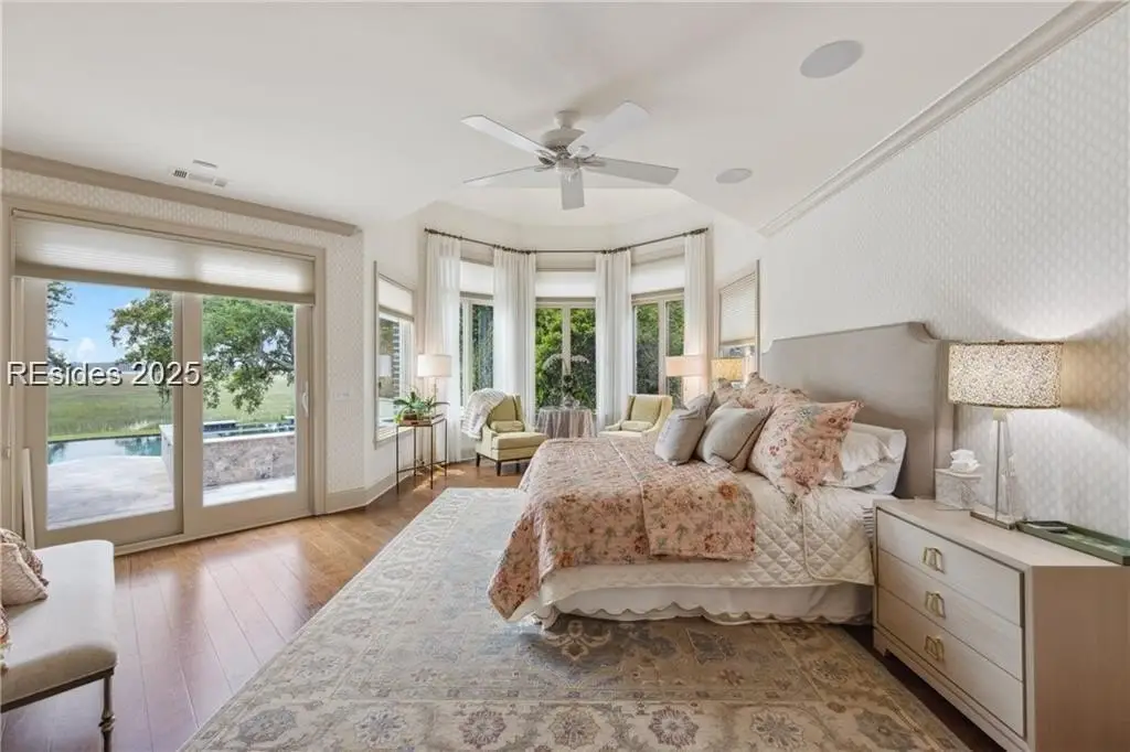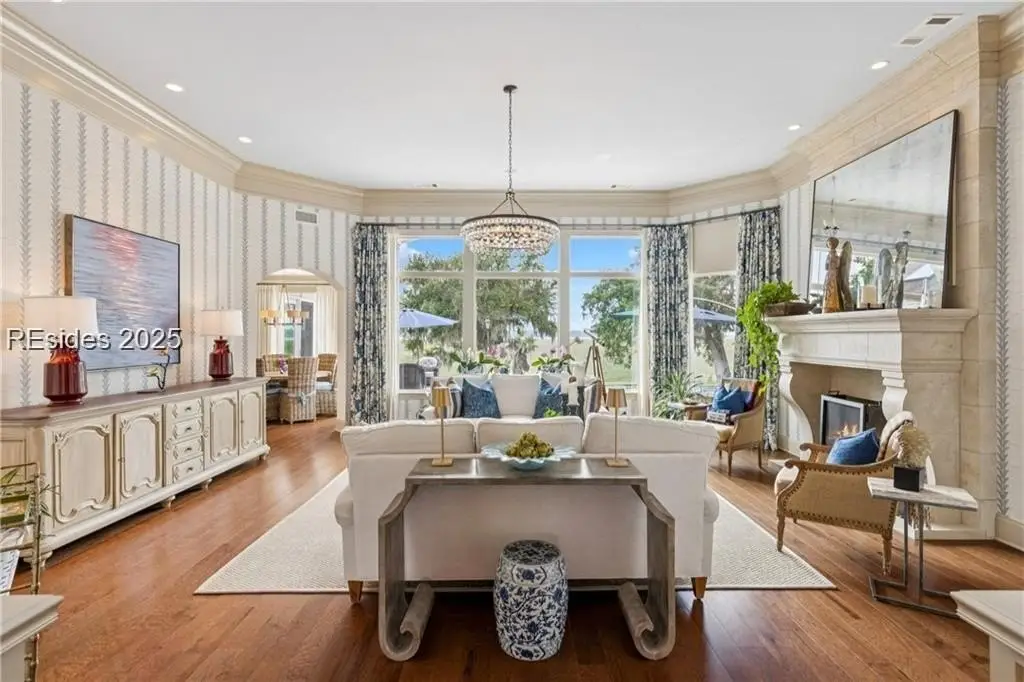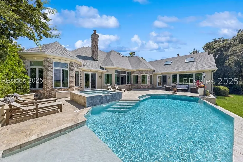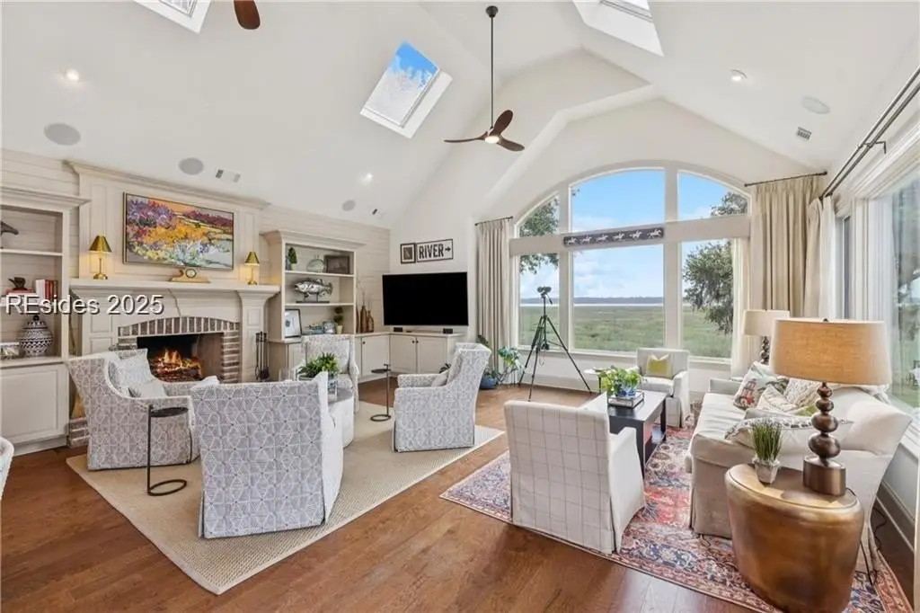 Spectacular marsh-to-river views framed by live oaks in this beautifully updated custom home. Enter through a gated garden into soaring 12’ ceilings, abundant light, and elegant living spaces. The chef's kitchen boasts a Wolf range, 4 ovens, Sub-Zero fridge, wine fridge, 10' island, 2 dishwashers, and more. First-floor primary suite has dual walk-in closets and a private laundry. Bonus room, custom closets, second laundry, new carpet (2023), HVAC (2020), pool heat/cool pump (2024), UV window film, custom built-ins, fire pit, and more. It's an ideal layout for entertaining and hosting family.