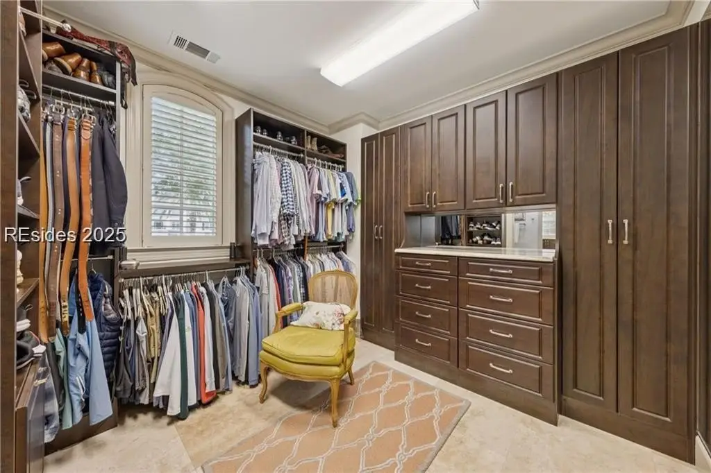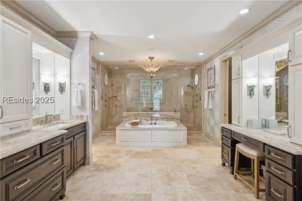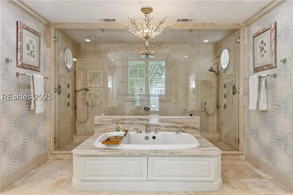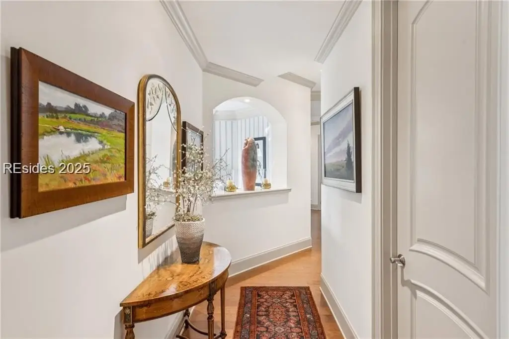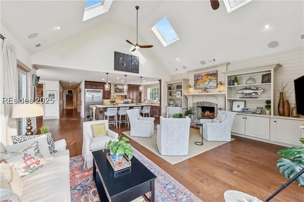 Spectacular marsh-to-river views framed by live oaks in this beautifully updated custom home. Enter through a gated garden into soaring 12’ ceilings, abundant light, and elegant living spaces. The chef's kitchen boasts a Wolf range, 4 ovens, Sub-Zero fridge, wine fridge, 10' island, 2 dishwashers, and more. First-floor primary suite has dual walk-in closets and a private laundry. Bonus room, custom closets, second laundry, new carpet (2023), HVAC (2020), pool heat/cool pump (2024), UV window film, custom built-ins, fire pit, and more. It's an ideal layout for entertaining and hosting family.