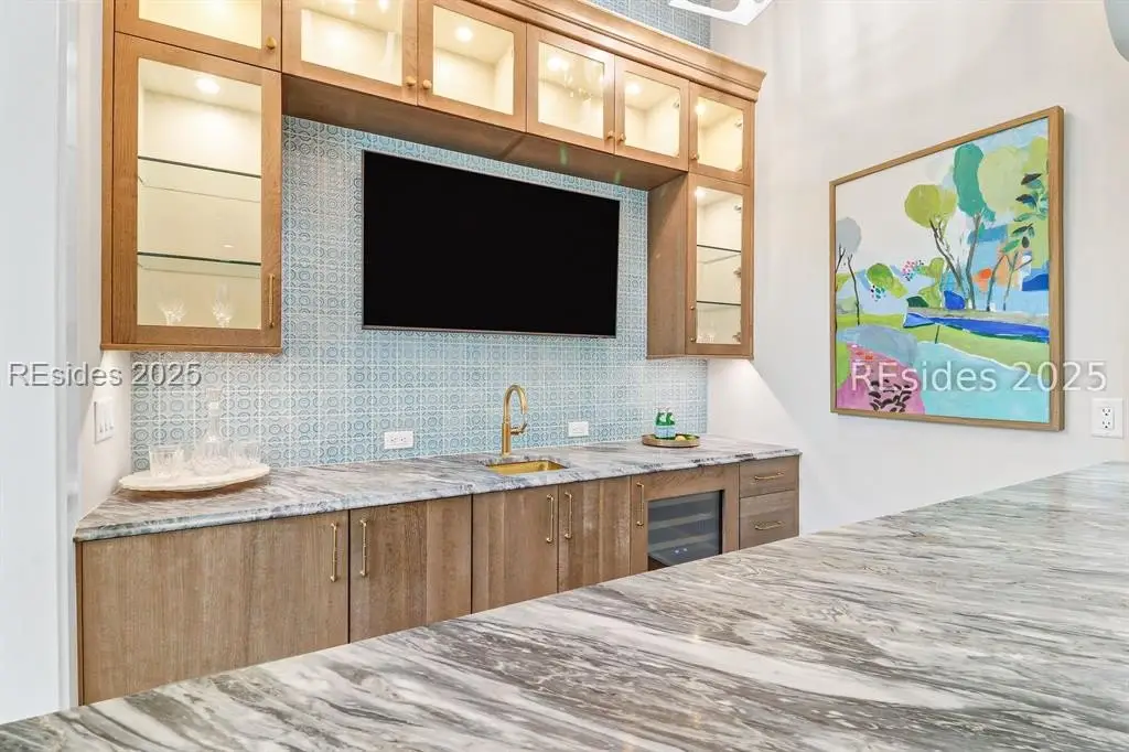 Step into brand-new luxury in the prestigious Colleton River Club, where fresh designer finishes meet panoramic golf course and lagoon views along the sixth hole of the Jack Nicklaus Signature Course. This four-bedroom/four-and-a-half-bath home offers a chefs kitchen with high-end appliances, butlers pantry, and full bar for seamless entertaining. Enjoy a heated & chilled pool with water feature and fire bowls, outdoor kitchen, and a golfers porch with stunning views. Additional highlights include a private study/home office, impact-rated windows, full paver driveway, and three-car epoxy-floored garage. Residents enjoy two signature golf courses by Nicklaus and Dye, two clubhouses, fitness, tennis, pickleball, boating, and more in this gated waterfront community.