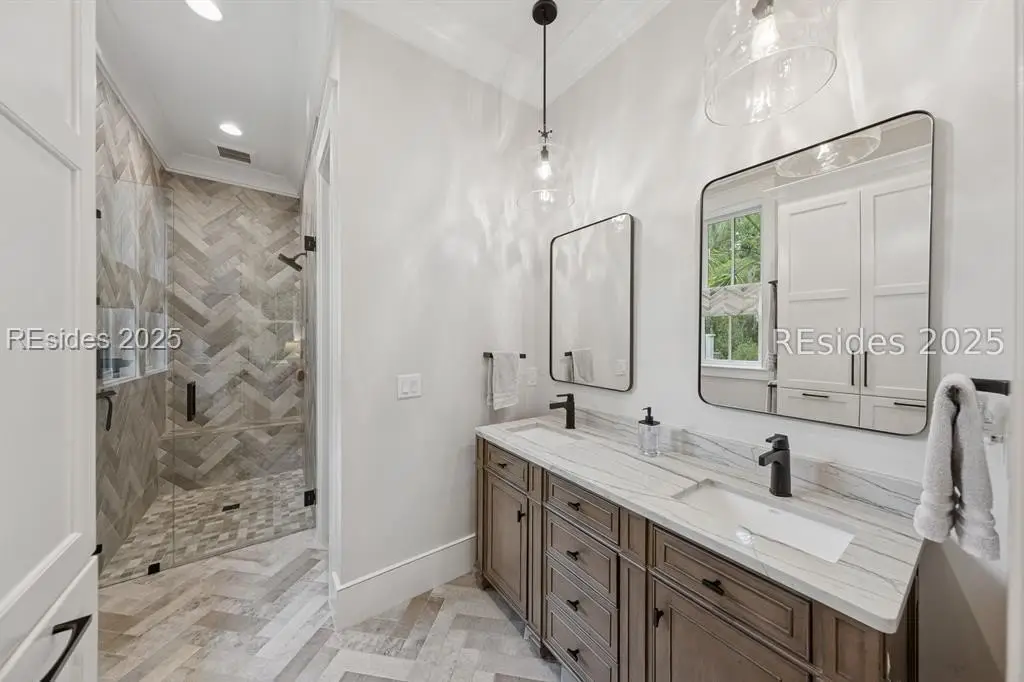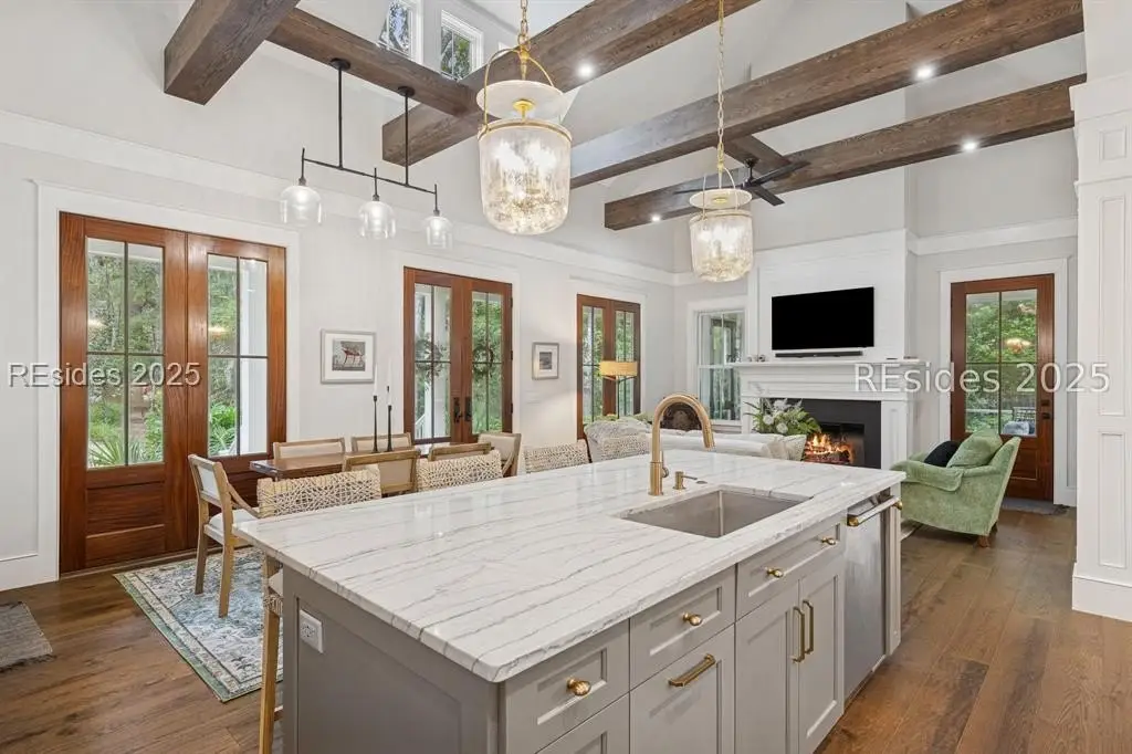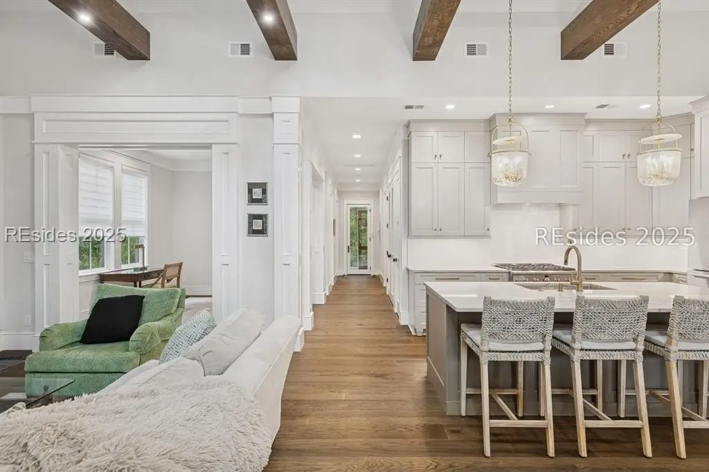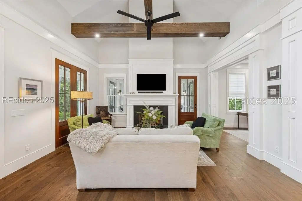 Nestled among majestic live oaks and towering pines, 134 Mount Pelia offers a serene, private escape in the coveted May River Forest neighborhood. This exceptional property features a spacious guest house with two bedrooms, two full bathrooms, a large open kitchen, dining and living areas, and a versatile office or flex space - perfect for both everyday living and entertaining. Indoor and outdoor living flow seamlessly with two screened-in porches, a wrap-around front porch, and two cozy fireplaces, all set within a lush woodland backdrop. Soaring ceilings, custom finishes, and large overhead beams create a grand, airy feel throughout the main living spaces. Set on over an acre of beautifully wooded land, this property offers remarkable flexibility for future growth. The site is thoughtfully positioned to allow for expansion or the addition of a larger main house, presenting a unique opportunity for homeowners or investors looking to maximize its potential in this premier neighborhood. Enjoy the unparalleled privacy of May River Forest while remaining close to Palmetto Bluffs premier amenities, including the Palmetto Bluff Golf Club, and the shops, restaurants, and pools of Wilson Village. 134 Mount Pelia is not just a home - it is a rare combination of tranquility, convenience, and future opportunity.