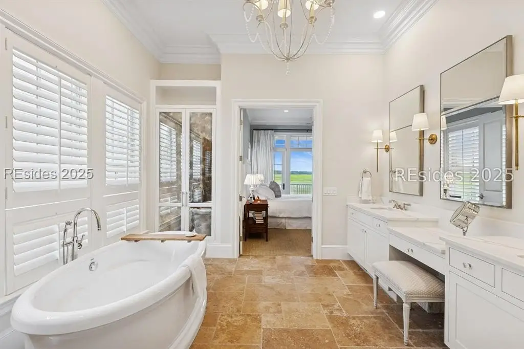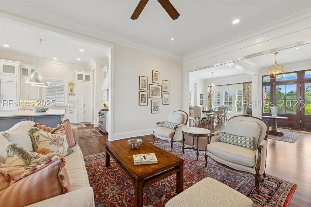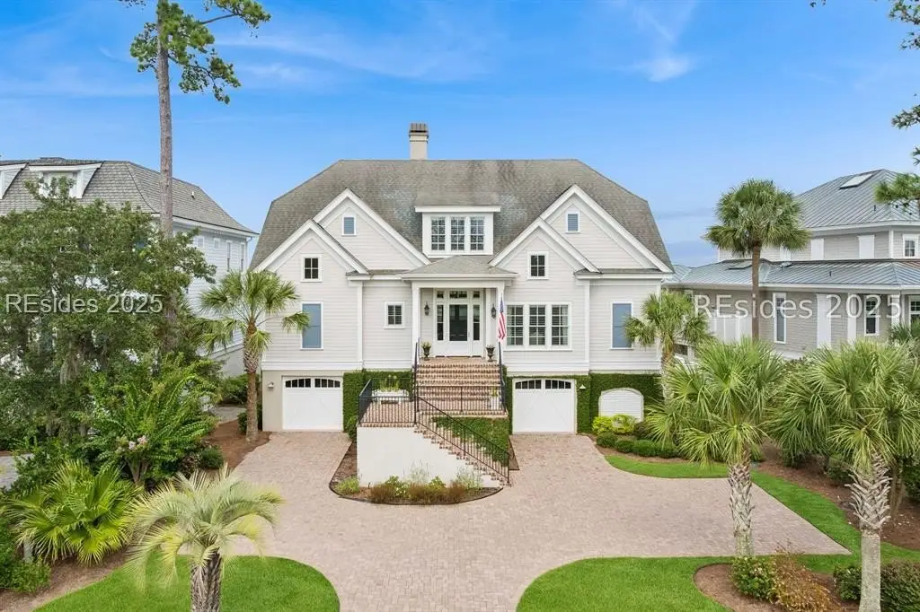 Experience the pinnacle of Lowcountry living with panoramic waterfront marsh and Colleton River views from this stunning 4BR/4.5BA luxury Belfair home. Perfectly elevated to maximize its incredible vistas, this residence has been thoughtfully updated with a state-of-the-art gourmet kitchen, spacious back kitchen/pantry with an additional refrigerator, spa-inspired baths, and gleaming heart pine floors. The first-floor primary suite includes a private laundry, while the second-floor junior suite and two additional ensuite bedrooms offer comfort for family and guests. An elevator provides easy access to all levels. Enjoy a library, screened porch, workshop, and oversized 2-car garage with golf cart storage all moments from Belfair's clubhouse, fitness center, pool, and world-class Tom Fazio golf.