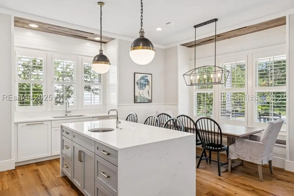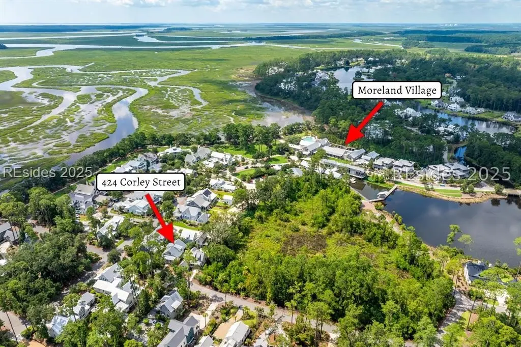 424 Corley Street is a short-term rental eligible, turnkey home in Moreland Village, just one block from the river. With 3 bedrooms, plus a bunkroom, and 3.5 baths in the main house and an additional large guest suite with kitchenette over the garage, there is ample space for friends, family and guests. The large chef's kitchen, sprawling living space, open front porch and screened back porch provide spaces for everyone to relax after enjoying the many activities in Palmetto Bluff. Don't miss this move-in-ready vacation home and income-generating property!