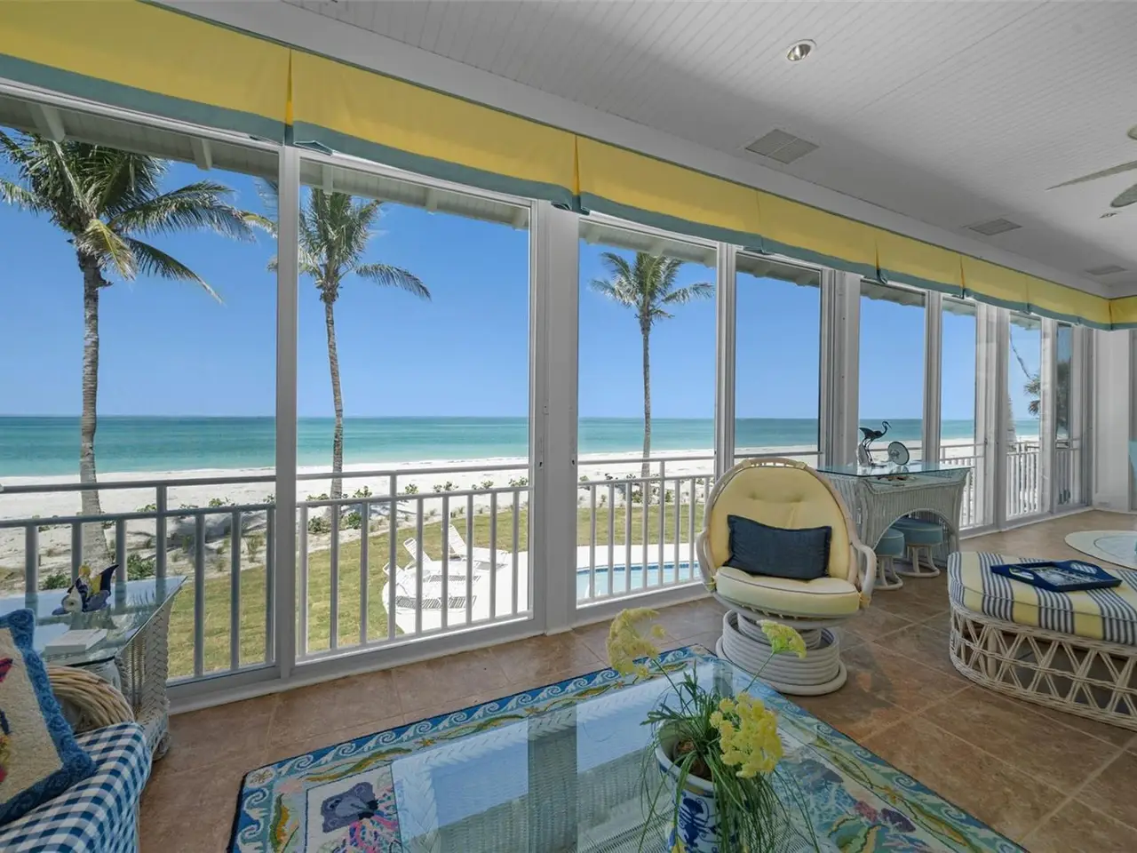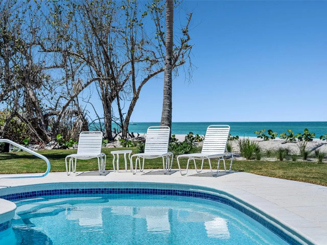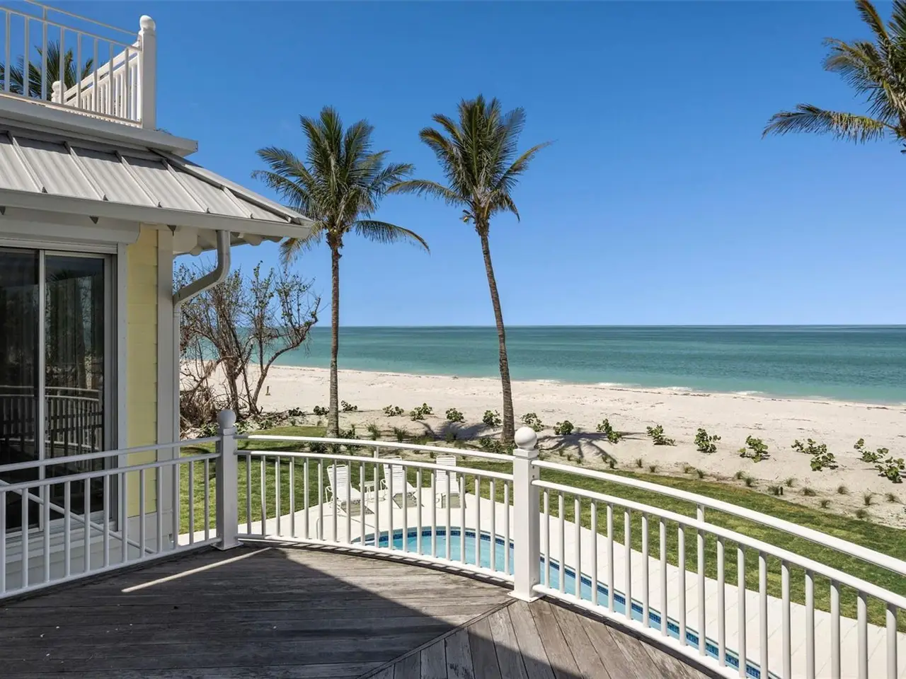 Welcome to a truly exceptional retreat, nestled perfectly between Charlotte Harbor and the pristine shores of the Gulf of Mexico. This stunning Gulf-front residence epitomizes coastal living, offering a seamless blend of traditional elegance, modern sophistication and communion with Boca Grande's Old Florida lifestyle. The generous 1.16- acre lot which includes ownership of the adjacent eastern lagoon is situated on one of the Islands premier private roads improved with only gulf front homes and exclusive beach access. This traditional coastal-style residence is complete with 5 bedrooms and 6.5 baths and its custom construction is a true masterpiece of design and craftsmanship. The spacious and open floorplan provides breathtaking Gulf or Harbor vistas from almost every room and all three levels of the residence are accessible by stairs or elevator which are in close proximity to both garage facilities. The gourmet kitchen is beautifully outfitted with custom wood cabinets, twin Sub-Zero refrigerators, Sub-Zero beverage drawers, Wolf cooktop, double ovens and a multitude of fine custom finishes. The main living floor also includes a luxurious primary bedroom with separate dual baths, large custom closet and direct access to an elegant den/office. The second living level includes three generously sized guest suites, each with their own bath, as well as a second laundry room, a study, and a comfortable living room with gorgeous waterfront porches. The residence enjoys a refined aesthetic complete with beautiful hardwood floors, smooth drywall finishes, faux painting, custom built-ins and beautiful wood moldings all of which are enhanced by the properties whole house Lutron lighting system. The grounds are beautifully landscaped and highlighted by an in-ground pool and private beach access. This stunning outdoor oasis is perfect for serene quiet time, family gatherings and entertaining friends. This Boca Grande gem is more than just a home; it's a lifestyle. With its prime location, stunning views, and unparalleled craftsmanship, this beachfront estate presents a singular opportunity to own a truly exceptional piece of Gulf Coast luxury.