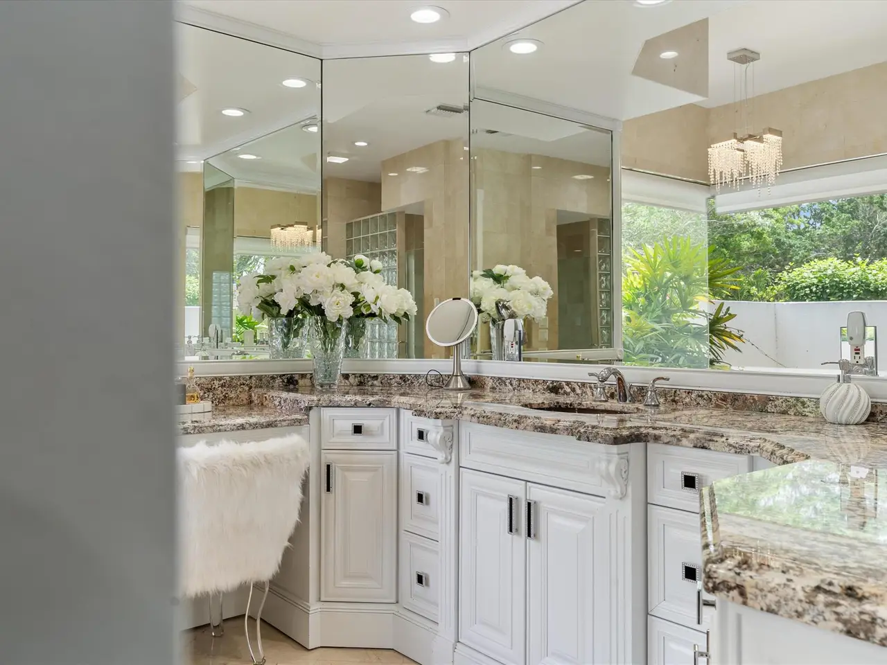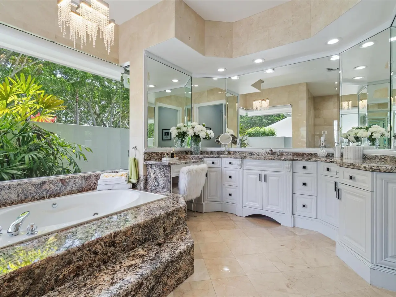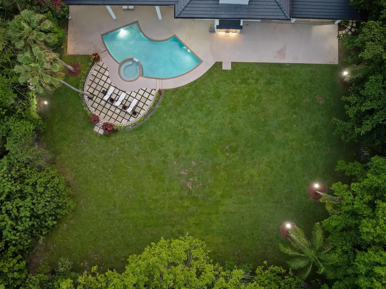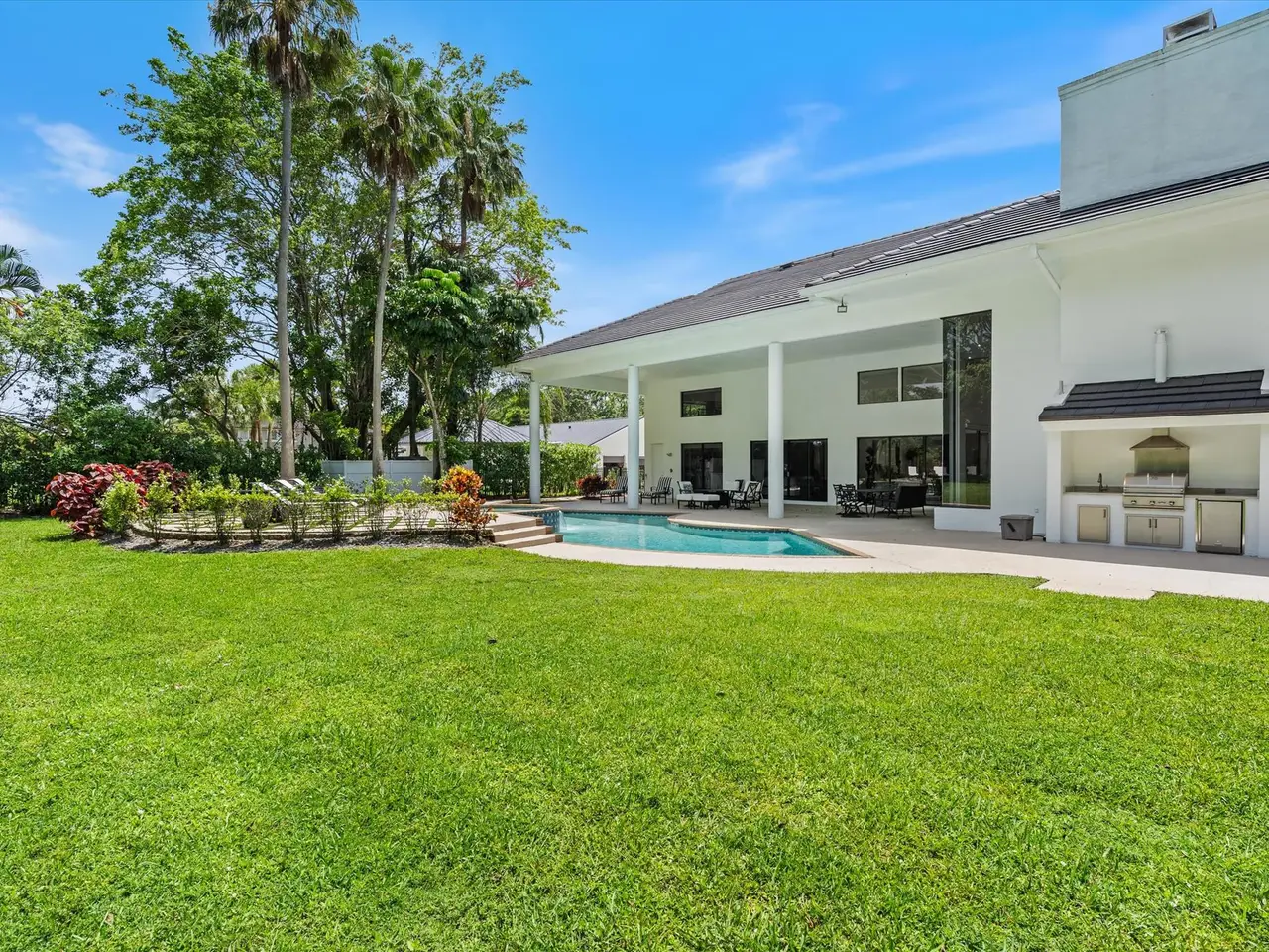 A very rare offering in the exclusive enclave of Long Lake Estates of Boca Raton this exceptional showcase home rests on a private 48,000 SF lot. Behind the manned security gates of this ultra private community in central Boca this 4BR/5BA family estate home offers something you don't find often these days, a lot size over an acre! The property is specially appointed with amenities such as a built in steam room in the primary bath, 24 foot ceilings in the main areas, and even a master closet with stairs that lead to a special enormous second floor room currently used as a theatre. The expansive backyard has room to spare overlooking the private free form custom pool with hot tub, a lighted outdoor kitchen with grill, summer shower, and even a mini shed area for storage and pool