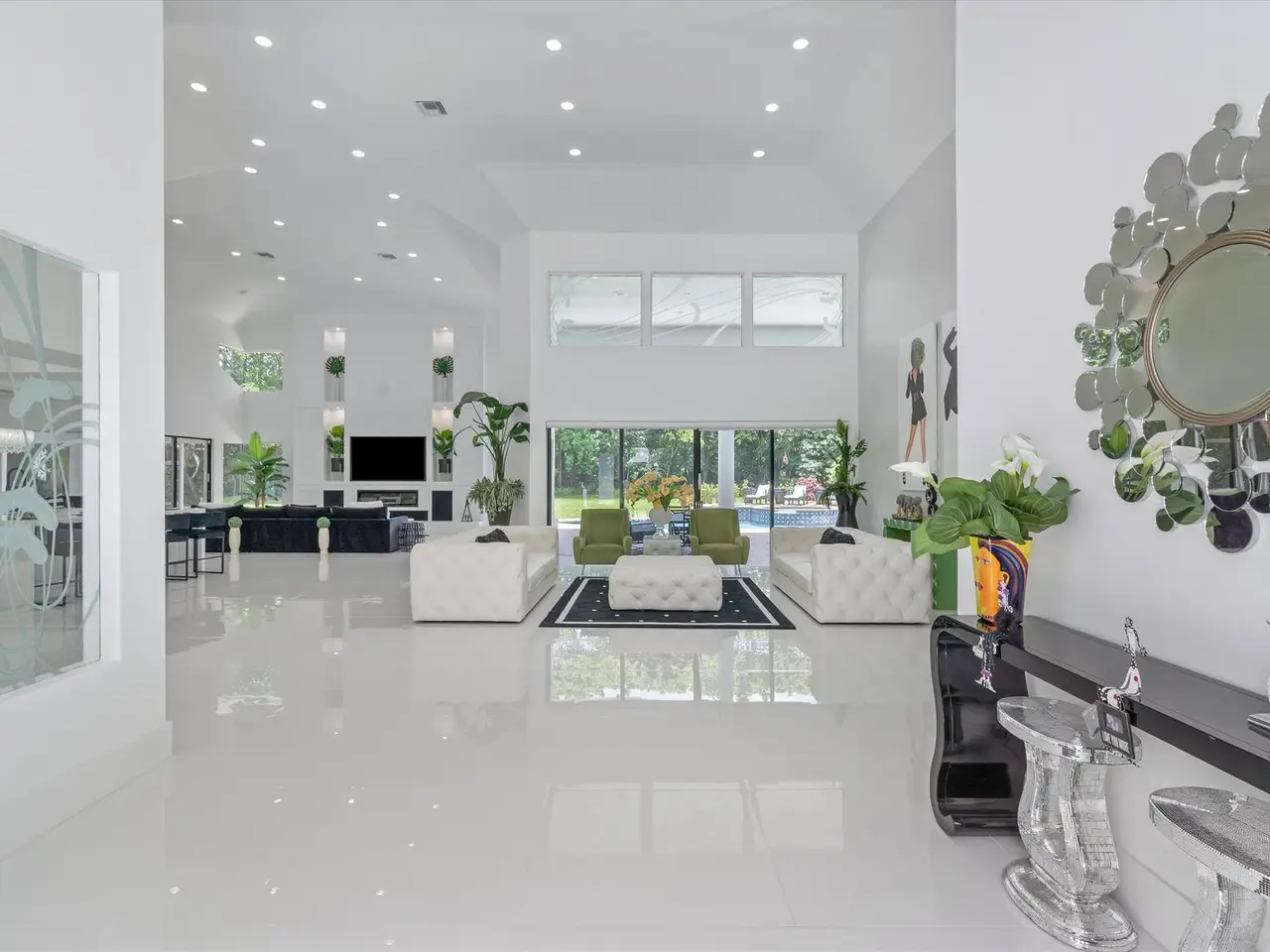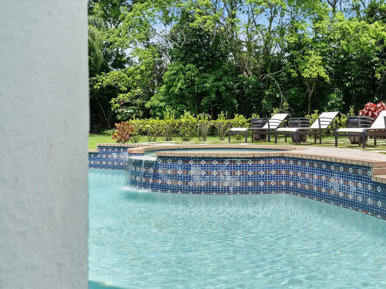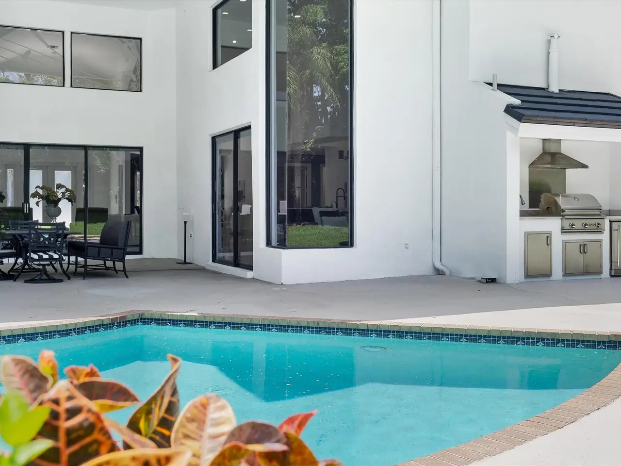 A very rare offering in the exclusive enclave of Long Lake Estates of Boca Raton this exceptional showcase home rests on a private 48,000 SF lot. Behind the manned security gates of this ultra private community in central Boca this 4BR/5BA family estate home offers something you don't find often these days, a lot size over an acre! The property is specially appointed with amenities such as a built in steam room in the primary bath, 24 foot ceilings in the main areas, and even a master closet with stairs that lead to a special enormous second floor room currently used as a theatre. The expansive backyard has room to spare overlooking the private free form custom pool with hot tub, a lighted outdoor kitchen with grill, summer shower, and even a mini shed area for storage and pool
