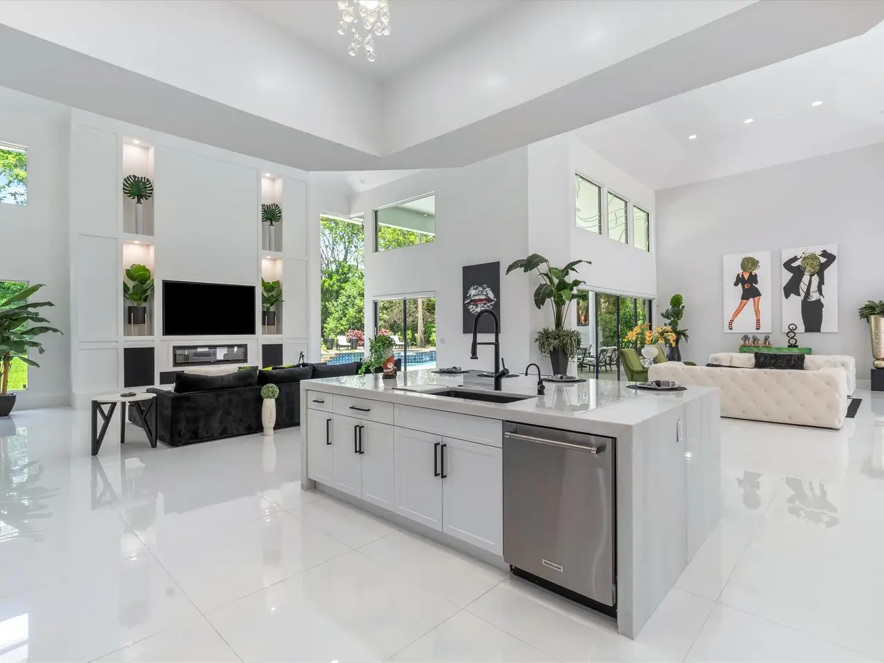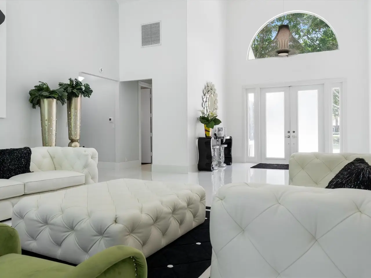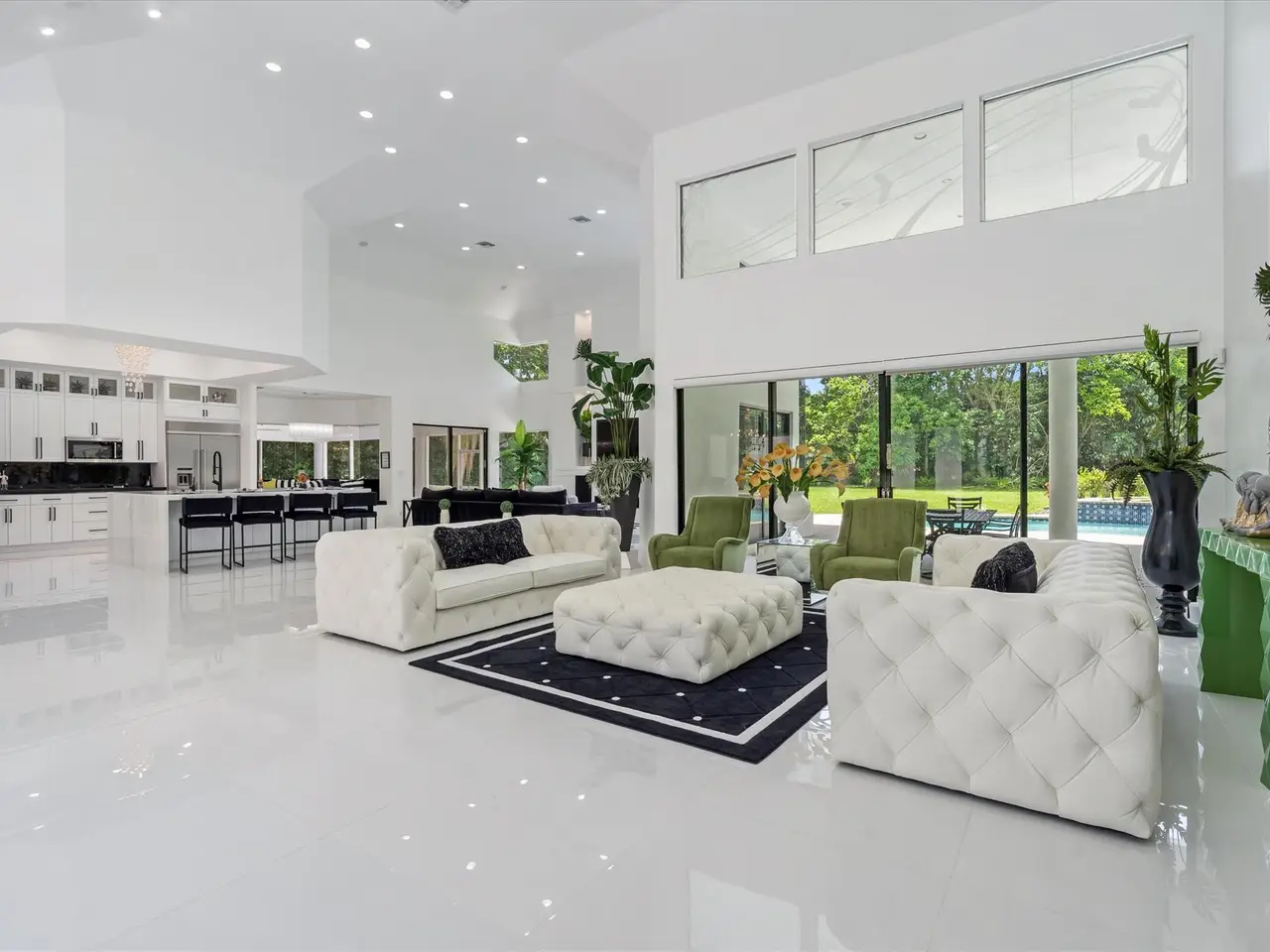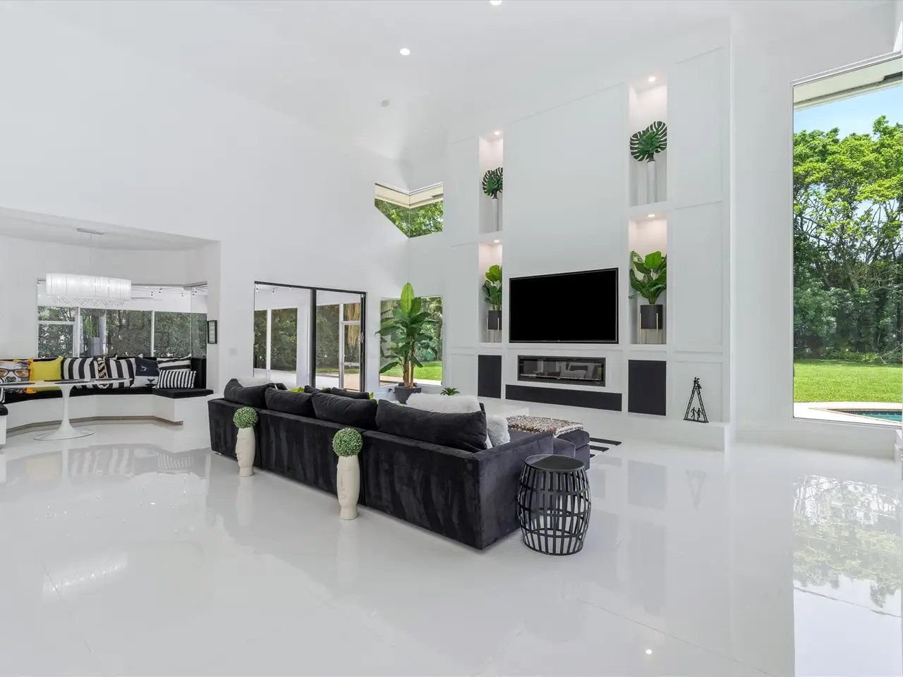 A very rare offering in the exclusive enclave of Long Lake Estates of Boca Raton this exceptional showcase home rests on a private 48,000 SF lot. Behind the manned security gates of this ultra private community in central Boca this 4BR/5BA family estate home offers something you don't find often these days, a lot size over an acre! The property is specially appointed with amenities such as a built in steam room in the primary bath, 24 foot ceilings in the main areas, and even a master closet with stairs that lead to a special enormous second floor room currently used as a theatre. The expansive backyard has room to spare overlooking the private free form custom pool with hot tub, a lighted outdoor kitchen with grill, summer shower, and even a mini shed area for storage and pool