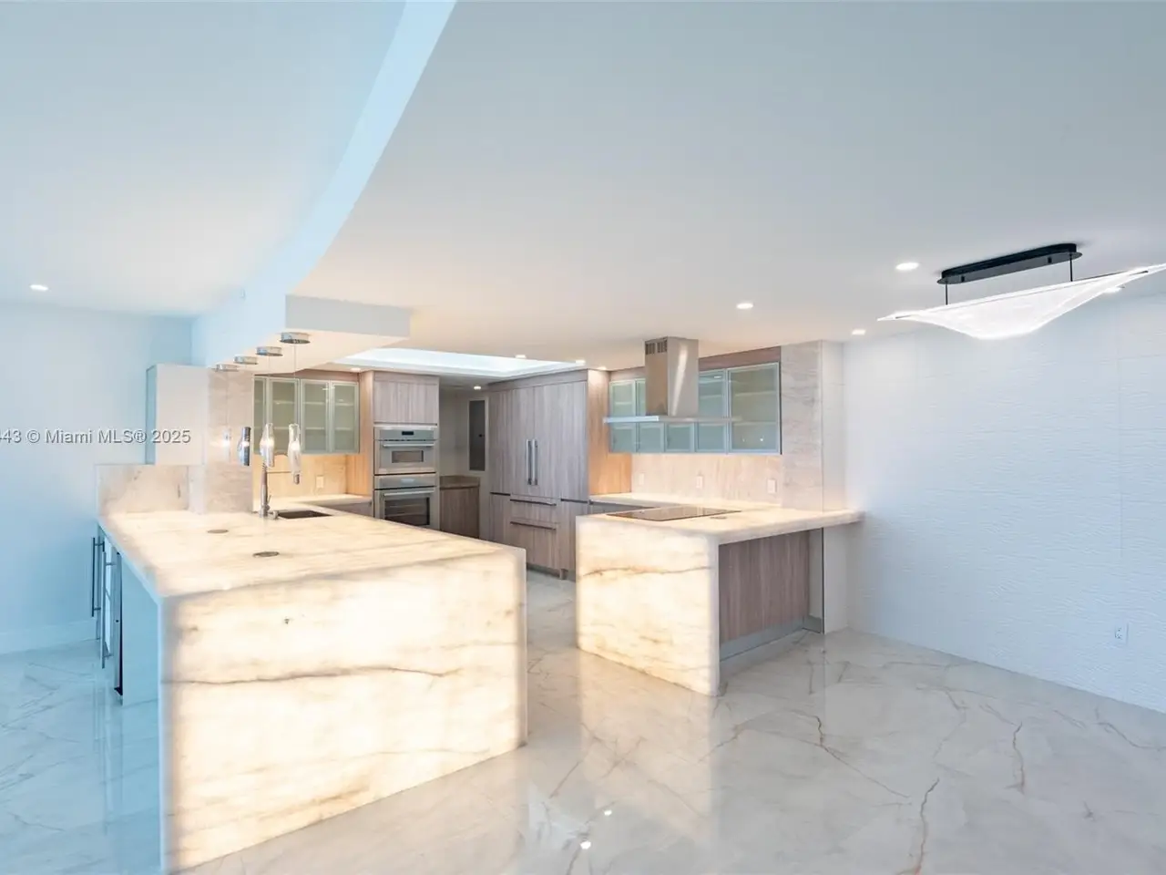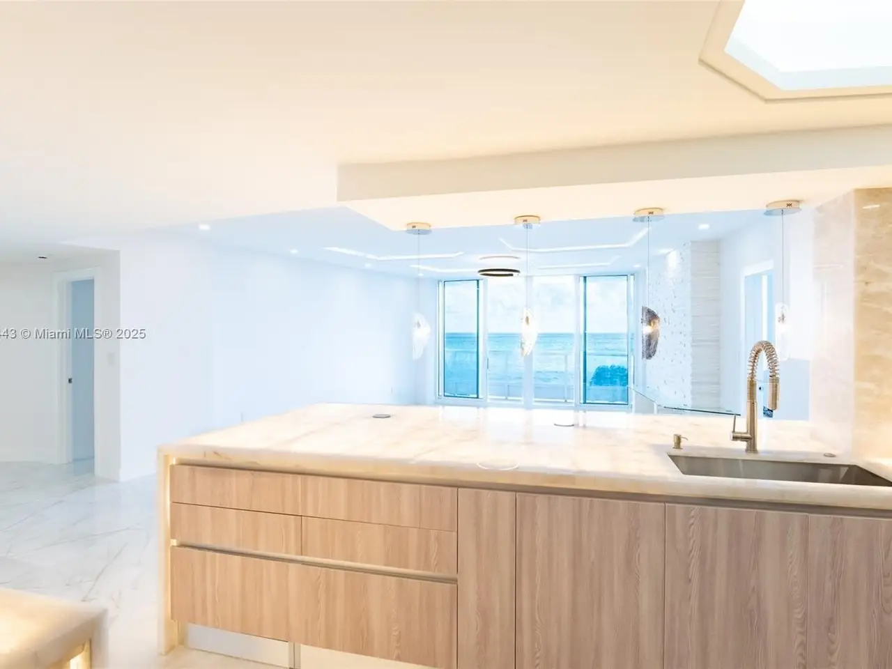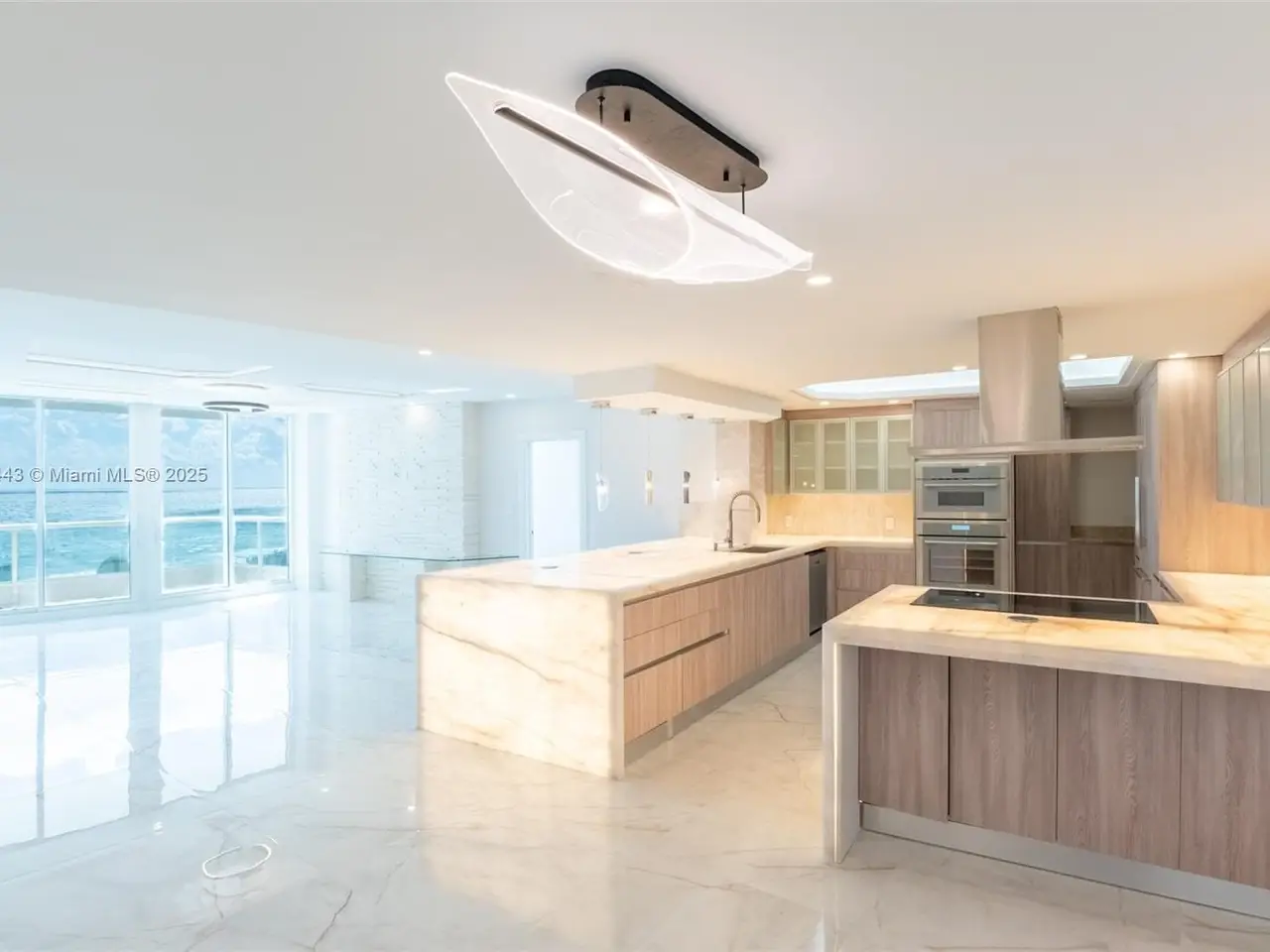 Exquisite oceanfront residence with 2 bedrooms and 2.5 baths, fully renovated and uniquely designed with impeccable detail. Spanning 1,900 sq. ft., this luxurious home is located in Sabal Point, a boutique building of only 70 units featuring a saltwater pool and private beach access. The custom kitchen showcases Thermador appliances, quartzite lit up counter tops , wine cooler, and artistic glass accents. The living and dining areas boast elegant ceiling LED lighting, designer finishes, and a stunning Custom Glass fireplace wall. Both bedrooms feature custom closets, glass doors, and spa-inspired baths with European fixtures. Recent building upgrades include concrete restoration, new roof, glass railings, impact windows, and a chic modern lobby.