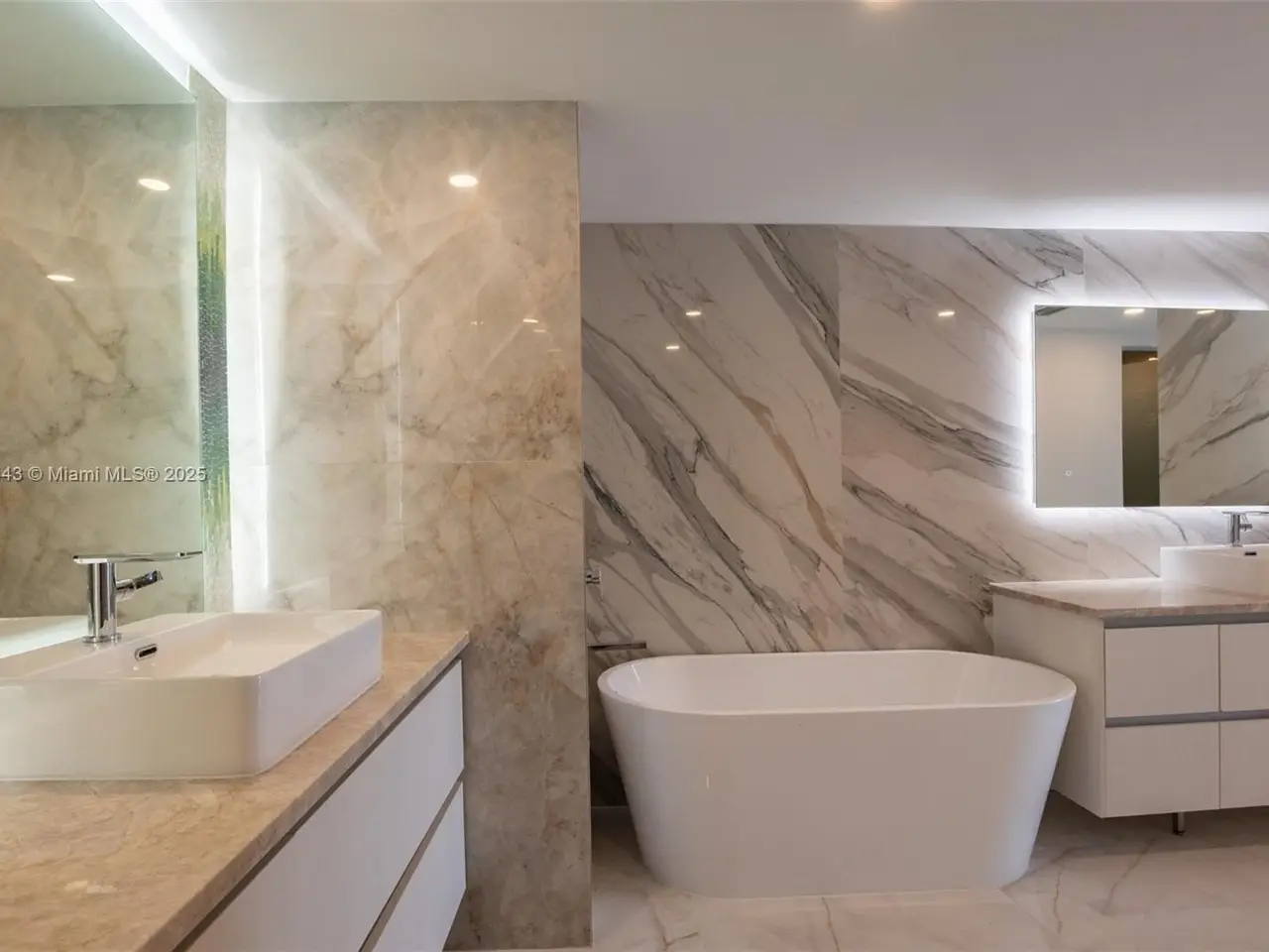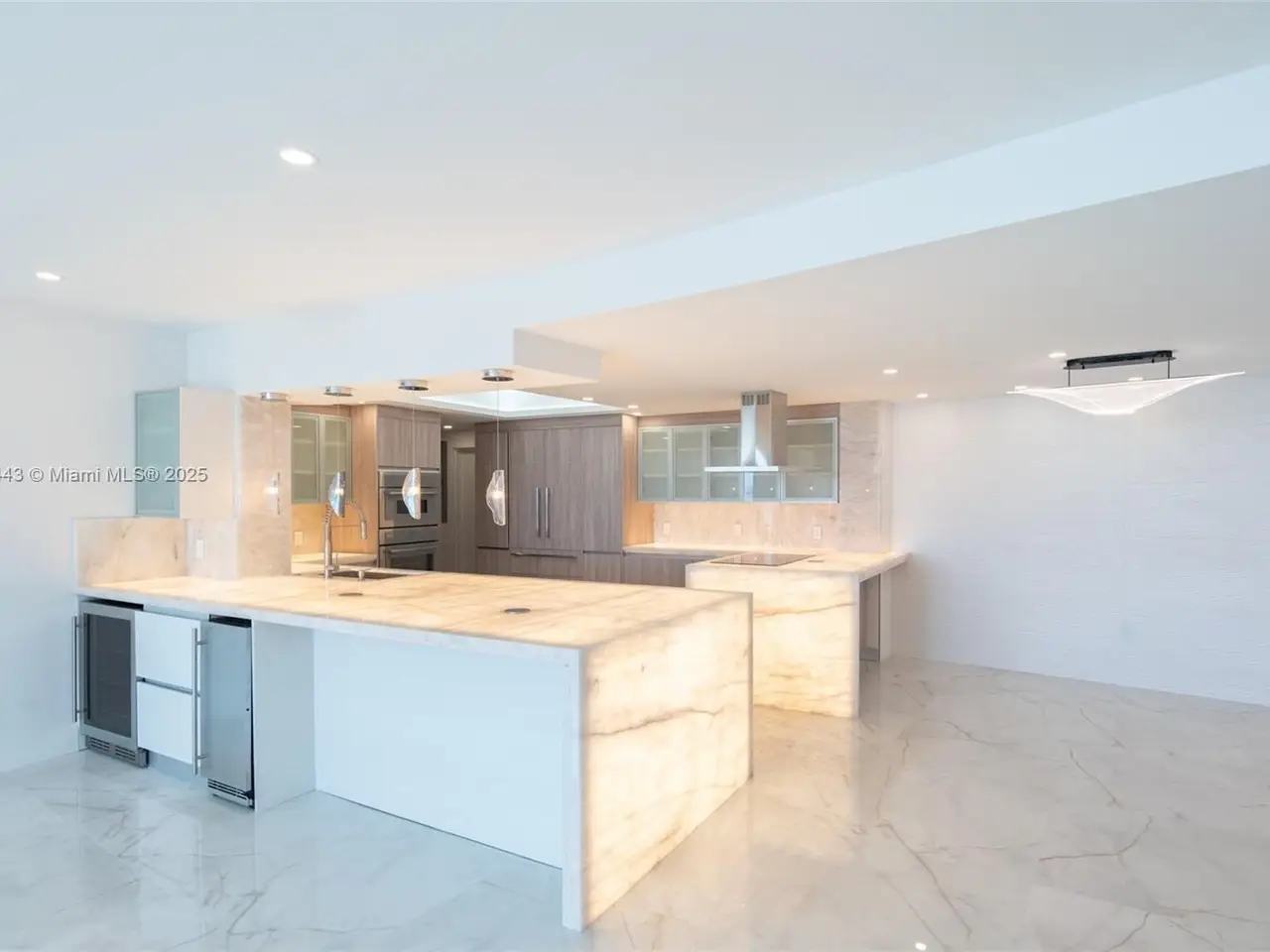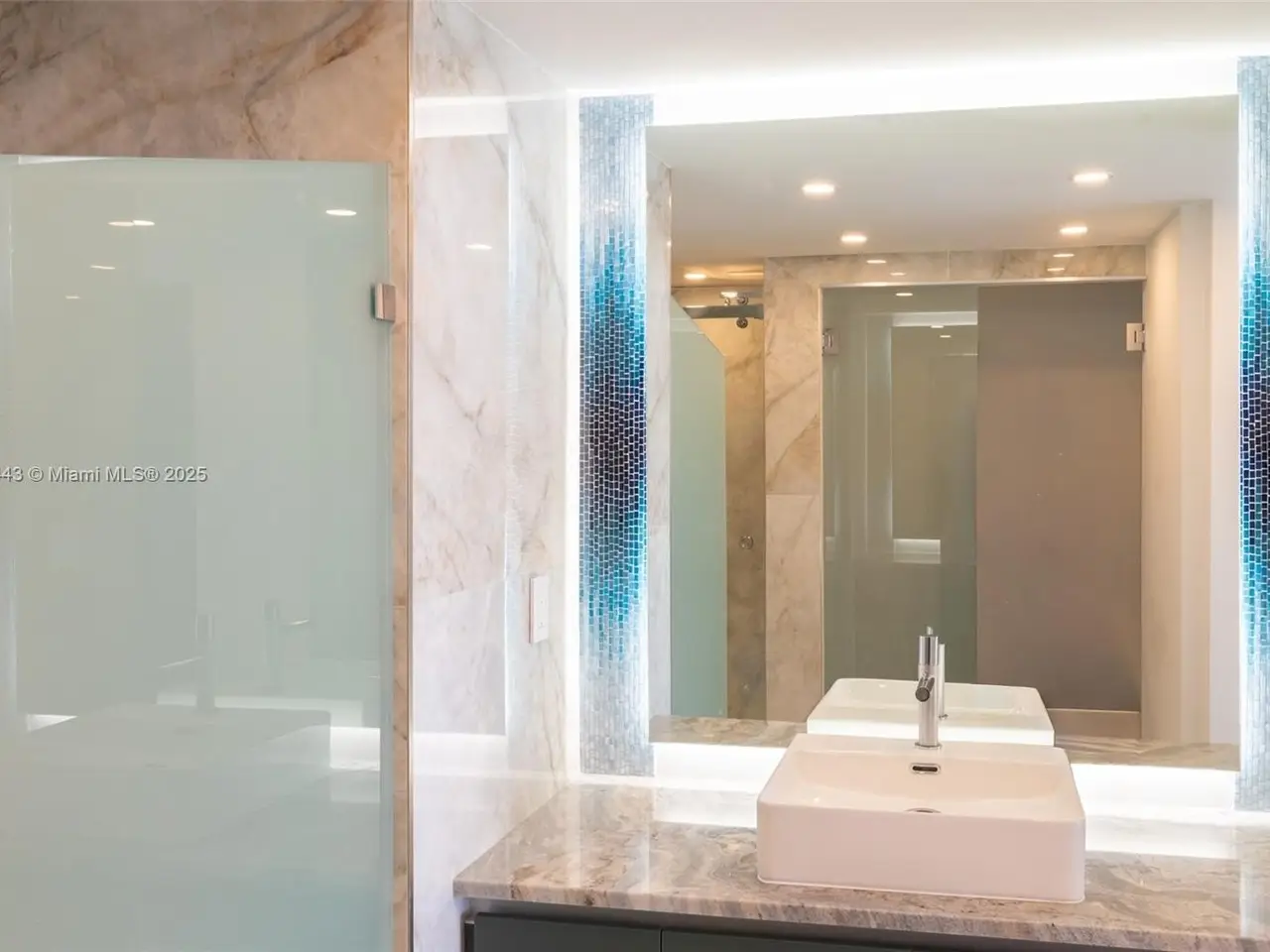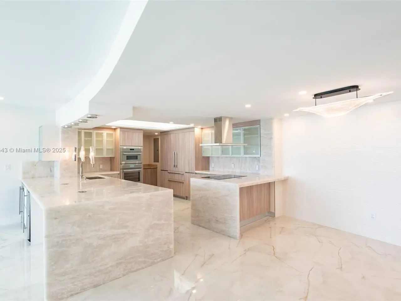 Exquisite oceanfront residence with 2 bedrooms and 2.5 baths, fully renovated and uniquely designed with impeccable detail. Spanning 1,900 sq. ft., this luxurious home is located in Sabal Point, a boutique building of only 70 units featuring a saltwater pool and private beach access. The custom kitchen showcases Thermador appliances, quartzite lit up counter tops , wine cooler, and artistic glass accents. The living and dining areas boast elegant ceiling LED lighting, designer finishes, and a stunning Custom Glass fireplace wall. Both bedrooms feature custom closets, glass doors, and spa-inspired baths with European fixtures. Recent building upgrades include concrete restoration, new roof, glass railings, impact windows, and a chic modern lobby.