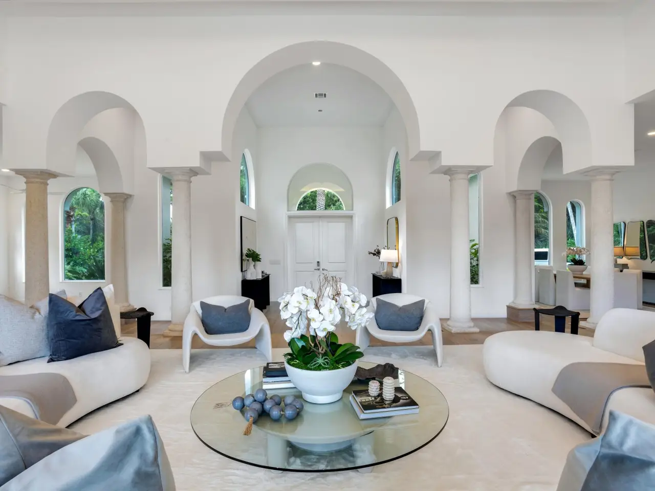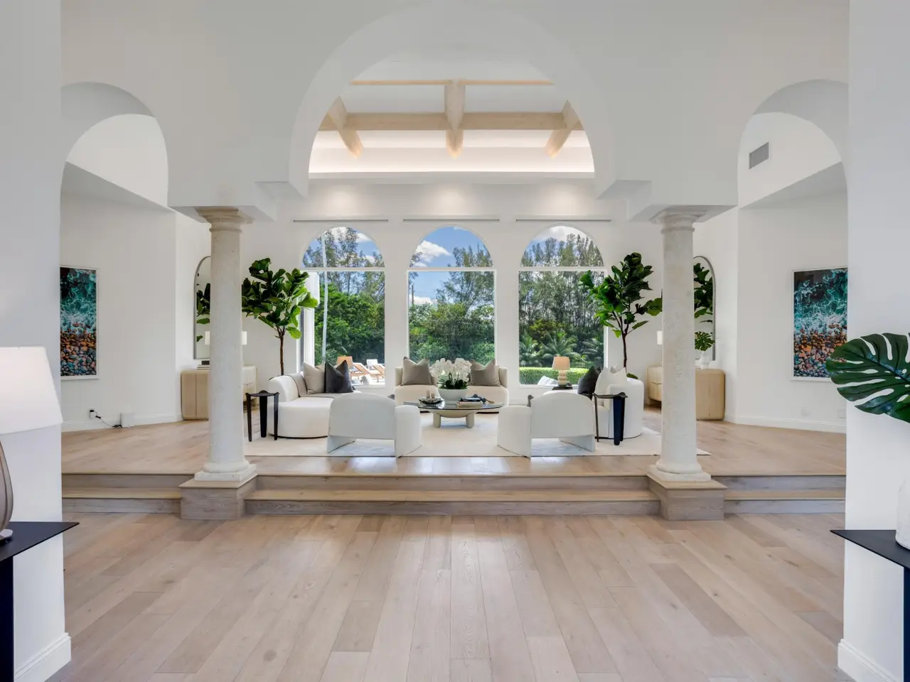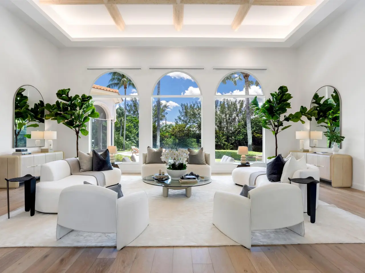 Le Belle Refuge, a 5 Bedroom European Villa sited on a 3 +/- Acre Lakefront Parcel, is located in renown Le Lac which offers world-class security & the utmost privacy w/i minutes to Boca Raton private airport & prestigious private schools. This single level luxury residence offers long lake views and glorious sunsets from nearly every room. The north wing is comprised of the primary suite, a gym & office/optional bedroom & half bath. The south wing is comprised of 3 ensuite guest rooms. The heart of the home is a grand living room, an open kitchen/breakfast area/ family room flowing out to a screened lakefront loggia. Le Lac is comprised of only 32 estates nestled on 200 acres of sprawling lawns & sparkling lakes and is the only community in Central Boca Raton that permits boating.