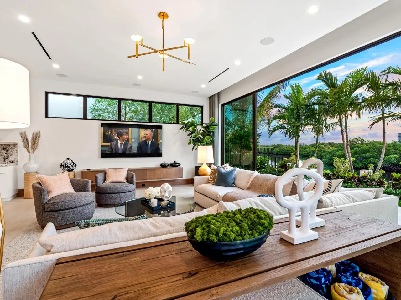 ''New'' Modern Malibu-inspired Sanctuary Point Estate sets the stage for this Sanctuary point estate with approximately 170 feet of wraparound protected waterfrontage by award-winning team of Stephen Albanese Builders, Quinn Miklos Architects and Marc-Michaels Interior Design. Epic foyer entrance with architectural staircase ascending up three levels opens to this glass encased estate with all major rooms facing either the waterway, tranquil bird preserve and Intracoastal waterway. South wing Primary suite includes dual baths and wardrobes, lounge, separate exercise room and waterfront balcony. Resort-like pool/spa and patio with expansion entertainment lanai with summer kitchen and cabana. Other amenities include a club room with separate office, 3rd level game room, wine room, elevator and 3.5-bay garage.