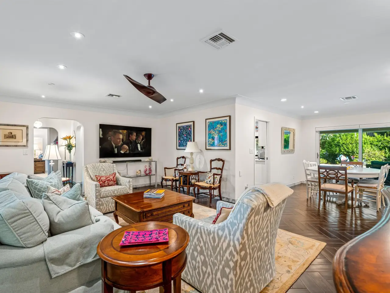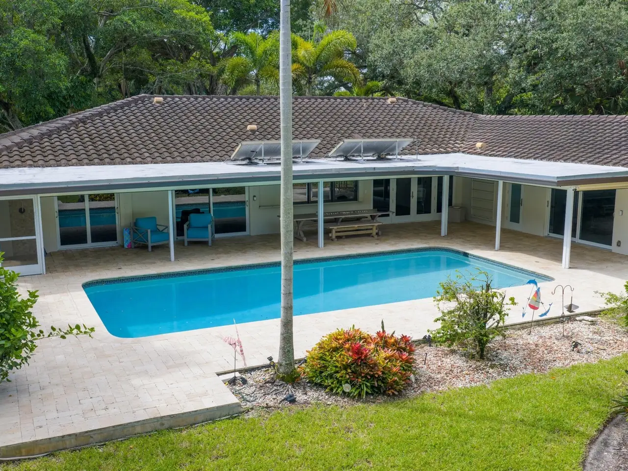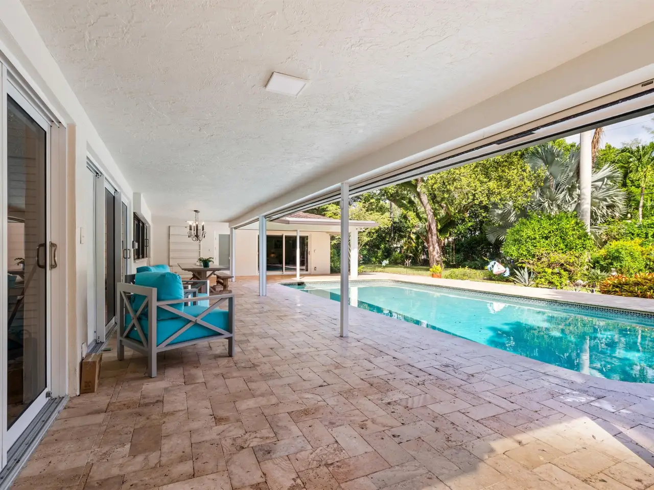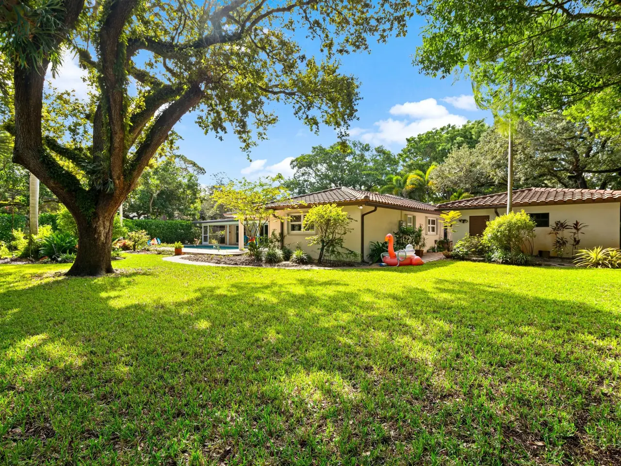 On a coveted park-like 0.4+/- acre corner lot in the heart of Old Floresta, this light-filled split-plan one-story features a reimagined primary suite with Carrara marble spa bathroom and oversize boutique closet, gourmet breakfast bar island kitchen w/top appliances, light-infused living room, formal dining room, family room, 3 guestrooms, office, impact windows/doors; 34'x16' heated saline pool.