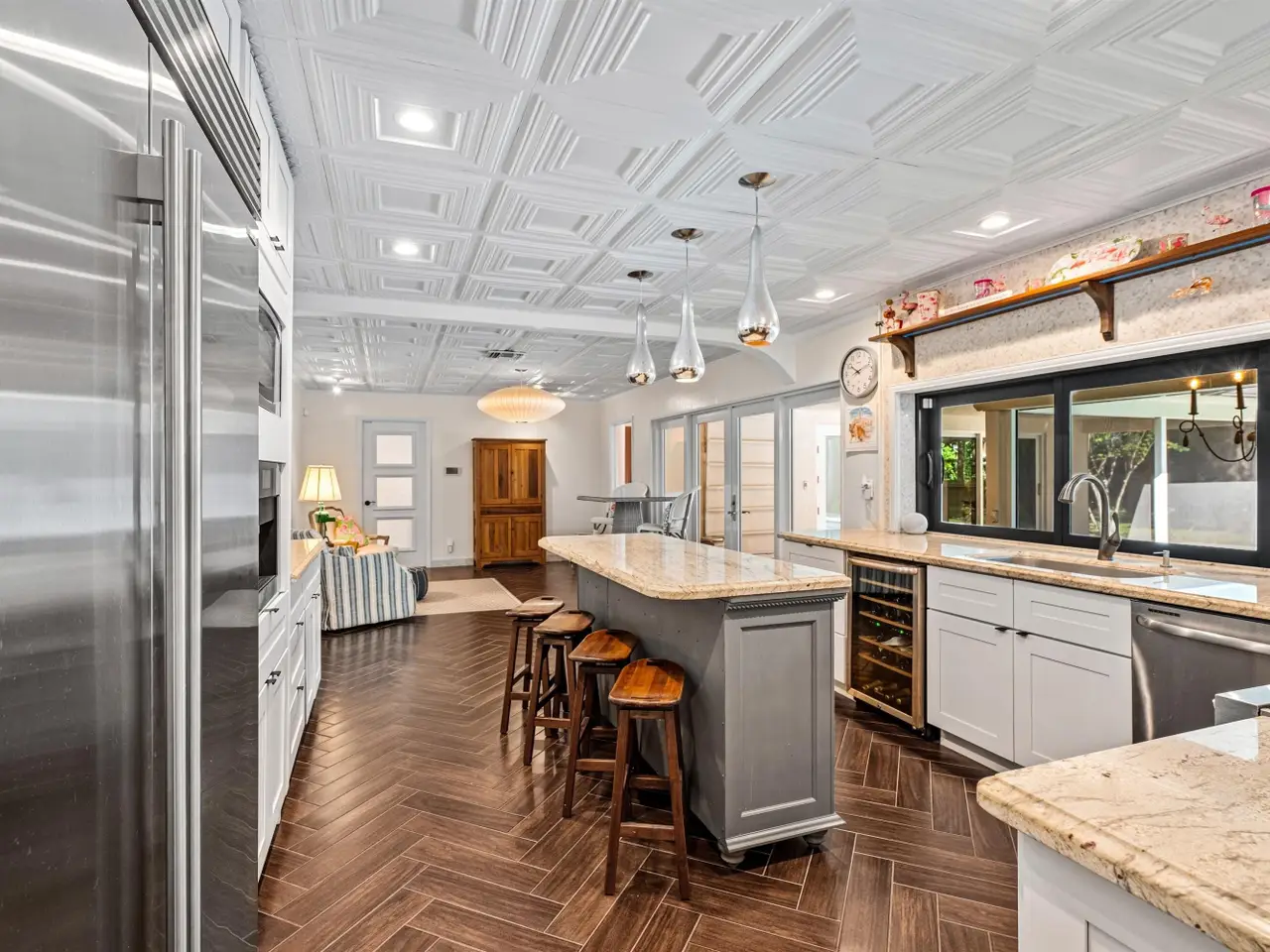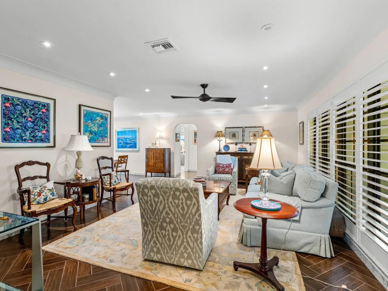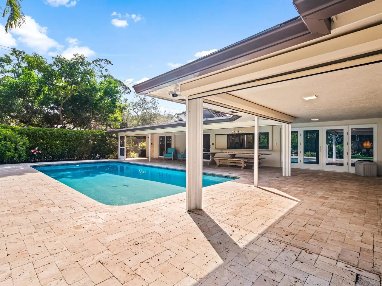 On a coveted park-like 0.4+/- acre corner lot in the heart of Old Floresta, this light-filled split-plan one-story features a reimagined primary suite with Carrara marble spa bathroom and oversize boutique closet, gourmet breakfast bar island kitchen w/top appliances, light-infused living room, formal dining room, family room, 3 guestrooms, office, impact windows/doors; 34'x16' heated saline pool.