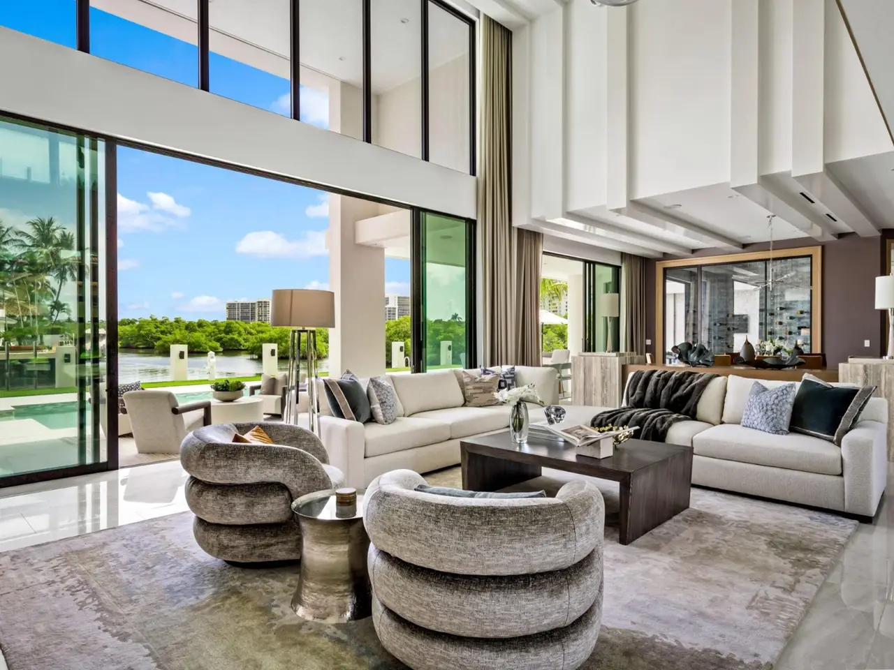 ''New'' Modern/Organic-inspired Sanctuary Point Estate sited on 173+/- feet of wraparound waterfrontage in The Sanctuary by awarding-winning team of Stephen Albanese Builders, Quinn Miklos Architects and Marc-Michaels Interior Design. A towering foyer entrance sets the stage for this 3-level estate encased in glass with panoramic water views and tranquil bird preserve setting from all major rooms. Epic primary wing with sleek dual baths, wardrobes and a separate lounge. Resort-style pool/spa and patio with entertainment lanai and cabana. Rare, protected mega-yacht side dockage with straight 131+/- feet. Other amenities include Club Room with a separate Office, 3rd Level Game/Exercise Room, Wine Room, Elevator and 4 bay garage. Truly setting a new level in Boca Raton waterfront estate living!