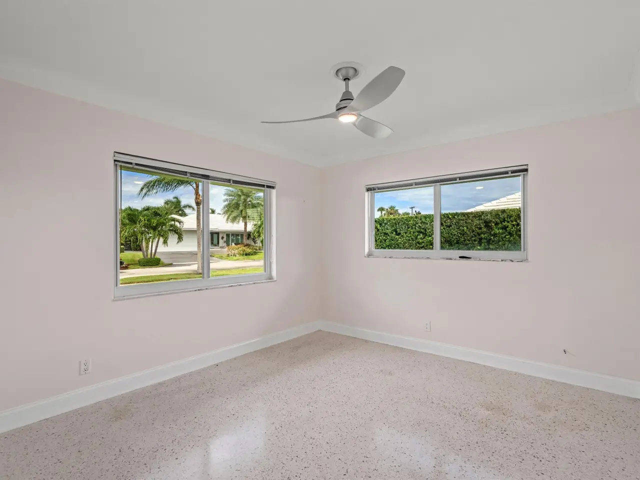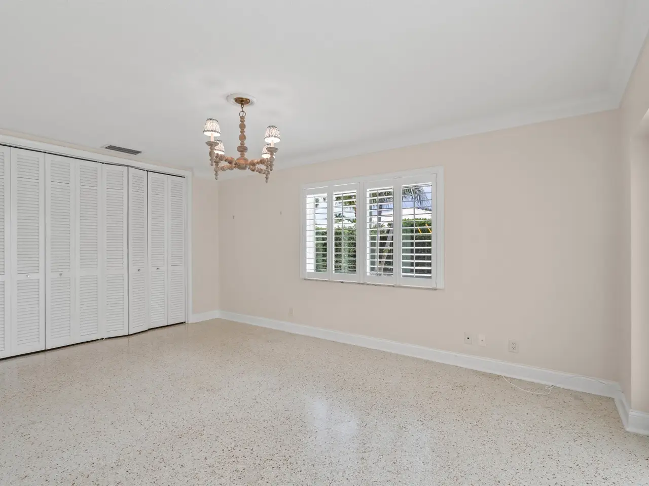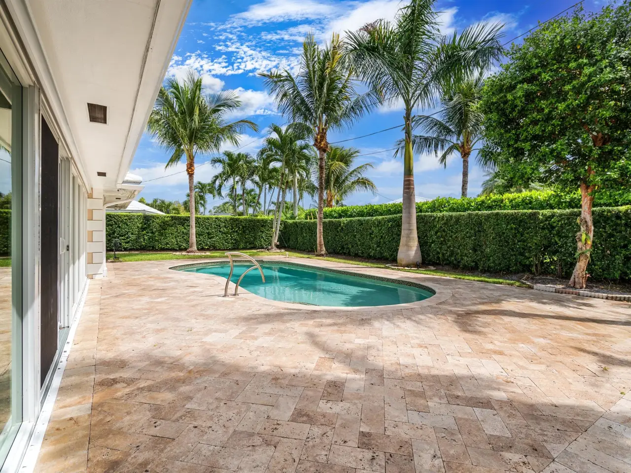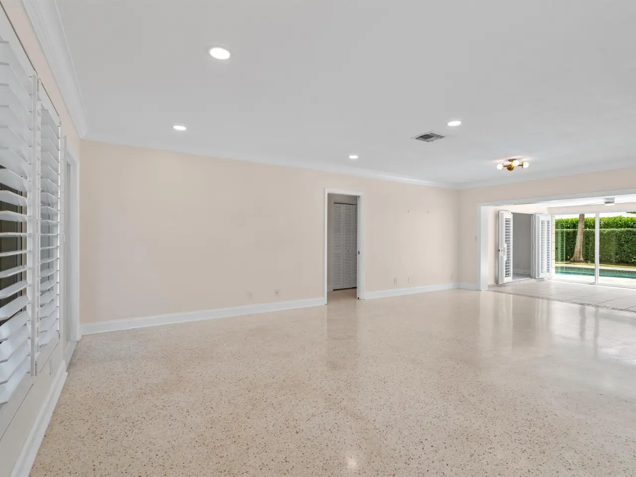 Located in desirable Camino Gardens, this classic Bermuda-style residence presents a harmonious blend of tropical character and modern sophistication, featuring an updated gourmet kitchen and designer bathrooms. The light-filled interiors span 2,539 +/- total square feet in a free-flowing, open floor plan. Architectural details include crown moldings and elegant plantation shutters. The central great room is perfectly situated for entertaining, serviced by a spacious bar connecting it to the kitchen. The kitchen is equipped with Mahogany Shaker cabinetry, granite countertops, and stainless-steel appliances. The adjoining breakfast nook offers a built-in buffet with glass showcase cabinetry.