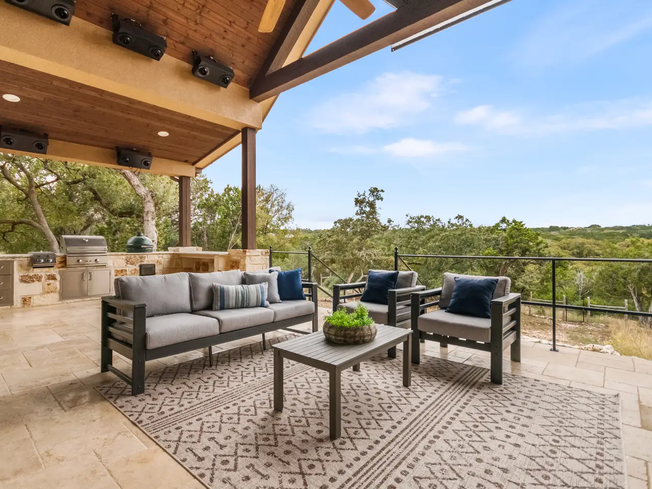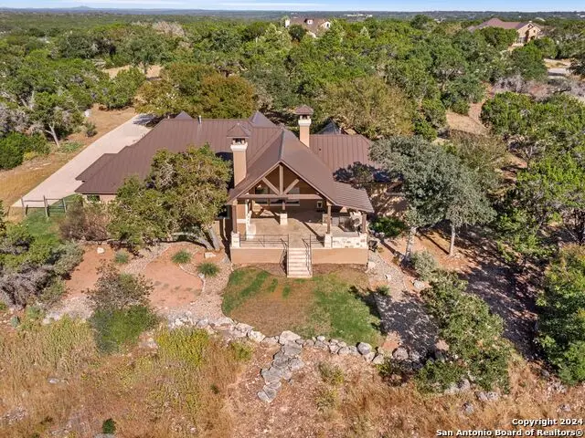 Experience all that Cordillera Ranch has to offer and enjoy the beautiful views at this exquisite one story ranch style home located close to the Guadalupe River Park. This property sits on just over 2 acres and has 4 nice size bedrooms and 2.5 bathrooms and a 3 car garage. As you walk in the home you are greeted with a wall of windows to take in the spectacular hill country views, a floor to ceiling stone fireplace with built in cabinets on each side, central vacuum, a large entertainer's kitchen with gas cooking, double ovens, an island, and eat in bar top. The enlarged outdoor covered patio is impressive. Equipped with an outdoor fireplace, misting system, designated kitchen for grilling, and plenty of room to create an additional outdoor cozy living space. The location of this property is equipped with city water and sewer. Come and make this house your home.