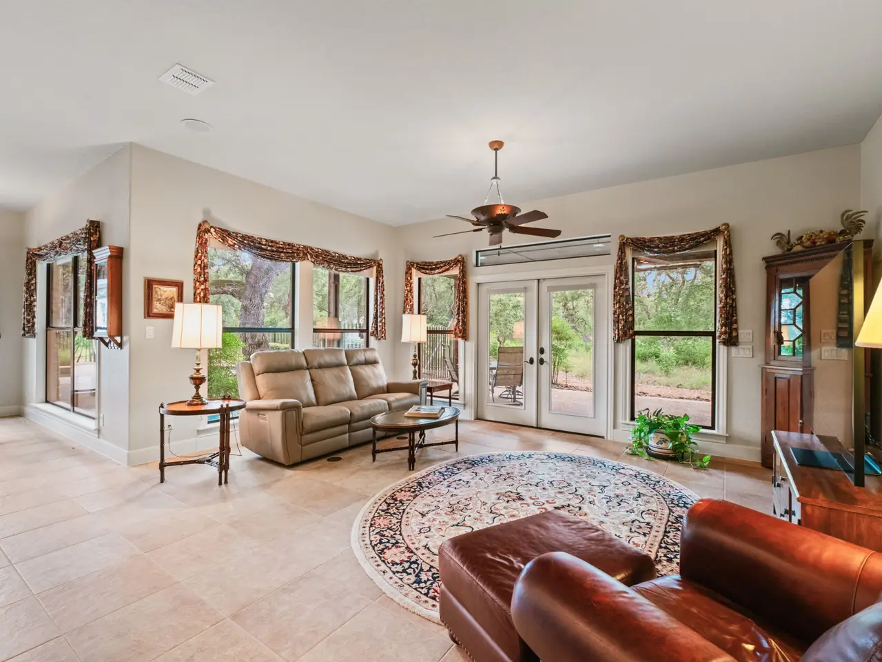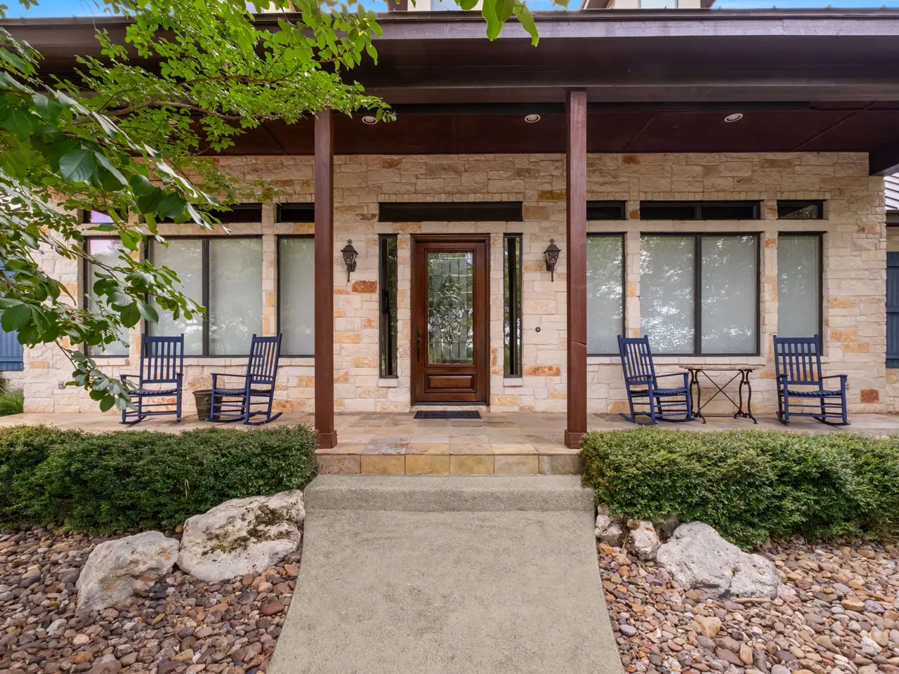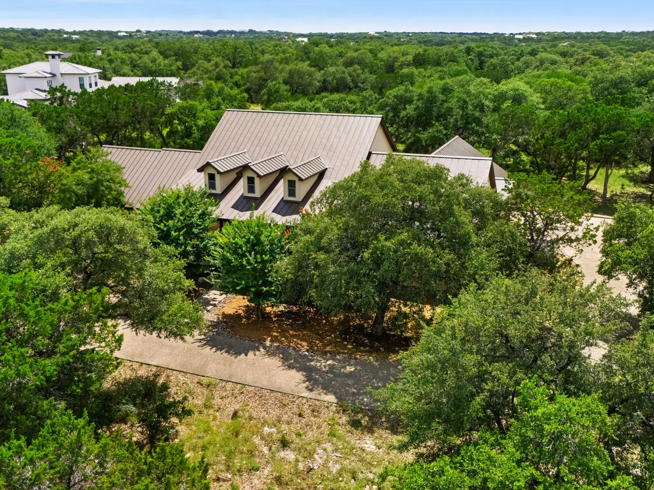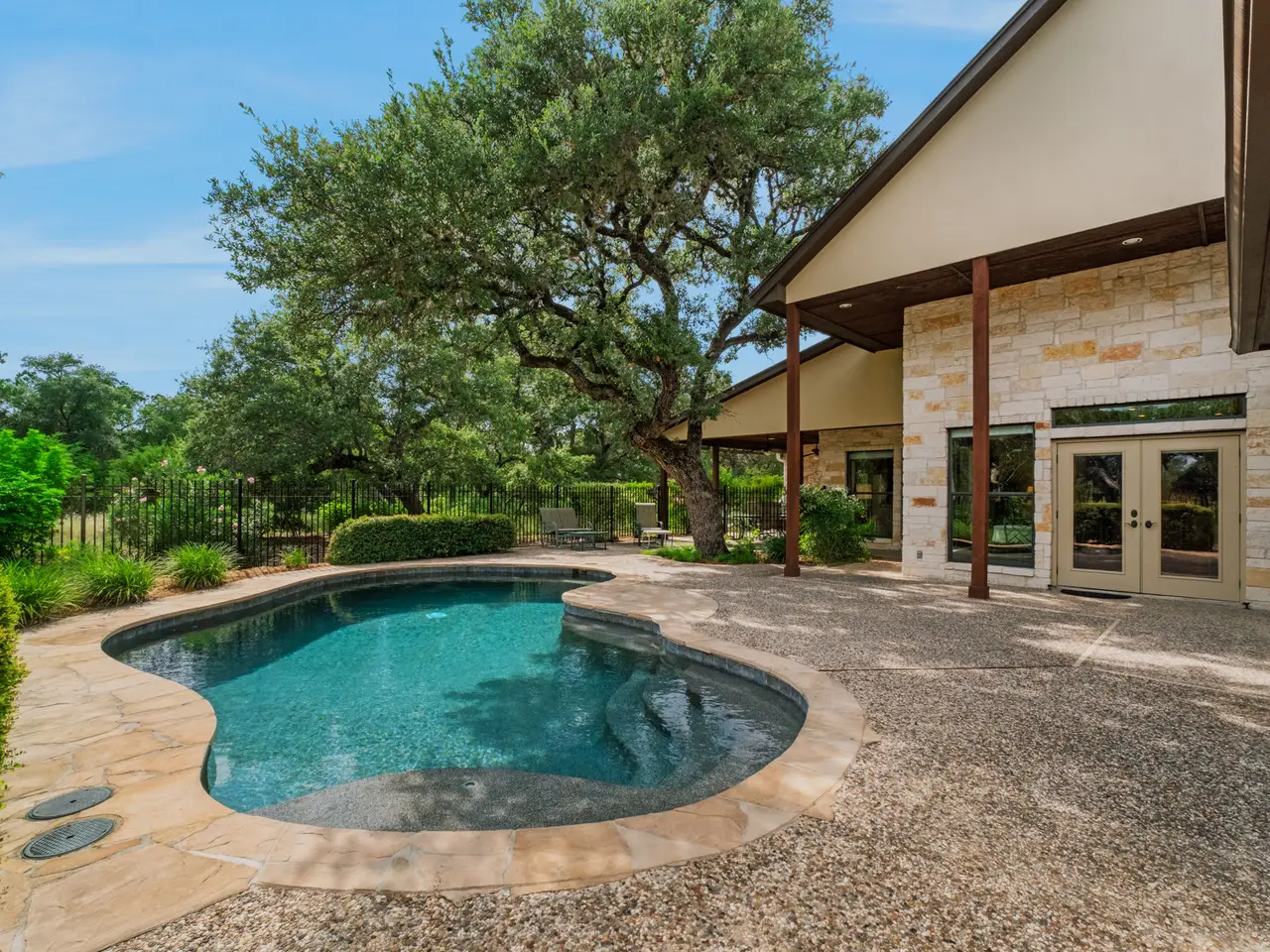 Perfectly situated across from the private Swede Creek Park in the prestigious, guard-gated community of Cordillera Ranch, this immaculate one-story home by Stadler Custom Homes offers 4,826 square feet of thoughtfully designed living space on a 2.77-acre lot with mature trees and serene Hill Country views. Inside, you'll find 5 spacious bedrooms and 4.5 bathrooms, including two primary suites with en-suite baths - ideal for multigenerational living or guests - plus an additional secondary bedroom with its own en-suite. A private study, formal dining room, two living areas, and a versatile flex room provide space for every lifestyle. The oversized chef's kitchen is the heart of the home, boasting a large island with built-in ice maker, walk-in pantry, breakfast area, and extended bar seating perfect for entertaining. Solid-core doors, custom oak flooring, and beautiful finishes reflect the quality of this original-owner home. A large interior storage room with direct access to the 3-car garage and a fully floored attic with permanent stairs offers incredible bonus storage. Step outside to your gated backyard retreat featuring a sparkling swimming pool, spacious covered patio with built-in grill and counter space, and plenty of room to enjoy peaceful outdoor living. Enjoy the unmatched lifestyle of Cordillera Ranch with over 7 miles of nature trails and optional membership to the exclusive Clubs of Cordillera Ranch - including golf, spa, tennis/pickleball, fitness, equestrian center, gun club, and river club. Just 15 minutes from downtown Boerne and 20 minutes to San Antonio, 162 Riverwood offers luxury, privacy, and community - an extraordinary place to call home.