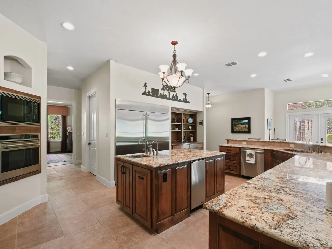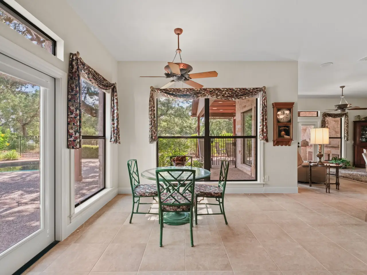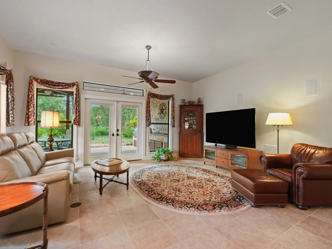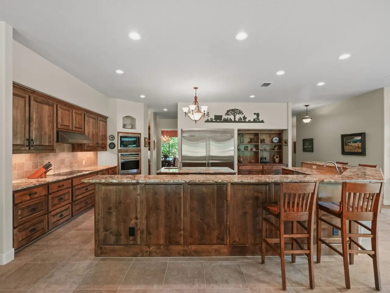 Perfectly situated across from the private Swede Creek Park in the prestigious, guard-gated community of Cordillera Ranch, this immaculate one-story home by Stadler Custom Homes offers 4,826 square feet of thoughtfully designed living space on a 2.77-acre lot with mature trees and serene Hill Country views. Inside, you'll find 5 spacious bedrooms and 4.5 bathrooms, including two primary suites with en-suite baths - ideal for multigenerational living or guests - plus an additional secondary bedroom with its own en-suite. A private study, formal dining room, two living areas, and a versatile flex room provide space for every lifestyle. The oversized chef's kitchen is the heart of the home, boasting a large island with built-in ice maker, walk-in pantry, breakfast area, and extended bar seating perfect for entertaining. Solid-core doors, custom oak flooring, and beautiful finishes reflect the quality of this original-owner home. A large interior storage room with direct access to the 3-car garage and a fully floored attic with permanent stairs offers incredible bonus storage. Step outside to your gated backyard retreat featuring a sparkling swimming pool, spacious covered patio with built-in grill and counter space, and plenty of room to enjoy peaceful outdoor living. Enjoy the unmatched lifestyle of Cordillera Ranch with over 7 miles of nature trails and optional membership to the exclusive Clubs of Cordillera Ranch - including golf, spa, tennis/pickleball, fitness, equestrian center, gun club, and river club. Just 15 minutes from downtown Boerne and 20 minutes to San Antonio, 162 Riverwood offers luxury, privacy, and community - an extraordinary place to call home.