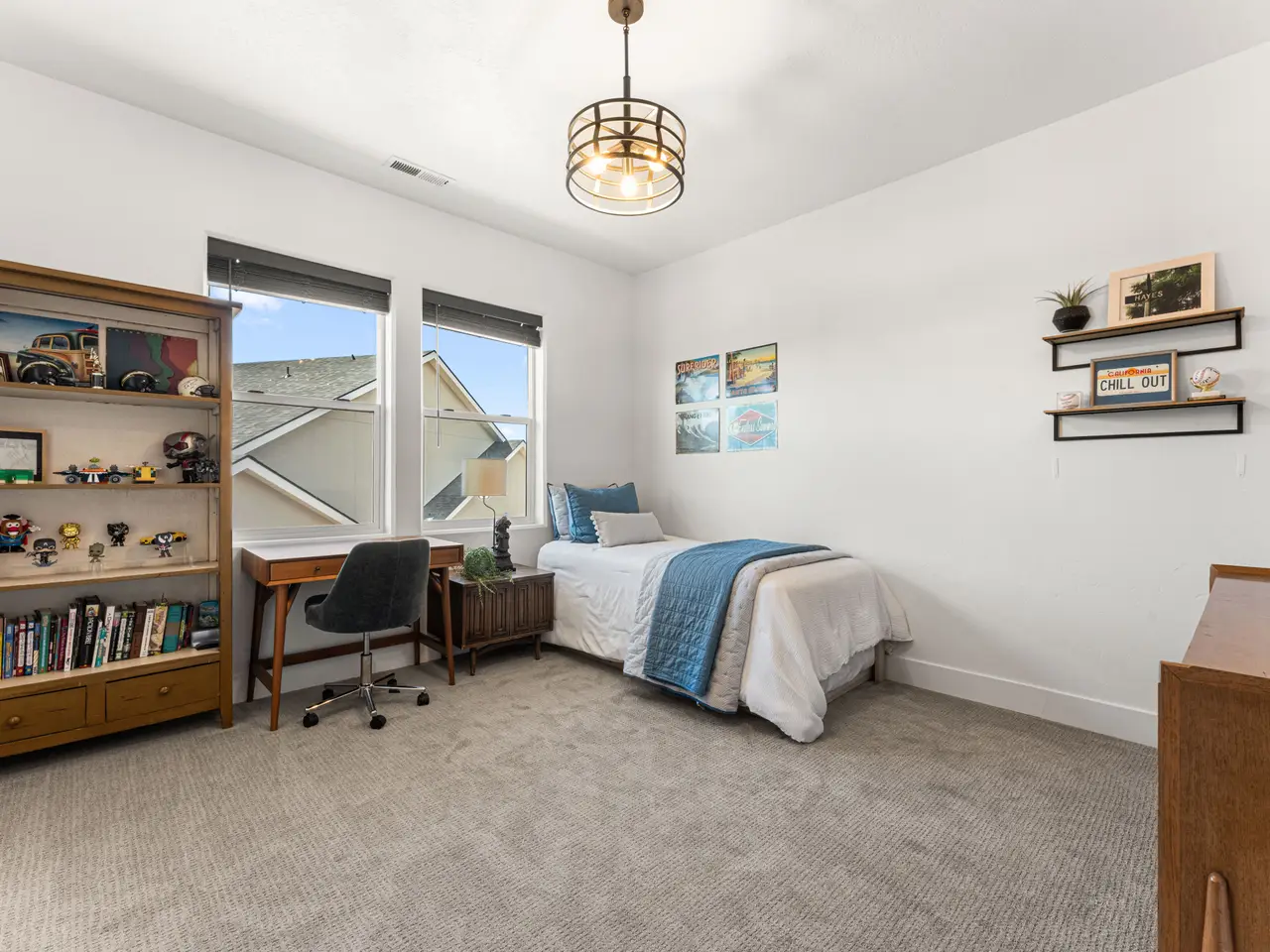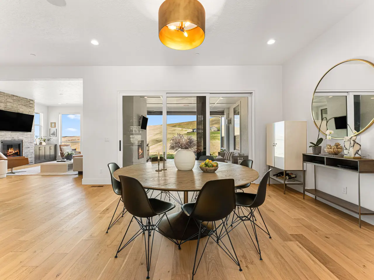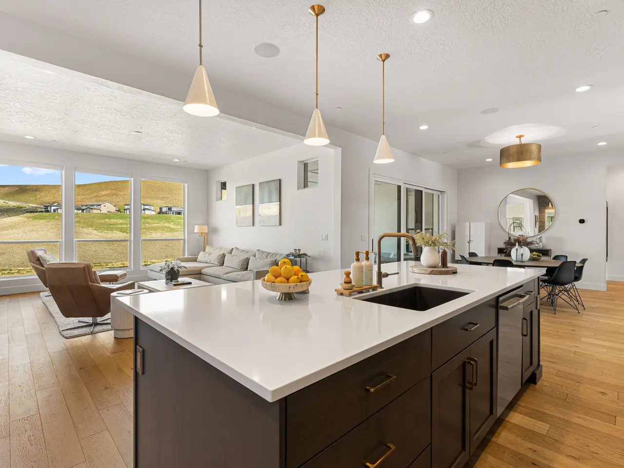 Poised at the end of a quiet cul-de-sac in the prestigious Pinnacle at Harris North community, this architectural masterpiece blends bold modern design with the natural beauty of the foothills. Perfectly positioned on a premier rim-lot, the home captures ever-changing skies & sparkling city lights. Spanning an impressive footprint, this home boasts 6 true bedrooms, dedicated office, expansive bonus room, & generous open-concept living areas. The chef’s kitchen stuns with a dramatic 12-foot island, ceiling-height custom cabinetry, a full-wall tile backsplash, & a premier suite of Bosch appliances. The main-level master is a private sanctuary, lined with picture windows that frame panoramic foothill views. Enjoy a cozy fireplace, spa-inspired en suite bath, & dual walk-in closets. Upstairs, a flexible bonus room with a wet bar and balcony takes advantage of the setting with 4 additional bedrooms to spread out. Enjoy fabulous community amenities with a pool & miles of trails right outside your front door!