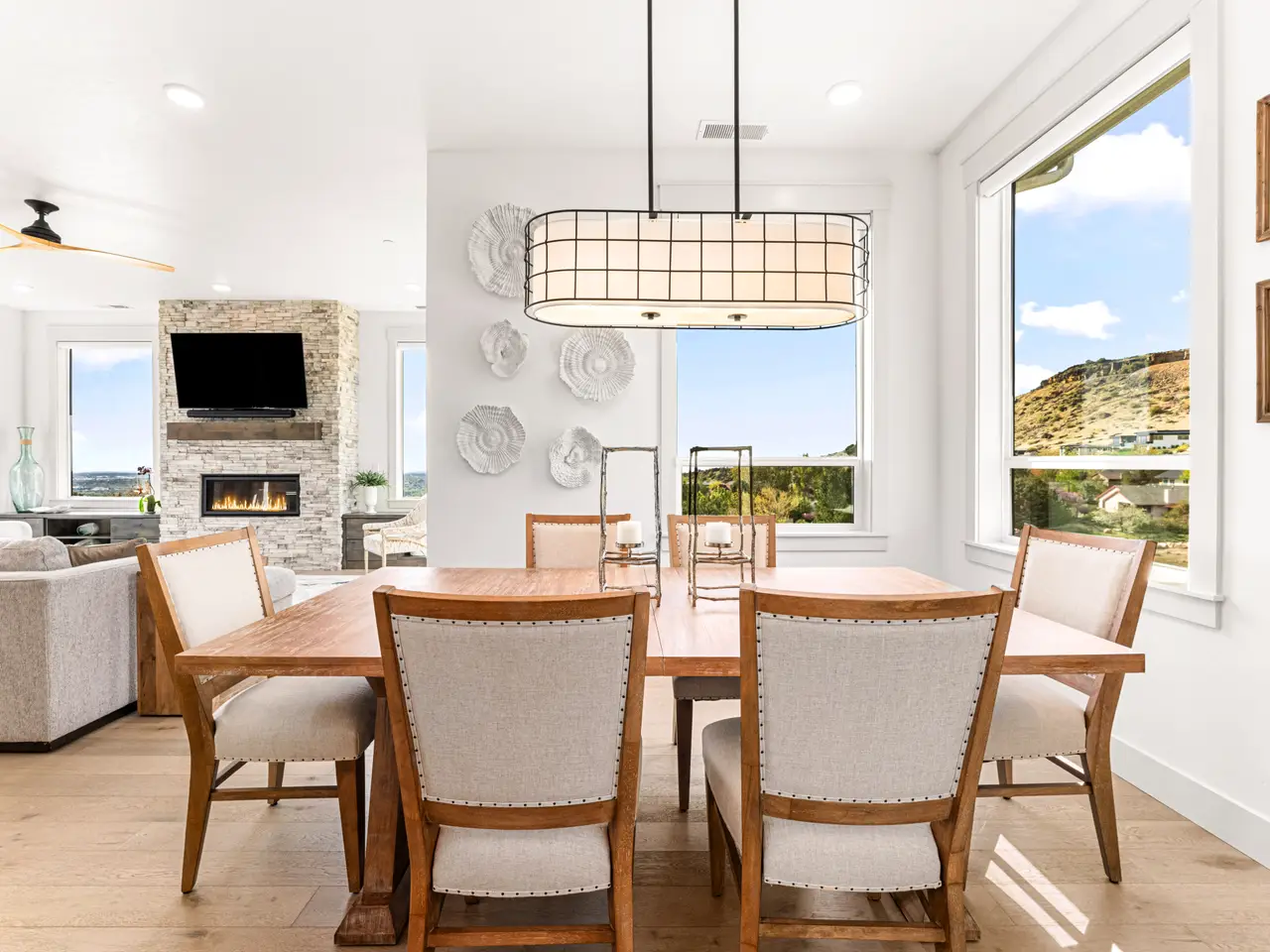 Perched on an exclusive rim-view lot in Boulder Point, this one-owner residence captures sweeping views from Table Rock to Downtown! Designed to live like a single level, the home features a walk-out lower level and a layout that seamlessly blends indoor and outdoor living. The grand foyer opens to an expansive great room with 11’ ceilings, hardwood floors, & walls of windows. The kitchen showcases floor-to-ceiling cabinetry, marbled quartz countertops, and a suite of built-in Wolf & Sub-Zero appliances. The main-level master offers private balcony access & a spa-inspired en suite bath. A fabulous guest suite completes the main level. The walk-out lower level expands the living space with a generous bonus room, additional bedrooms, & direct access to a flat lawn - perfectly suited for a future pool. Additional upgrades include Hunter Douglas automatic blinds, and an invisible pet fence. Residents enjoy access to a clubhouse, swimming pool, neighborhood trails and the best of Boise living!