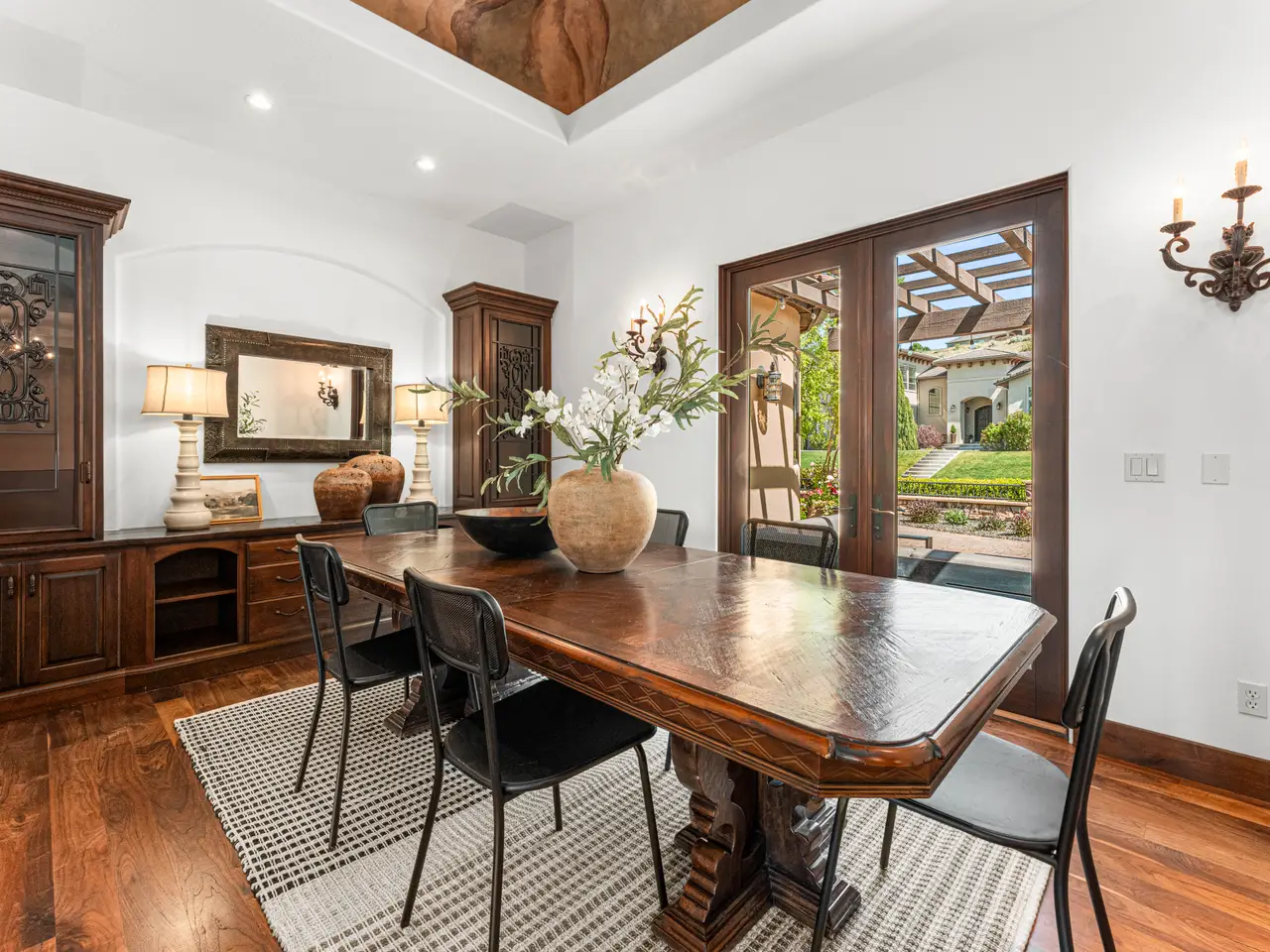 A custom-built one-owner foothills estate with jaw-dropping 360 valley-wide views. Designed to captivate, the grand curb appeal opens to an expansive floorplan, superior materials, and exceptional outdoor living with two houses in one. Surrounded by protected wildlife land, the property has unmatched privacy and a tranquil natural setting. Inside, double-story ceilings lead to a wraparound deck ideal for year-round entertaining. The gourmet kitchen is complete with rich wood cabinetry, granite countertops, and stainless steel appliances. The main-level master features private hot tub balcony access and stunning Table Rock views, while the bathroom features heated floors, dual vanities, and a fabulous dressing room. Additional highlights include a storybook-style library, a curved executive office, spacious bonus room and full gym. The remarkable wrap-around deck features a built-in kitchen, cozy fireplace, and in-ground hot tub while a professional putting green adds a touch of luxury for golf enthusiasts.