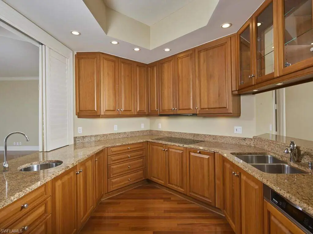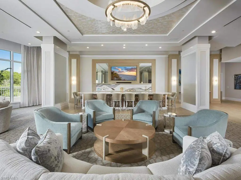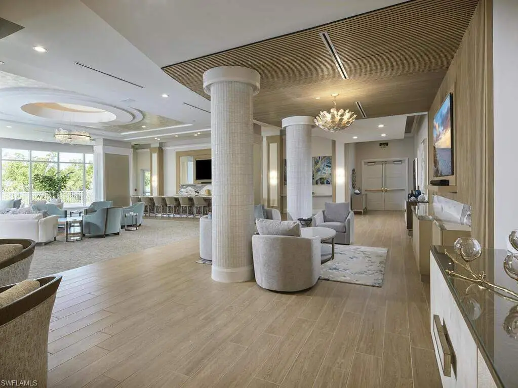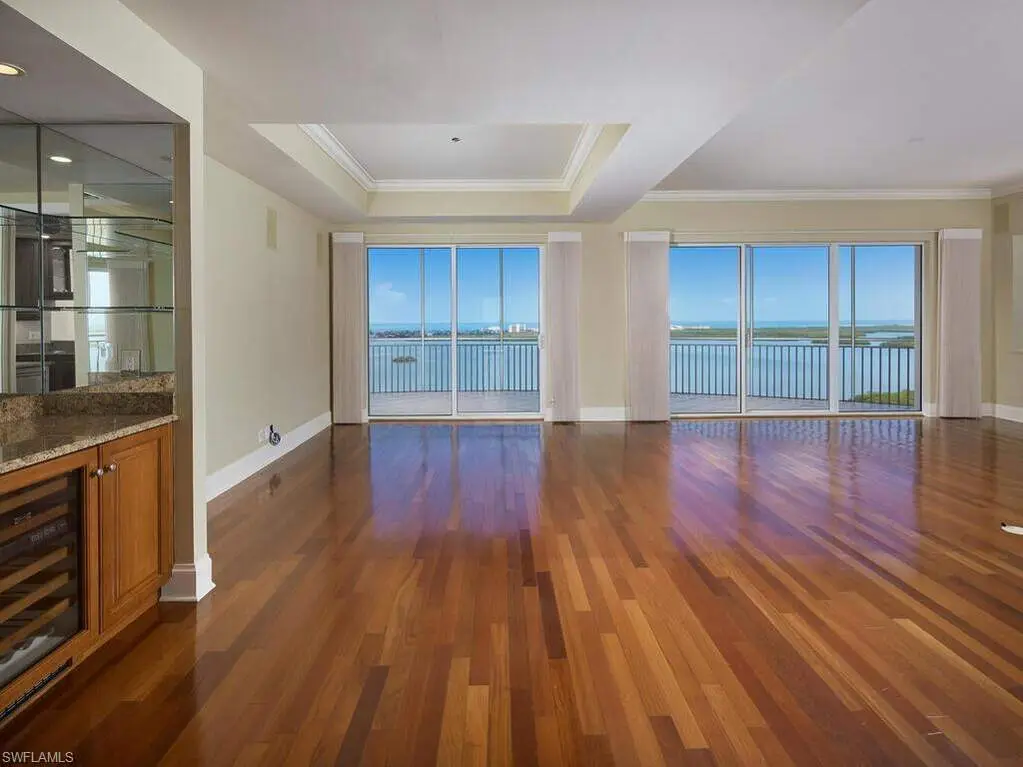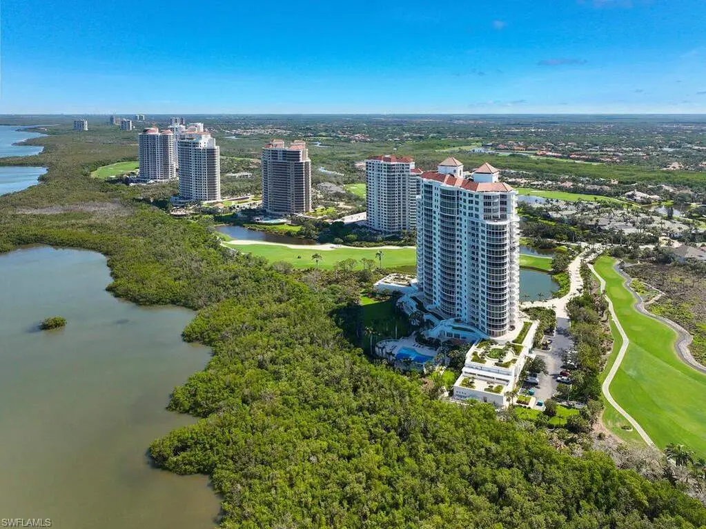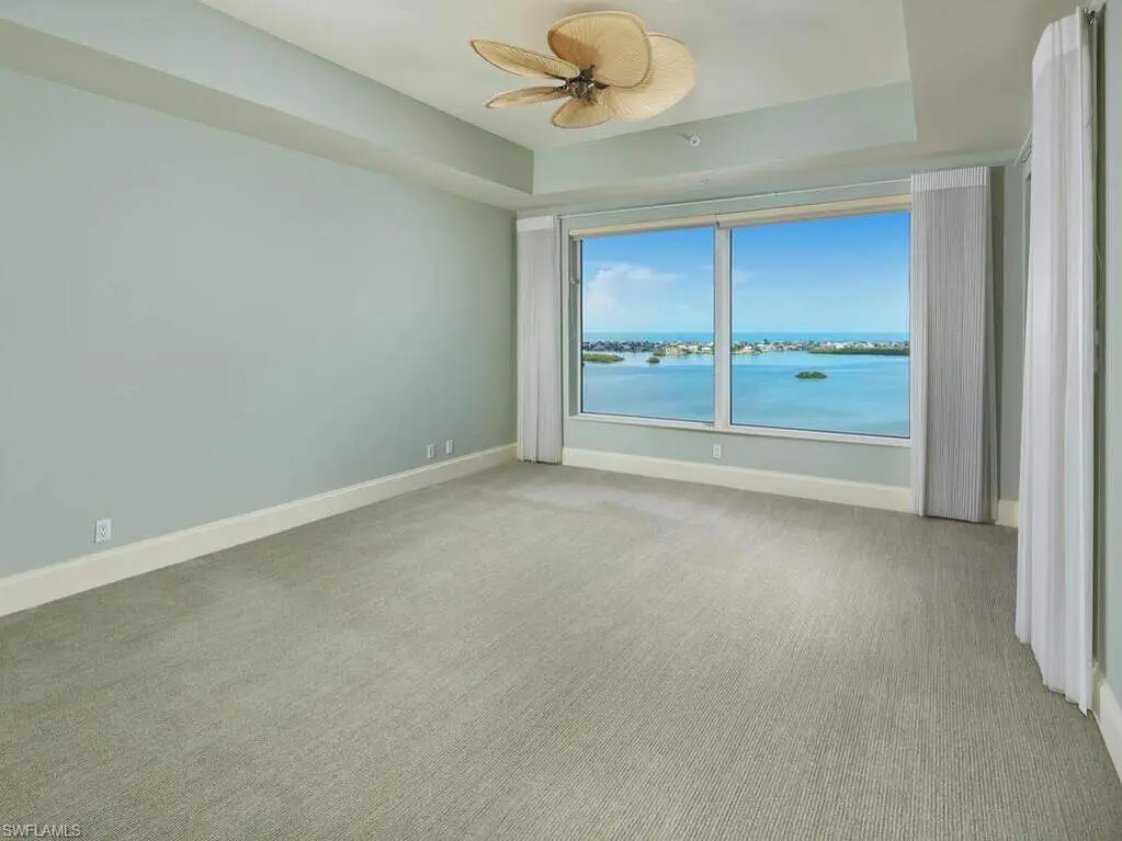 This 17th-floor Horizons residence offers panoramic views of the west and east, featuring three bedrooms, a den, and four full baths. It also includes three deeded parking spaces, a rare luxury in high-rise living, each conveniently located near the elevator lobby. Throughout the residence, timeless luxuries are incorporated, such as elegant wood floors, ten-foot ceilings, and a gourmet kitchen with a Sub-Zero refrigerator, all open to the living spaces. Enjoy the recently updated amenities of Horizons, including a club room, fitness room, pool, spa, stunning lobby designs, on-site management offices, and more. Experience all that Bonita Bay has to offer, including access to a private marina, a community beach facility, and the finest club lifestyle available with the Bonita Bay Club's dining, golf, and tennis facilities.