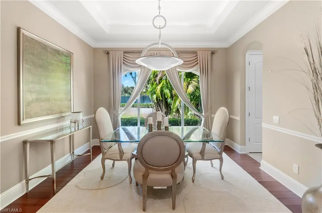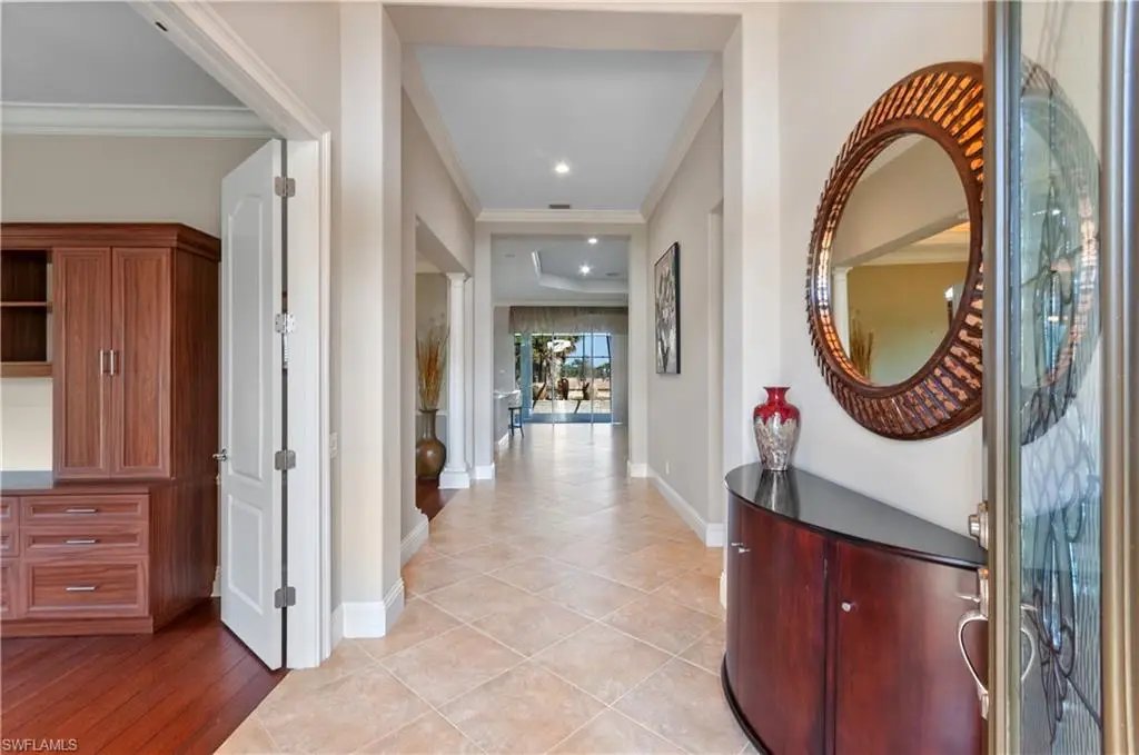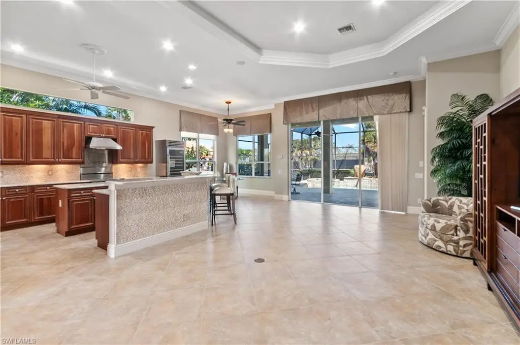 Welcome to Vasari Country Club, a premier bundled golf community where golf membership is included with homeownership and the atmosphere is as warm and welcoming as the Florida sunshine. Known for its beautifully manicured grounds and vibrant, social lifestyle, Vasari offers an exceptional array of amenities including championship golf, tennis, bocce, fitness center, card rooms, and a full calendar of social events - your seasonal playground awaits. This beautifully updated 3-bedroom plus den, 2-bath home is ideally located just steps from the clubhouse. An open-concept floor plan with abundant natural light creates an inviting space that's perfect for entertaining or relaxing with friends and family. Elegant crown molding, new quartzite countertops, and luxury appliances including Viking, Bosch, and Fulgor Milano add both style and function. The kitchen also features a wine refrigerator and dedicated ice maker. A glass-front entry door welcomes you into a home with custom built-in cabinetry in both the den and the primary suite's walk-in closet. The spacious 2-car garage includes an epoxy floor for a polished finish. Step outside to your own private retreat, where a sparkling pool and spa overlook the golf course and lake - offering the perfect backdrop for stunning sunset views and evening gatherings under the Florida sky. A new roof provides added peace of mind. Some rooms have been virtually staged; empty room photos are also included. Dive into everything this premier bundled golf neighborhood has to offer - lounge at the resort-style pool with poolside service, then unwind or connect with friends at the lively clubhouse, featuring the popular Taverna bar and restaurant. The main clubhouse also boasts outdoor terrace dining overlooking the 18th tee, along with a 20-seat bar and casual grill for relaxed evenings and social gatherings. Perfectly located near sandy Gulf beaches, downtown Naples, and RSW airport, this property offers convenient access to world-class dining, shopping, the arts, walking and biking trails, and more - everything you need to live the Southwest Florida lifestyle to the fullest!