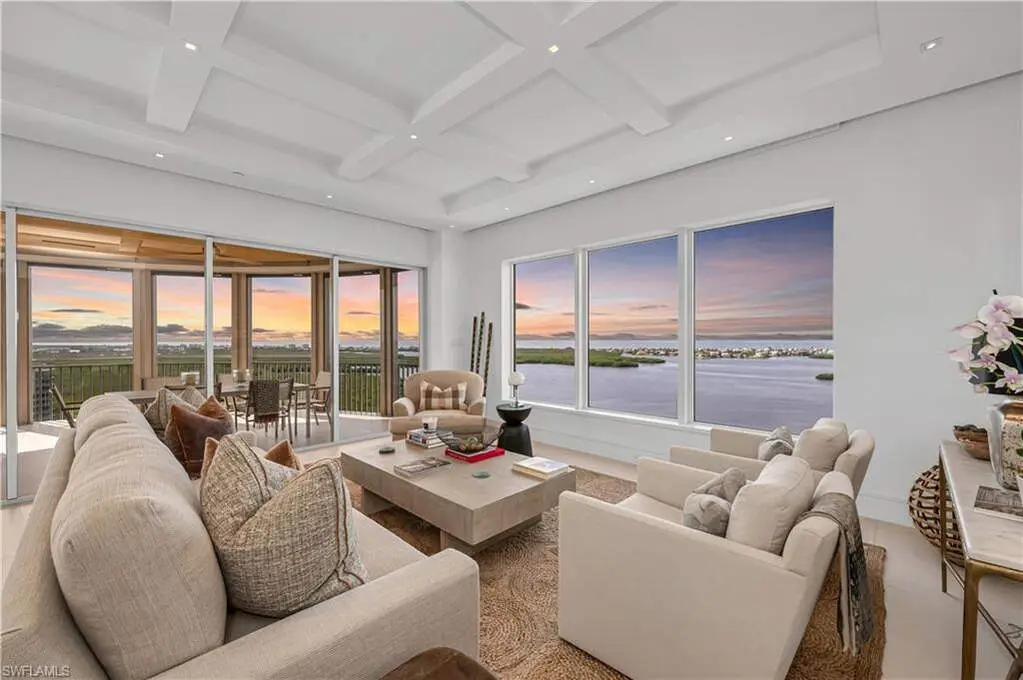 An extraordinary, rarely available total remodel-masterfully crafted by a premier Nantucket builder-this residence embodies sophistication and refinement at every turn. Sleek 36" porcelain tile flooring sets the tone, complemented by an abundance of recessed lighting and linear air diffusers that create a modern, gallery-like ambiance. The chef's kitchen is a showpiece, featuring waterfall quartz countertops, a Sub-Zero refrigerator and freezer tower, Wolf ovens and cooktops, and designer fixtures that exude elegance. Spa-inspired baths showcase extraordinary finishes, with a dramatic Gulf-view walk-in shower, a freestanding soaking tub, and bespoke custom closets that marry beauty with function. From the 18th-floor, south-facing lanai, enjoy panoramic vistas that sweep across the skyline to Naples and capture magnificent Gulf sunsets. A true extension of the living space, the oversized lanai is appointed with motorized screens and shutters, as well as a hand-crafted cypress ceiling-an exquisite private retreat with unmatched views, unobstructed by neighboring towers. Designed to live like a private estate yet with all the ease, safety, and security of a luxury high-rise, this 4,482-square-foot residence (as per developer's brochure) welcomes you through a dramatic gallery entrance opening to walls of glass and endless Gulf horizons. With three ensuite bedrooms, a powder bath, and a private study overlooking the water, the layout is both functional and indulgent. Additional features include soaring ceilings, electric storm shutters, two premium second-level parking spaces, and a private storage unit. Arrive at Horizons through a tree-lined, paver drive leading to its elevated tower presence. Residents enjoy a host of refined amenities, including newly redesigned social and card rooms, a resort-style geothermal pool and spa (cooled in summer, heated in winter), fitness center, massage room, and two guest suites for family and friends. The experienced on-site manager ensures seamless service, while terraces throughout the tower perch dramatically over Estero Bay-where dolphins and wildlife create a living panorama. Set within the prestigious gates of Bonita Bay, residents enjoy a lifestyle unlike any other. The community's brand-new private beach club on the Gulf of Mexico is easily accessed via resident shuttle. Twelve miles of walking trails. three parks. Full-service 400-slip marina. Optional membership in the Bonita Bay Club offers access to five championship golf courses, 15 pickleball courts, 12 tennis courts, and a 29,000-square-foot state-of-the-art fitness center featuring Pilates, spin, TRX, and more. The full-service spa includes massage, facials, hair, nail treatments. When it comes to luxury towers in Southwest Florida, Horizons Residence 1801 at Bonita Bay stands alone-an incomparable offering for the most discerning buyer seeking the perfect blend of sophistication, lifestyle, and Gulf-front grandeur.