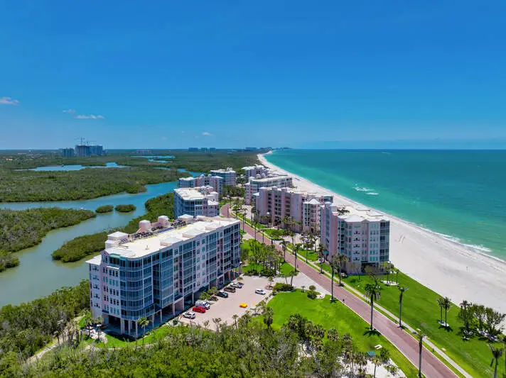 Gulf-front serenity meets elevated coastal living in this beautifully maintained condo at the sought-after Barefoot Beach Club in North Naples. This rare bayside building location provides sweeping, unobstructed views of the Gulf of Mexico and the unique luxury of west-facing balconies-perfect for enjoying picture-perfect sunsets. Inside, this 2-bedroom, 2-bath retreat features a bright and open layout, warm hardwood floors, and impact-resistant windows complemented by electric storm shutters. The screened lanai brings the soothing sound of the surf indoors and offers front-row seats to spectacular Gulf views. The kitchen is equally impressive, showcasing rich wood cabinetry, sleek white countertops, stainless steel appliances, and a built-in wine cooler-all framed by panoramic Gulf vistas. The spacious primary suite offers private access to the lanai, a generous walk-in closet, and a spa-inspired bath with dual vanities, a soaking tub, and a glass-enclosed shower. Residents enjoy access to a brand-new clubhouse with a state-of-the-art fitness center and resort-style pool. Barefoot Beach Club also offers over 3 miles of pristine shoreline, two pools and spas, a staffed gatehouse, and on-site management. Membership to the Club at Barefoot is optional and includes tennis, dining, boat slips, and beachside chair, food, and beverage service. Don't miss this incredible opportunity-bring your buyers to experience coastal luxury at its finest in Barefoot Beach Club.