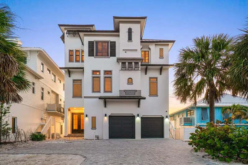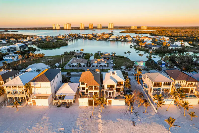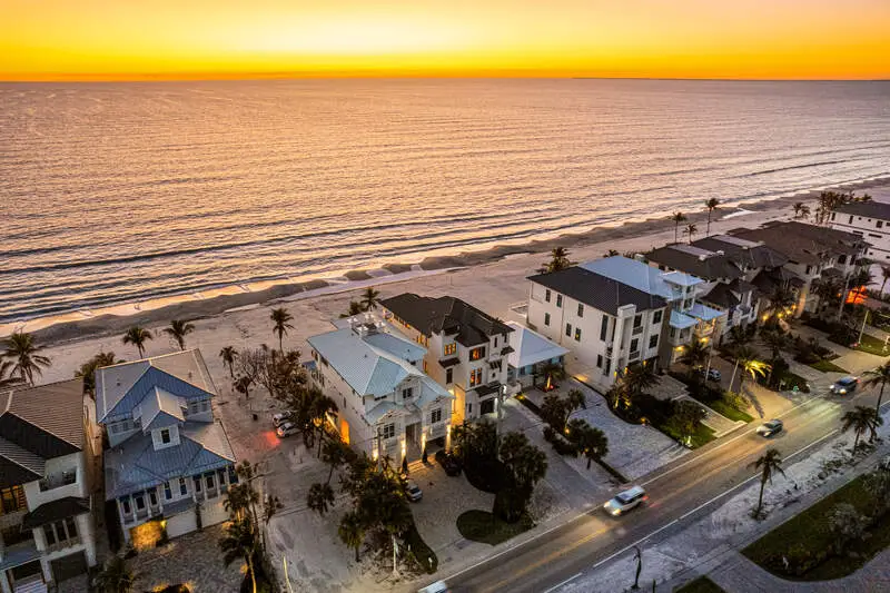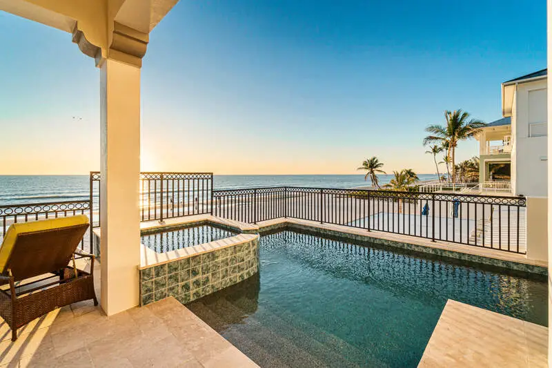 Stunning and newer-built beachfront home with breathtaking views of the Gulf, ideally situated on the highly coveted Bonita Beach. With unobstructed views of the turquoise waters and pristine white sands, this home is a true coastal gem. Built like a fortress, this home features all concrete-block construction and brand-new hurricane impact windows and sliders. Perfect for entertaining, the spacious open floor plan includes 4 bedrooms, 5.5 bathrooms, an expansive upstairs bonus room, and a versatile ground-floor flex space. Step outside to a private backyard oasis, complete with a RARE elevated pool and spa, a summer kitchen, and panoramic Gulf views. Inside, you'll find luxurious finishes throughout, including custom wood-paneled coffered ceilings and a seamless blend of hardwood and travertine tile flooring. The chef's kitchen boasts granite countertops, an oversized island, light colored custom cabinetry, an eat-in area, and a breakfast bar perfect for casual dining. Adjacent to the kitchen is a custom bar area with a built-in wine cooler, wet bar, and additional bar seating-ideal for entertaining guests. The expansive primary suite offers a serene retreat with sweeping Gulf views, a private balcony to enjoy spectacular sunsets, and a spa-like bathroom with dual vanities, a frameless glass shower, and a separate soaking tub. The upper-floor bonus room is a versatile space, complete with an ensuite bathroom, wet bar with beverage cooler, and an open-air balcony-perfect for a media room, office, or additional living area. Additional features of this home include a private elevator and a smart lighting system. Close to several fantastic restaurants and only a 10-minute drive to Mercato and the Promenade, with Waterside Shops, Coconut Point, Naples 5th Ave, and the International Airport nearby. Live the ultimate coastal lifestyle with sweeping views of the Gulf-this is luxury living at its finest!