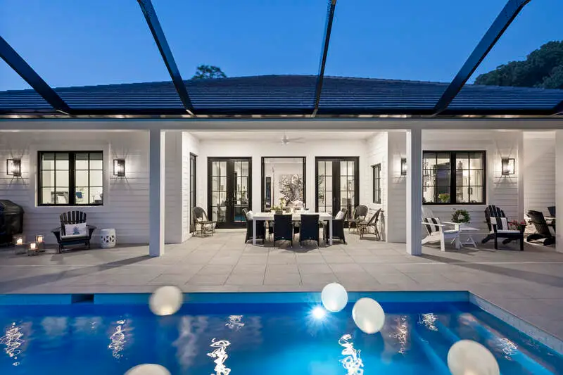 Tucked away in a serene, storybook setting along the Imperial River, this rare property offers a captivating blend of timeless Old Florida charm and elegant modern living. Built in 2023 by renowned Cotter Construction of Naples, the main residence sits on .51 acres and meets current building codes and flood elevation requirements. Also sharing the grounds is a delightful riverside bungalow, perfect as a guest house, studio, or private retreat. This one-of-a-kind location offers front-row views of manatees, dolphins, sea otters, and soft-shell turtles from the new Hardie Plank dock, and it's just a short stroll to the heart of Bonita Springs-where you'll find inviting restaurants and the laid-back ambiance of historic Florida. Featured in Gulfshore Life Magazine (November 2024), the main home showcases exceptional craftsmanship, high ceilings, and beautifully finished architectural details. A series of 9-foot French doors seamlessly connect expansive indoor living and dining spaces to a stunning "picture window" screened pool area-framing views of the lush landscape and the tranquil river beyond. At the heart of the home, a sophisticated chef's kitchen is equipped for entertaining, designed to complement the open-concept layout while offering both functionality and style. The private primary suite includes a spacious bedroom, luxurious bath, walk-in closet, and a charming window seat overlooking native flora and fauna. Separated for privacy one will find an inviting guest bedroom with ensuite bath, cozy den and lovely powder room. A large additional space is currently used as an art studio with a half bath-could easily be converted into another guest suite with full bath. The attached two-car garage includes generous storage to meet every need. Nestled closer to the water's edge under a canopy of trees draped in Spanish moss, the original cottage offers a quiet escape, with a living/dining area, bedroom, and full bath. This property is more than a home-it's an experience. Offering the peaceful beauty of riverfront living with the quality and comfort of modern construction, all just moments from the charm of downtown Bonita Springs. This is truly a place to slow down, unwind, and connect with nature in style.