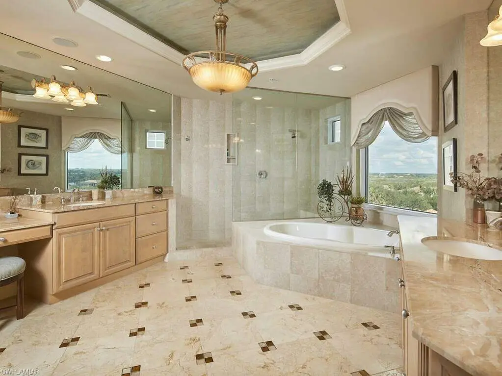Enjoy the perfect vantage point above Estero Bay looking to the Gulf beyond from Azure 701. Three bedrooms plus den, three full and one-half baths, and an oversized private enclosed two-car garage below. Stunning decor and finishing touches by renowned Gary David Designs, generous living spaces with living and family rooms, ample balcony spaces, private elevator lobby with secured elevator. Gourmet kitchen with gas cooktop, Wolf double wall over, wet bar with wine refrigerator. Enjoy the Azure lifestyle with gas cooking in both the kitchen and grille on your balcony. Experience all that Bonita Bay offers with access to a private marina, community beach facility, the finest club lifestyle available with the Bonita Bay Club's dining, golf, tennis, pickleball, fitness and spa facilities.