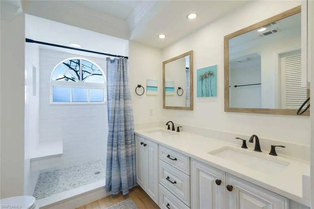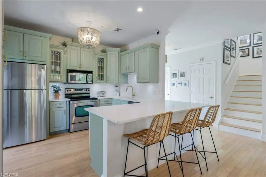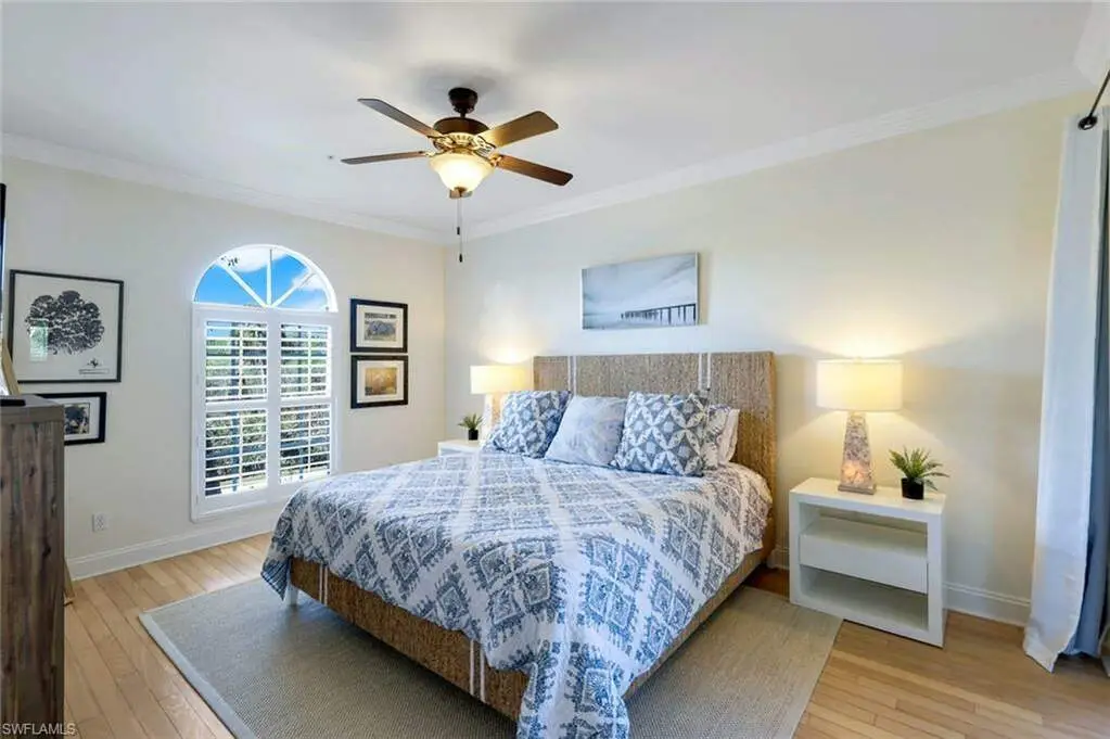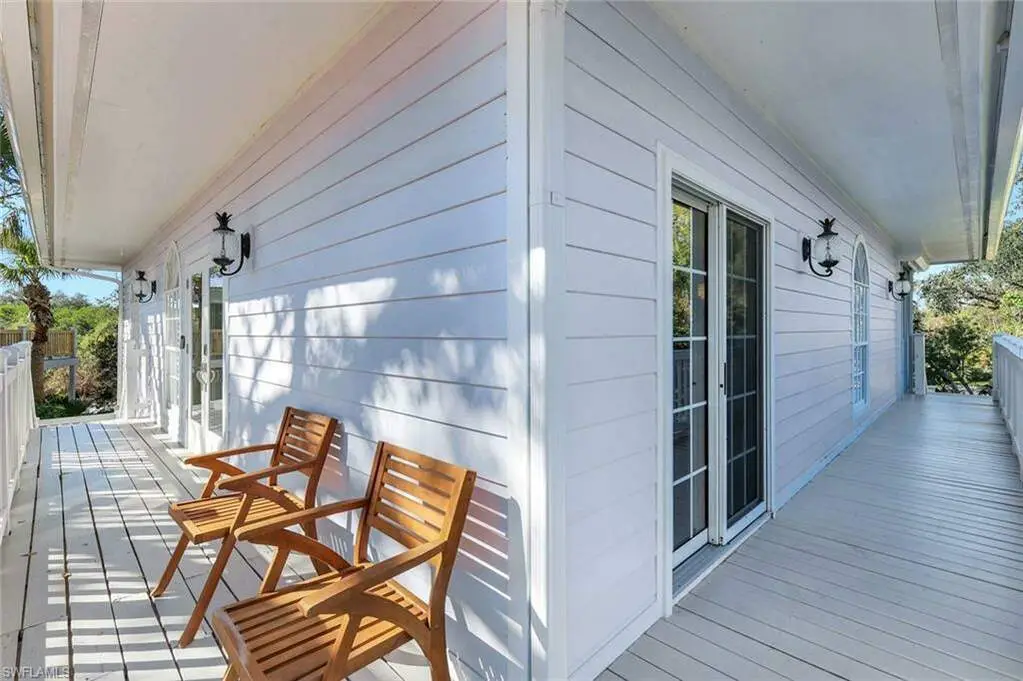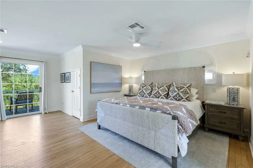 Nestled in the serene and tropical setting of Bonita Bay's Cracker Cove, this charming two-story home exudes tranquility and relaxation. Designed for comfortable living and entertaining, the property boasts a large L-shaped open deck, metal roof, 2 car garages, paved driveway, electric hurricane shutters and is situated on a quiet cul-de-sac. The open floor plan features wood flooring throughout, plantation shutters, screened-in lanai offers double sliding doors to welcome the outdoors inside filling the home with abundant natural light. The kitchen features SS appliances, breakfast bar, quartz countertops, pantry, with additional walk-in storage room, and is open to the dining and living areas. The inviting primary suite offers an elegant bath, a sitting area with extra room for a desk, a bonus storage closet and an outdoor sun deck to bask in the warm sunshine. The split floor plan offers total privacy for guests. Access to the close by community pool and spa further enhances the relaxed lifestyle this home offers. There is so much to enjoy at Bonita Bay including a private beach club, beach shuttle, walking/jogging trails, dog park, marina, waterfront restaurant, tennis, and golf with separate membership purchase and so much more creating a seamless blend of luxury and leisure. Come and enjoy life at Cracker Cove!