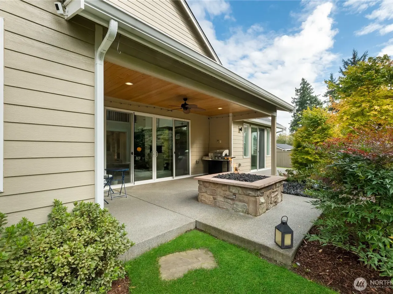 Covered patio with gas fire pit