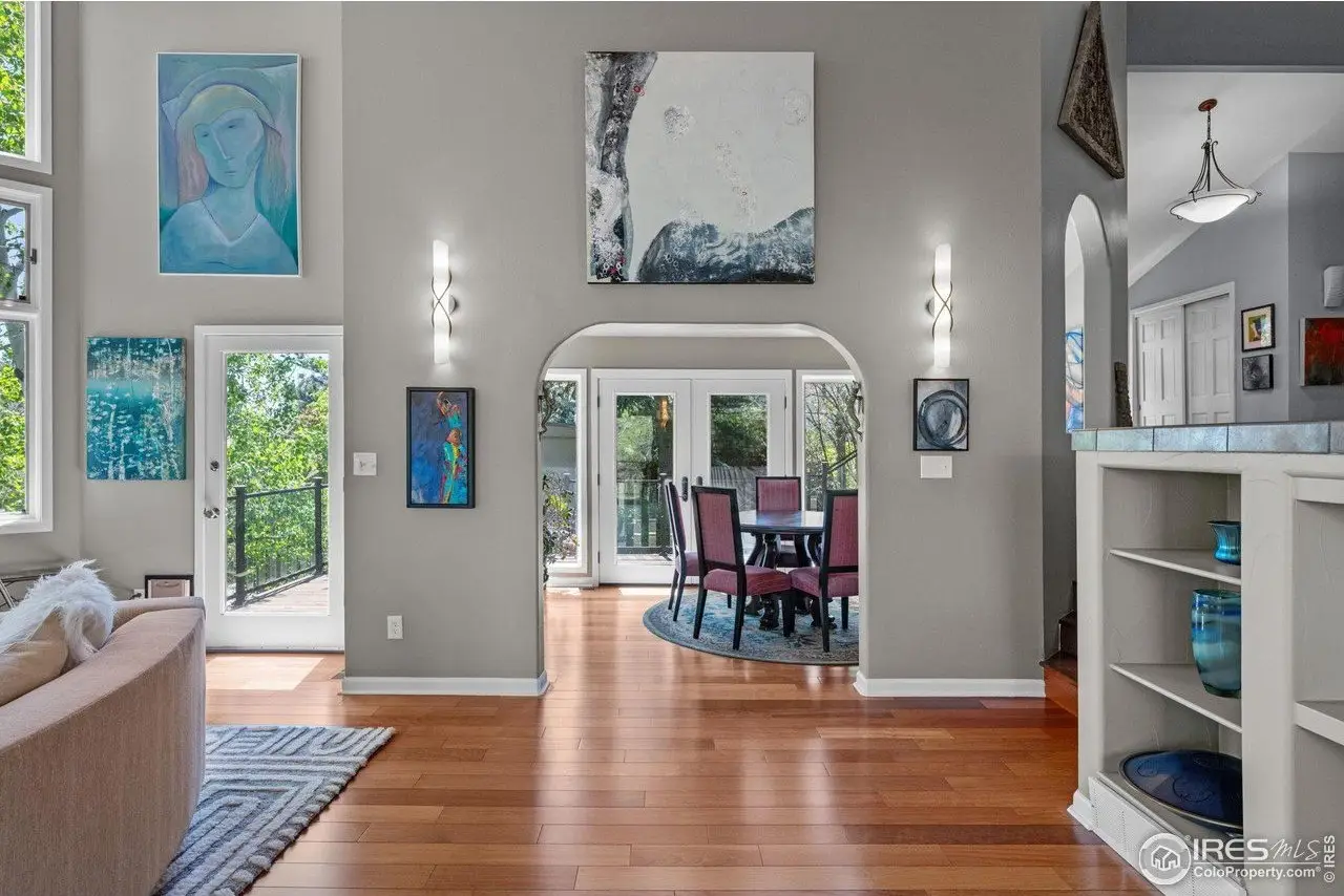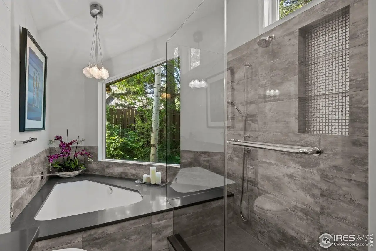Bordering Boulder's scenic greenbelt, this contemporary European-inspired residence offers exceptional privacy and immediate access to nature. Tucked into a coveted northwest Boulder enclave, the home is surrounded by mature trees, native aspen, and curated gardens that create a sense of seclusion and serenity. Impeccably maintained, the property includes a walk-out lower level with private entry which is perfect for a guest suite, in-law apartment, or additional rental unit. Even more there is a fully equipped, income-producing ADU attached to the oversized detached garage. Indoors, the light-filled layout features clean architectural lines, open-concept living spaces, and an ultra-modern kitchen, all in pristine condition. Multiple sun-drenched patios and decks foster a seamless connection to the outdoors, where expansive views, lush landscaping, and total privacy elevate daily living. Step directly off the property to connect with upper and lower Wonderland Lake trails, your private gateway to open space, fresh air, and endless recreation. A private tennis and swimming facility is also just a short walk away. A rare offering that blends design, function, and nature in perfect balance this is Boulder living!Value proposition, the property includes a lovely lower level ADU with walk-out access and privacy. Large one bedroom with full kitchen and very nice and bright living space. Ample parking and based on Comps with ADU's in the immediate market, annual gross income comps at $2.00 per square per year. Beside the ADU, the garage has a studio, office or flex space. Lovely clean and bright, comfortable Call agent for more info.
