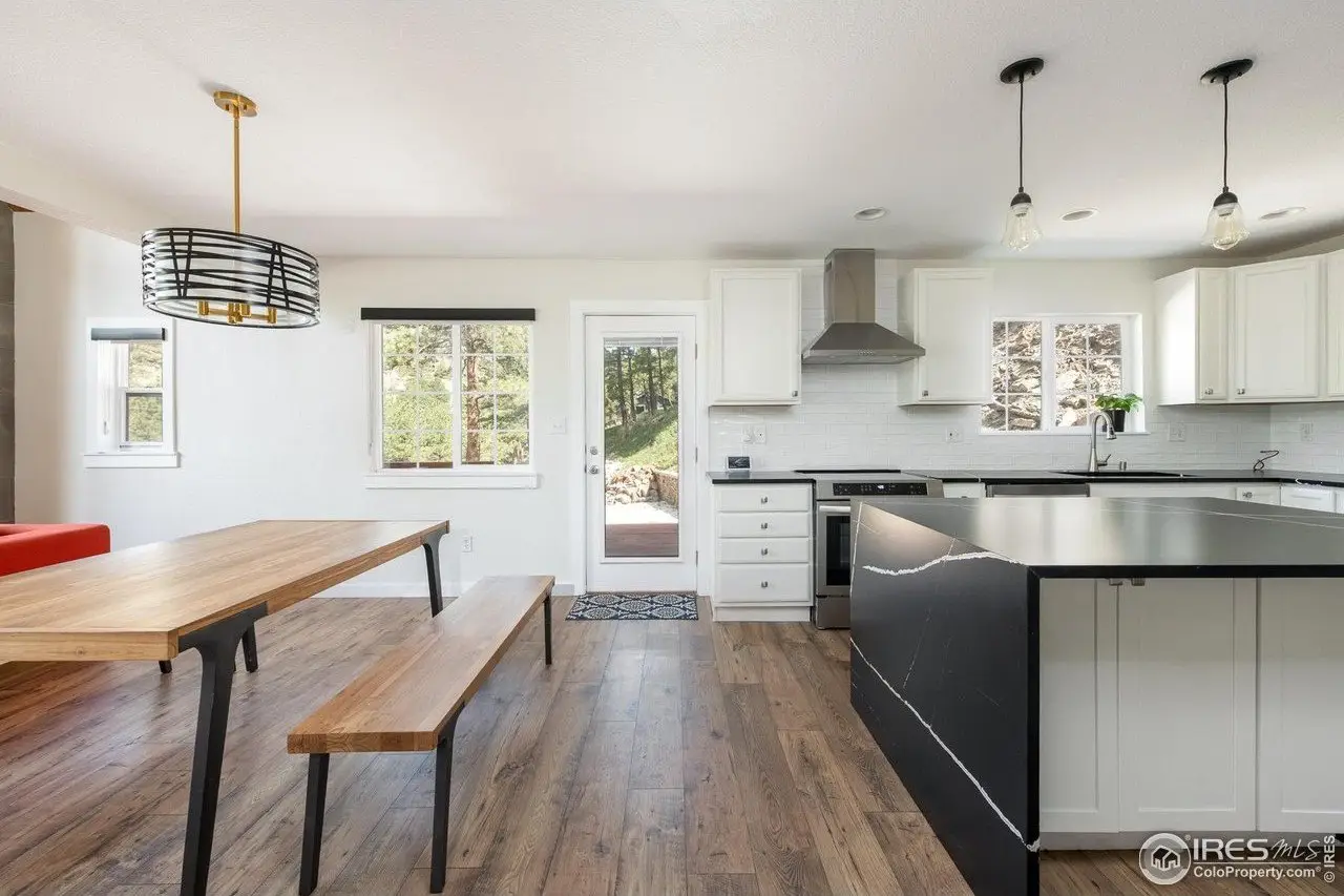 Located in the Pine Brook Hills neighborhood. Escape to the mountains and still be 10 minutes to downtown Boulder and a short walk to hiking trails. Completely remodeled with 20 foot ceilings in the living room. Main floor has a large living area, dining room, kitchen, bedroom and bath. Second floor has a primary suite, with a private patio as well as another bedroom and bath. Step outside to enjoy a clean, low-maintenance backyard with crisp white rock landscaping and a flat side yard for relaxing or entertaining. This move-in ready gem offers comfort, style, and peace of mind in one of Boulder's most desirable neighborhoods. Recent upgrades (all within the last two years) include: solar panels, new driveway, new electrical panel, motorized blinds throughout the house, new furnace, new water heater, new induction stove, new entrance downstairs for ADU or mother-in-law suite, new shelving throughout the house, new radon mitigation system, updated HVAC ventilation system, new ceiling fans throughout the house, Ring doorbell system, new front yard lighting.