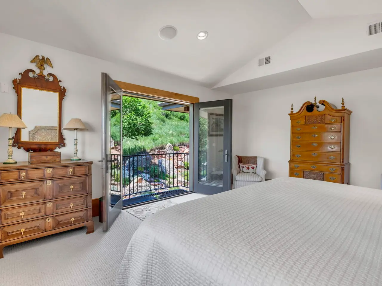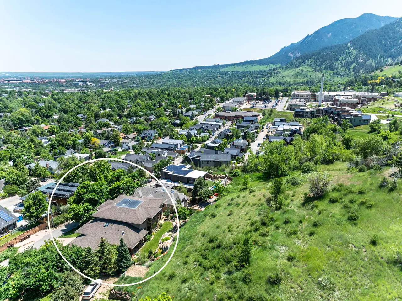 Is there a better location in Boulder? Backing to Sanitas open space, a few hundred feet to the trailhead, just blocks to Pearl Street or North Boulder Park. Quiet, private, and tucked away in an exclusive west Boulder enclave. Exceptional design and construction with this one-of-a-kind custom home. Views in all directions - city lights, Flatirons, open space! True chef's kitchen with 60-inch Wolf range and double ovens. Captivating primary suite with Juliet balcony opening to the foothills! Primary bath with freestanding tub with views, steam shower, heated floors. Stunning gardens and landscape blend into the adjacent hillside. Shaded back patio ideal for al fresco dining surrounded by nature. Five bedrooms total with four bedrooms upstairs. Two separate studies - one on the main floor and one on the walkout lower level. Impressive temperature controlled wine cellar. Oversized garage with room for the largest vehicles and all the outdoor gear. This home is in exceptional condition and all ready for its very fortunate new owners!