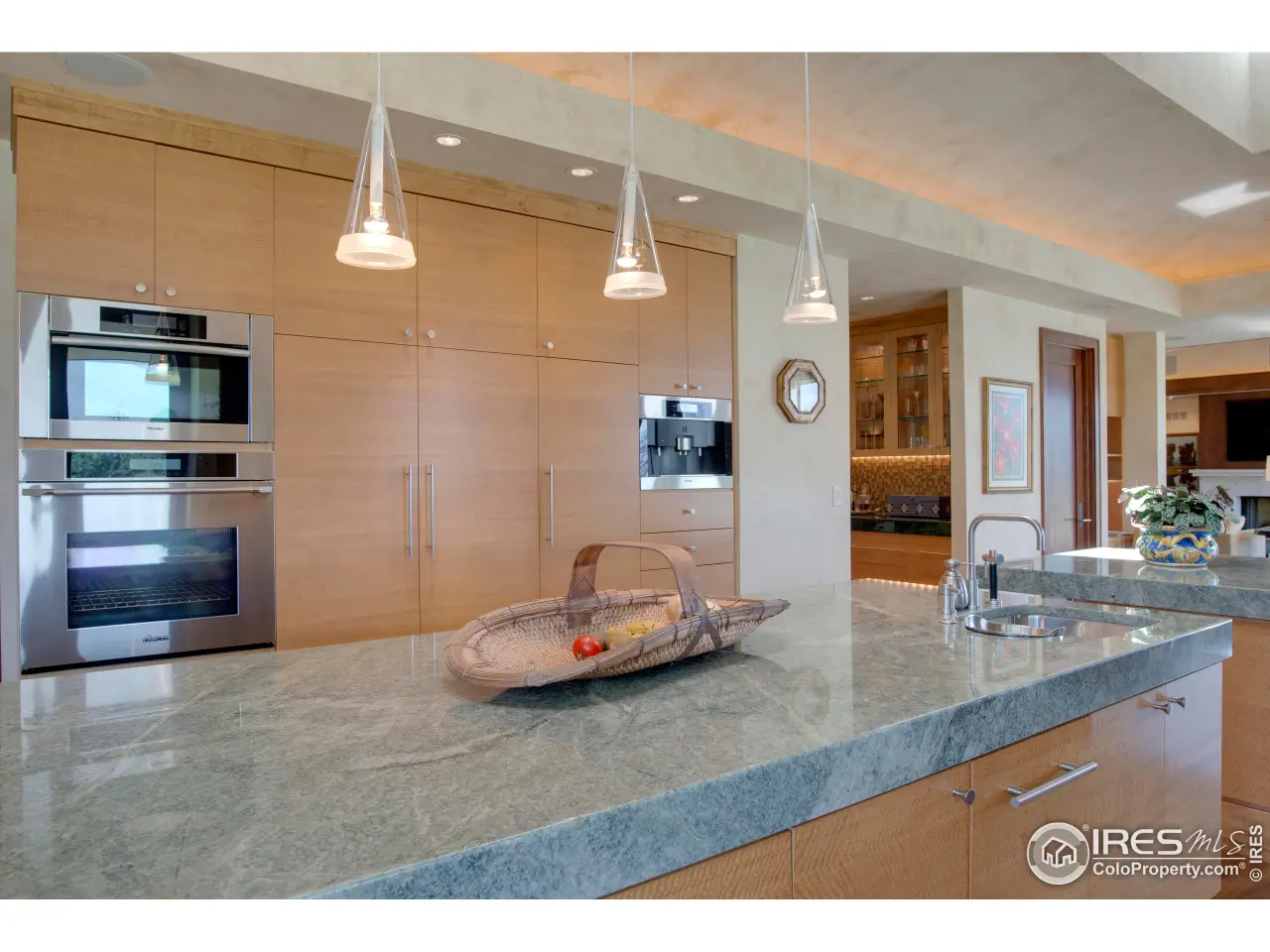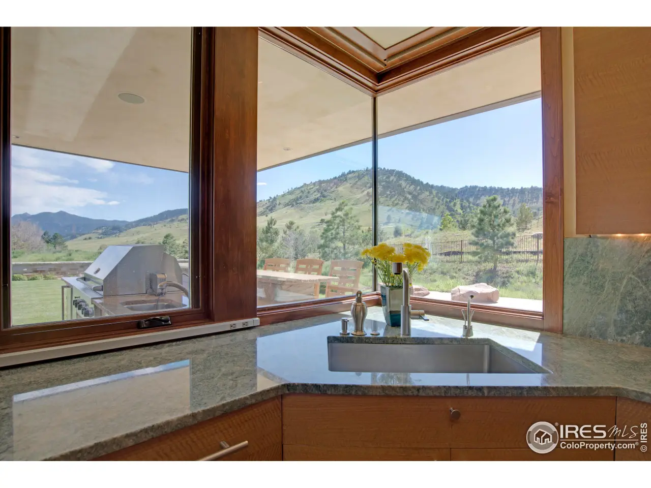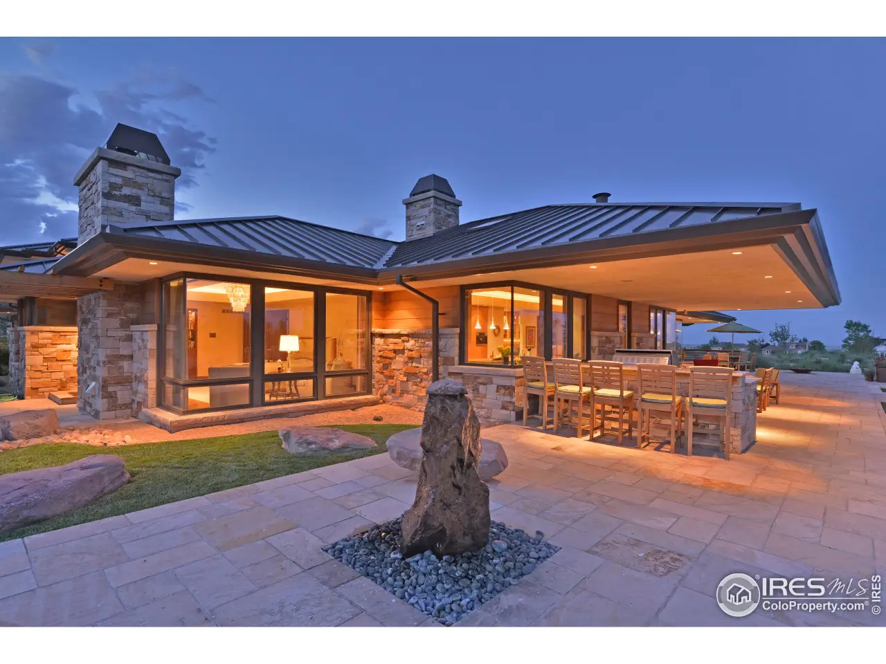 One of the premier residences on Colorado's Front Range. Inspired five-acre setting nestled against the foothills yet just blocks from restaurants, bakery, coffee shops. Sweeping views throughout this dramatic 8,700 square foot home. No expense spared - built by Tim Harrington, arguably the preeminent builder of Boulder's finest homes. Four limestone fireplaces, custom millwork, venetian plaster walls, travertine and walnut floors, and state-of-the-art systems throughout. Chef's kitchen with double islands, walk-in and butler pantries, Wolf and Sub-Zero appliances, Miele coffee. Exquisite primary retreat with postcard views, striking fireplace, onyx and marble bath. Resort-like amenities redefine outdoor luxury - 90-foot lap pool and hot tub surrounded by 100-foot-long stone deck, al fresco Viking kitchen, water features, terraced lawns, fire pit. Three-car garage plus six-car show garage. Blending naturally with the adjacent foothills - gated and private for tranquil seclusion.