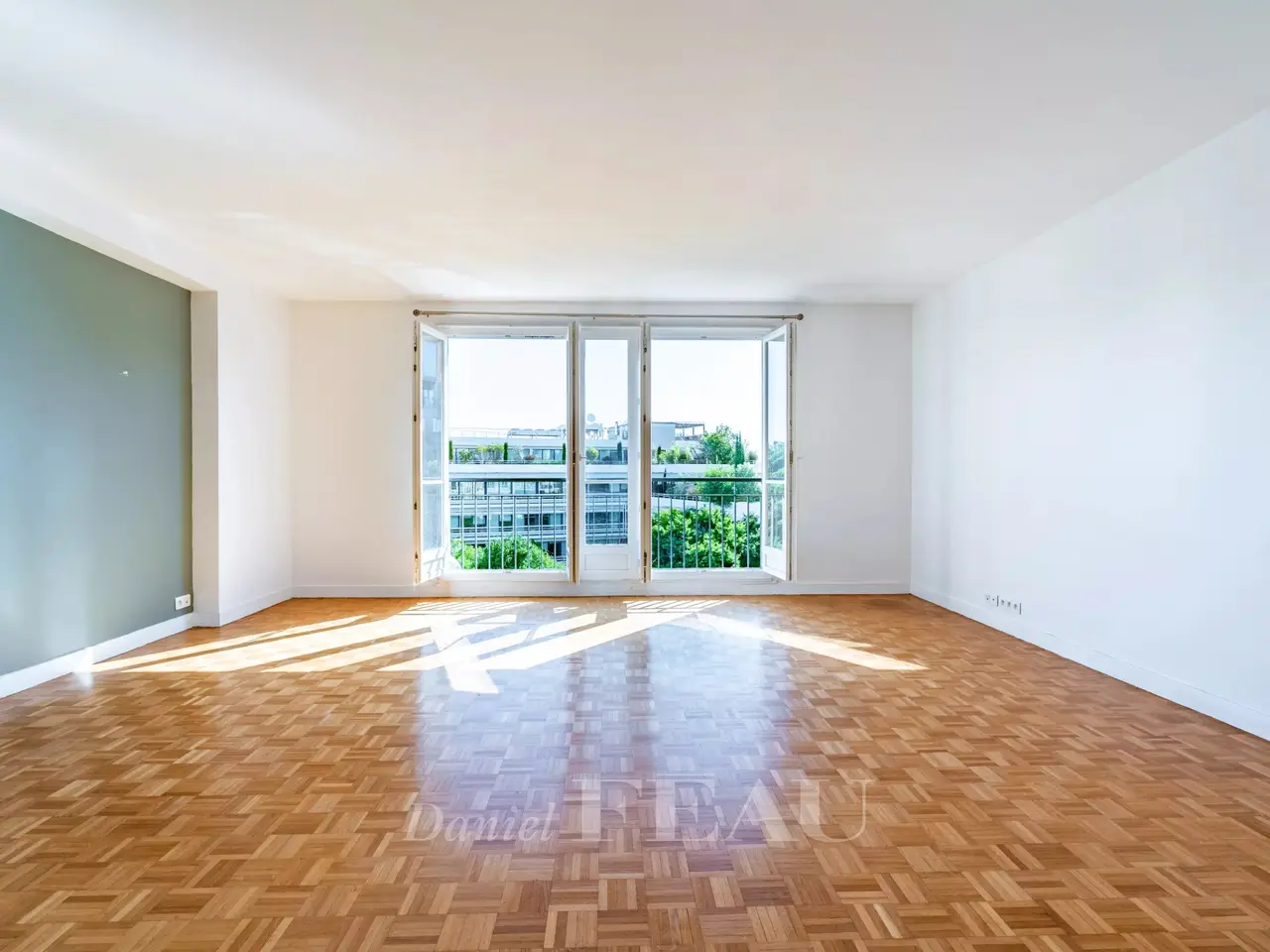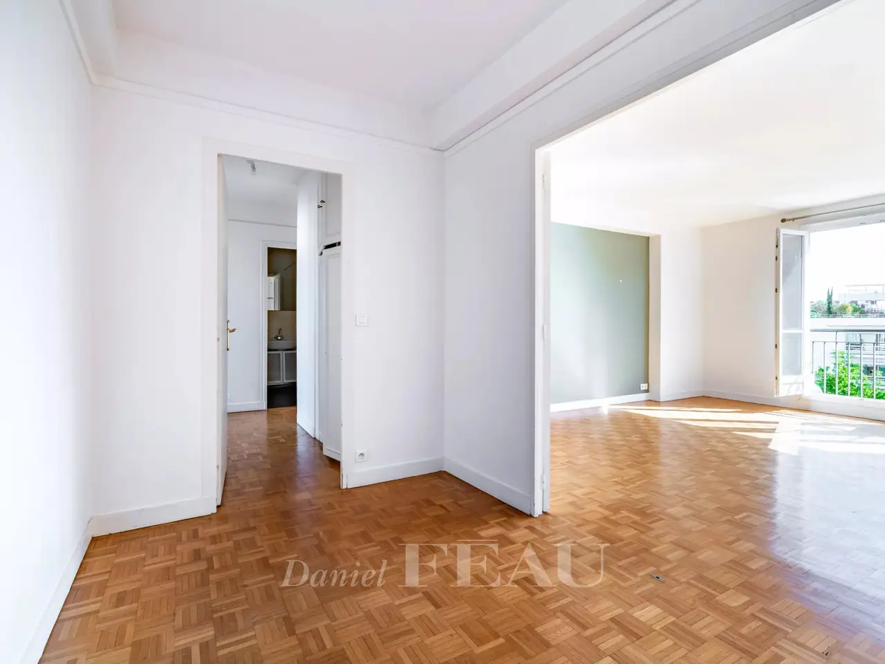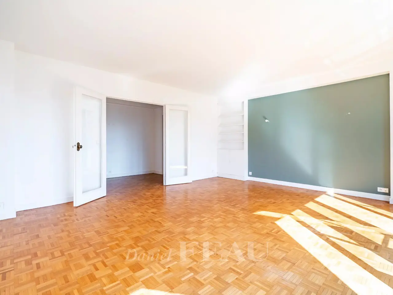 This dual-aspect apartment offering 97.80 sqm of living space as defined by the Carrez Law is on the 4th floor of a luxurious mid 20th century building located in a peaceful street near Porte de Saint Cloud. East and west facing, it includes a spacious living/reception room enjoying open views over leafy greenery, a kitchen, three bedrooms (two overlooking a garden), a bathroom and a separate wc. Fitted storage space. With a cellar. A courtyard lock-up garage may be acquired for a further 30000€.
