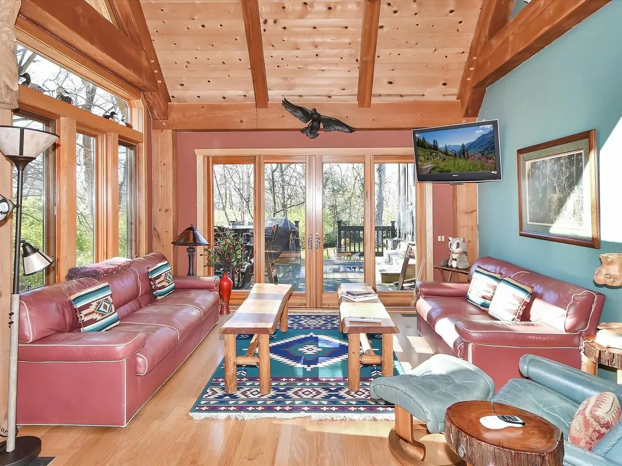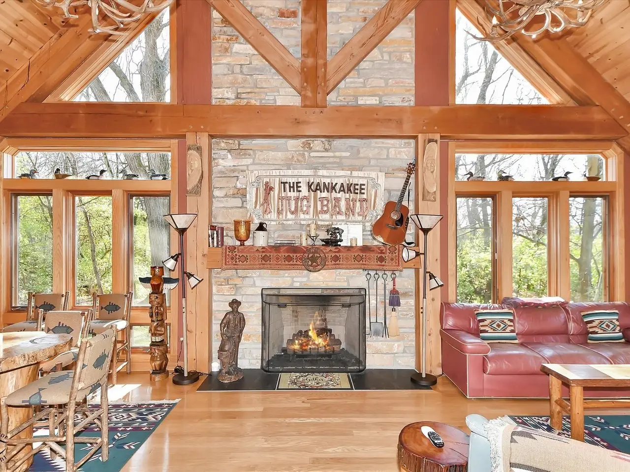Welcome to Twinbrook located in Bourbonnais! Twinbrook is a 8000 Sq Ft lodge-style home situated on eight acres and surrounded on three sides by the Kankakee River State Park. The home was built in 2000. There is an additional 1350 sq ft of decks and a screened in porch. Two creeks flow through the property, which is a mix of lawns, wooded gardens and untamed woodlands full with white oak, burr oak, and red oak amidst white pine, blaze, maple poplar redbud and many other types of species. The home follows the contour of the land and is both rustic and refined. Materials of construction are indigenous to the region. The house features Douglas fir posts and beam construction with walls of windows to bring in light and to blend the indoor and outdoor environments. The living room features a library, home theater, and limestone fireplace that soars 33 feet to the peaked ceiling. Just off the foyer, is a private office with its own deck overlooking the outdoors. The french doors in the living room open onto a 12x43 screened porch for lounge seating, porch swing and dining table. The back of the home consists of the guest wing offering four themed bedrooms, each with its own private bath en suite. The woods room lounge at the end of the guest wing is a cozy refuge for curling up by the fireplace with its own kitchen and access to a 12x14 deck overlooking the southern creek. The dining room has a 14' hand built mahogany dining table that sits 12 people. The kitchen has a 10' cherry wood island, seating for 10, professional cooktop, two ovens, pantry, double sink and laundry facilities. Upstairs you will find a 5th bedroom, office and the master suite. The master suite features a hand built tree bed, home theatre, private deck, two separate baths and dressing rooms and laundry facility. Additionally upstairs is the home gym and jacuzzi tub. Outdoors includes a firepit, hot tub and inground pool with slide. There is a 2 car attached garage, and a 3 car detached garage. This is a one of a kind private retreat looking for new owners. Call today for your private showing!