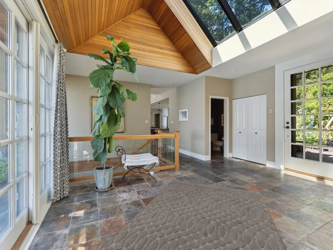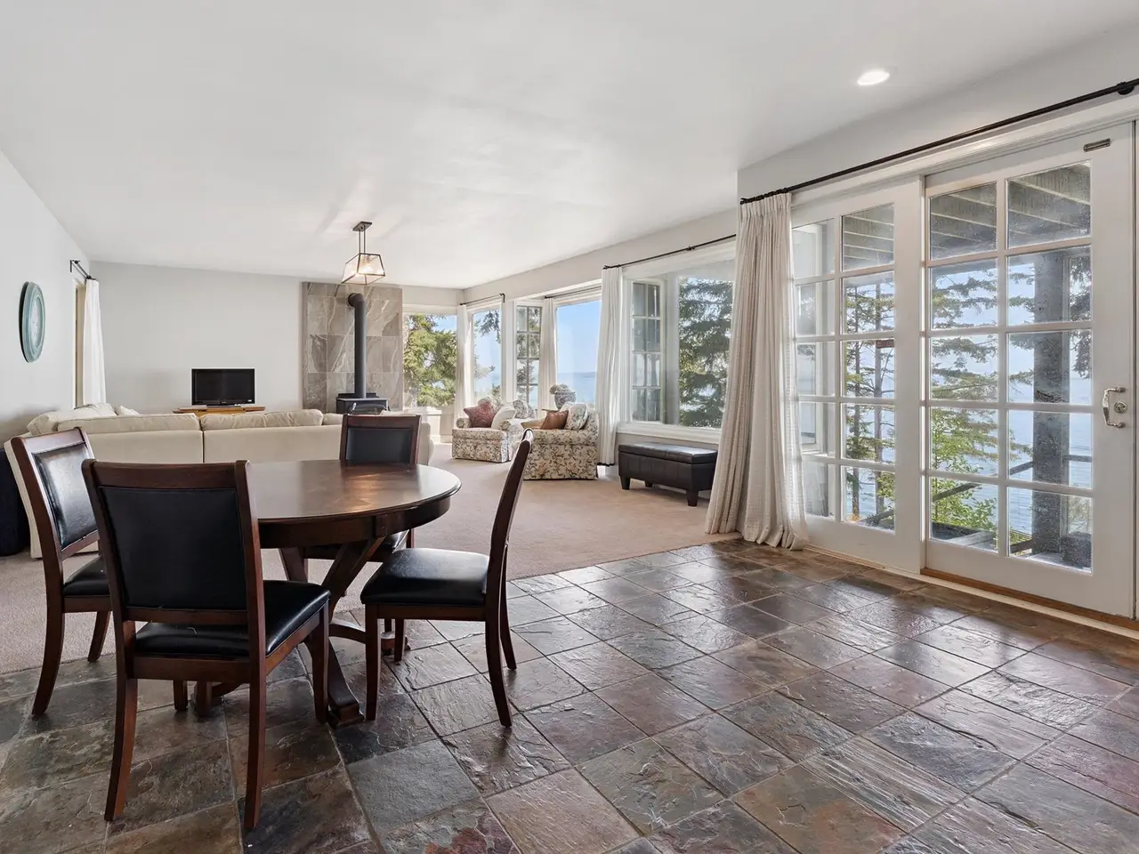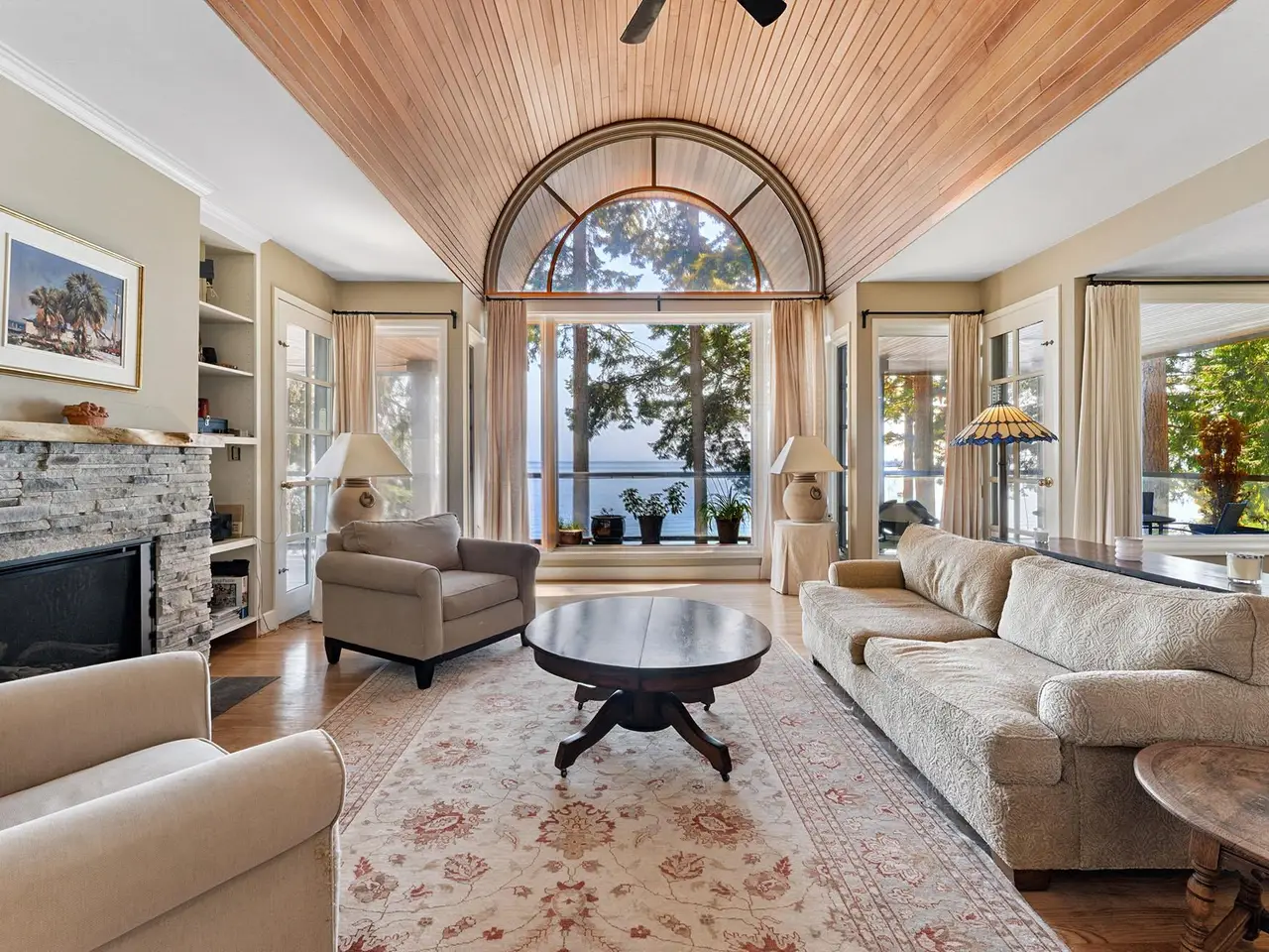 Fairweather Point – an enclave of architectural WATERFRONT homes sits on the South Shore of Bowen with views from Vancouver to the Gulf Islands. The coast here is alive with wildlife year round including seasonal visits from Humpbacks & Orcas. With a gently sloping backyard and a path of stone steps down to the water, you can go swimming any time. The spectacular views start at the front door and are showcased in almost every room. A dramatic 15’ barrel ceiling in the living room is the focal point of the open plan living/dining/kitchen. All rooms on the main floor have access to a 600+ sf south-facing deck, including the primary suite. Downstairs is a huge family room with French doors to the backyard, plus 3 more bedrooms. Excellent value for low bank WATERFRONT on Bowen Island.